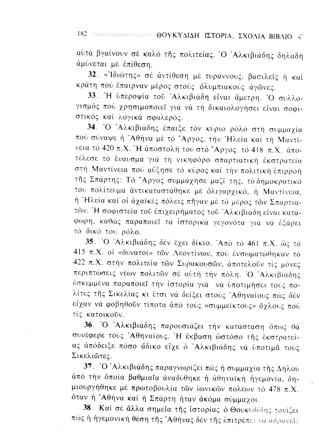 Σχολικό εγχειρίδιο Αρχαίων Ελληνικών Β΄ και Γ΄ Γυμνασίου που περιέχει αποσπάσματα από το έργο του Θουκυδίδη Ιστορία, και με ερμηνευτικές και πραγματολογικές παρατηρήσεις.