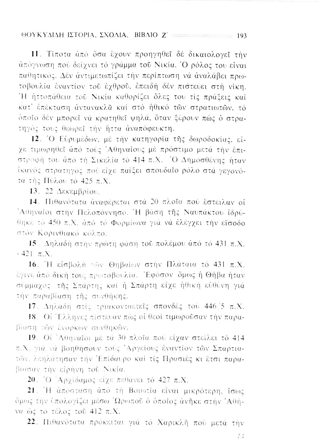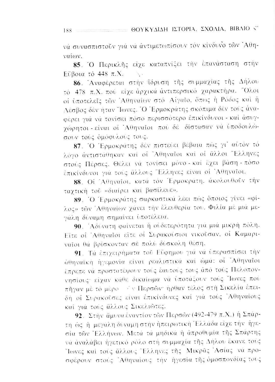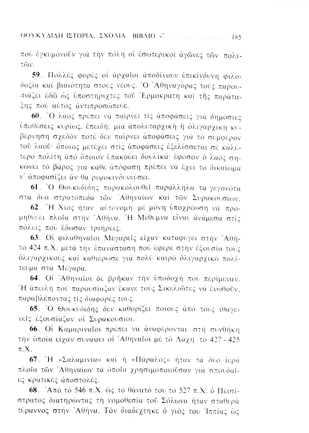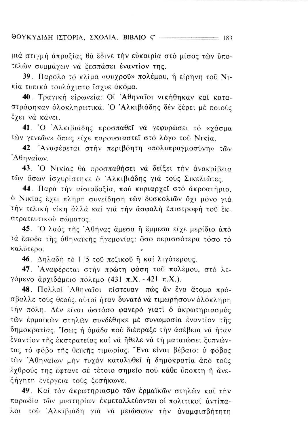 Σχολικό εγχειρίδιο Αρχαίων Ελληνικών Β΄ Γυμνασίου που περιλαμβάνει την μετάφραση των βιβλίων ΣΤ΄ και Ζ΄ της Ιστορίας του Θουκυδίδη, εισαγωγή στη ζωή και το έργο του, και ερμηνευτικά και πραγματολογικά σχόλια.