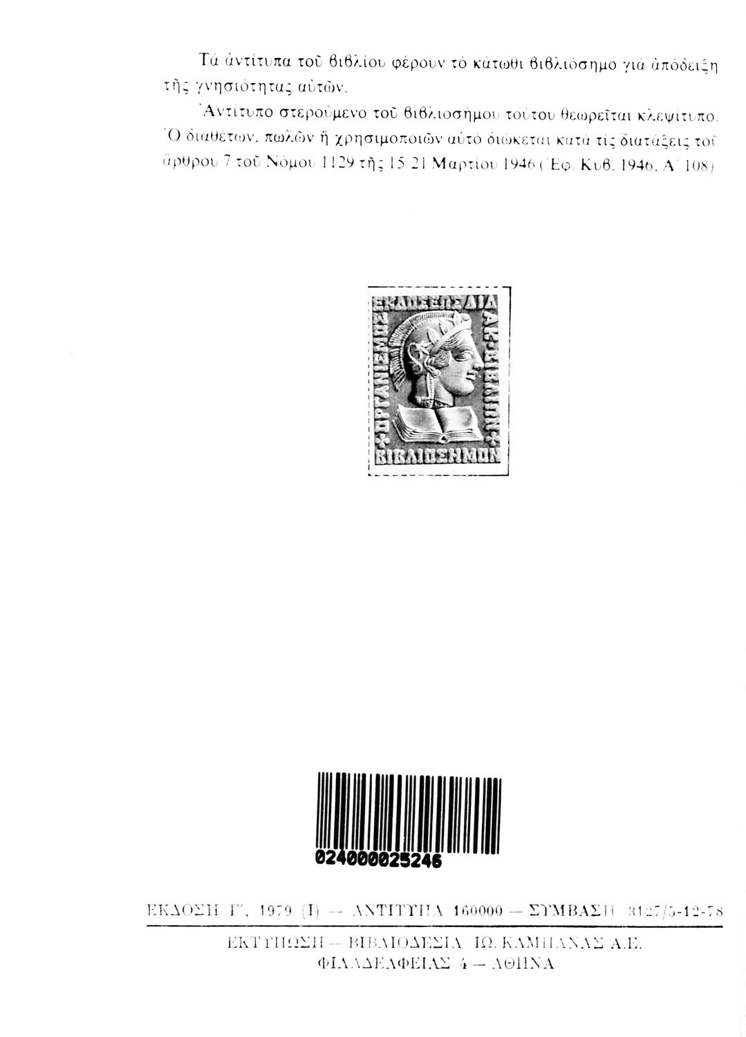 Εκδότης: Οργανισμός Εκδόσεως Διδακτικών Βιβλίων Έτος έκδοσης: 1979 Τόπος έκδοσης: Αθήνα Έκδοση: 3η Υπουργική απόφαση / Σύμβαση: 3127/5-12-78 Έτος έγκρισης: 1979 |