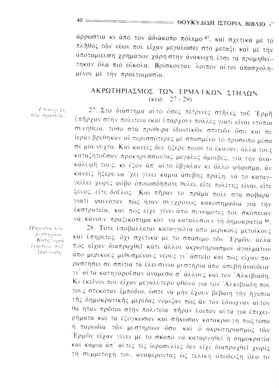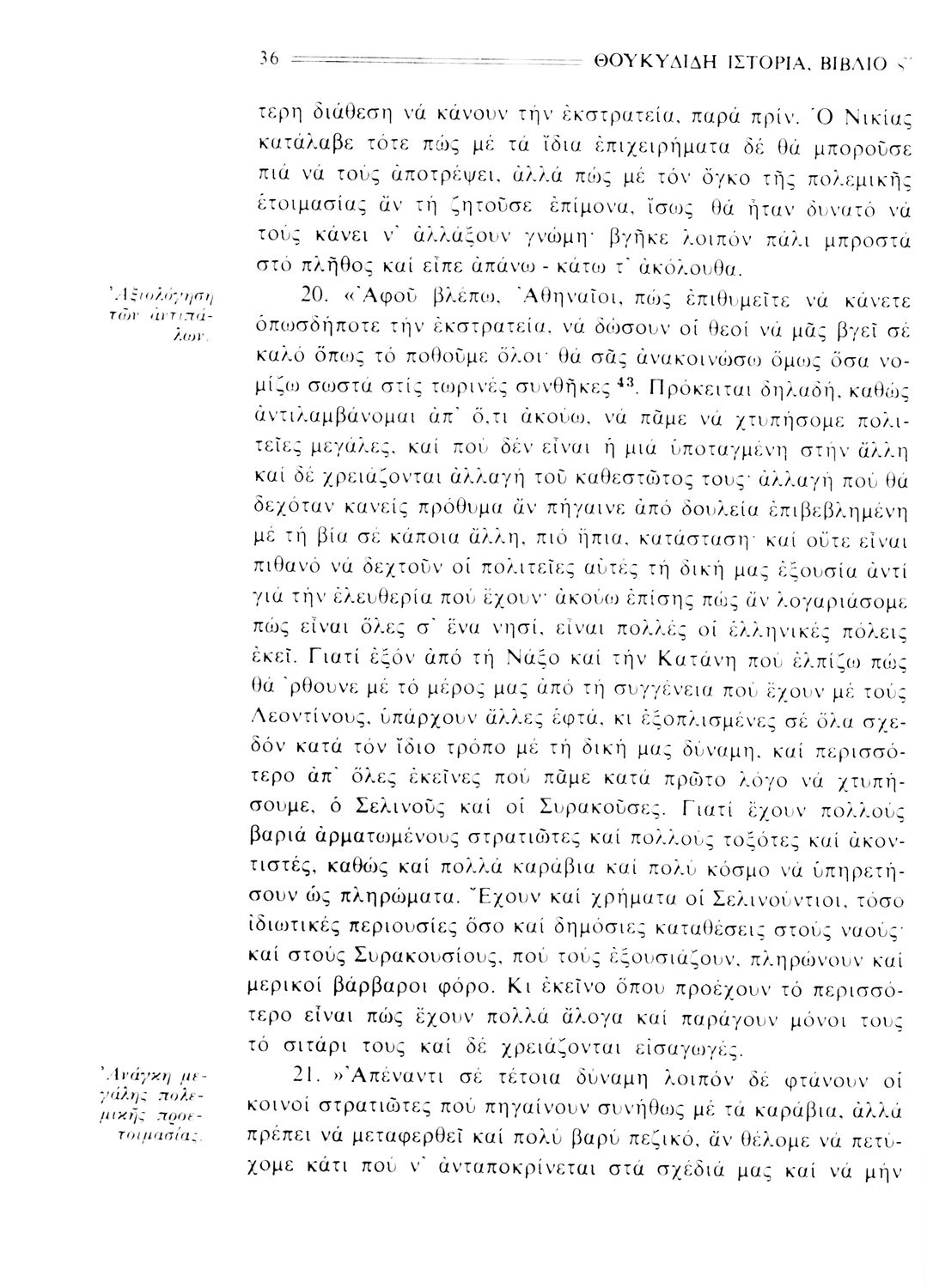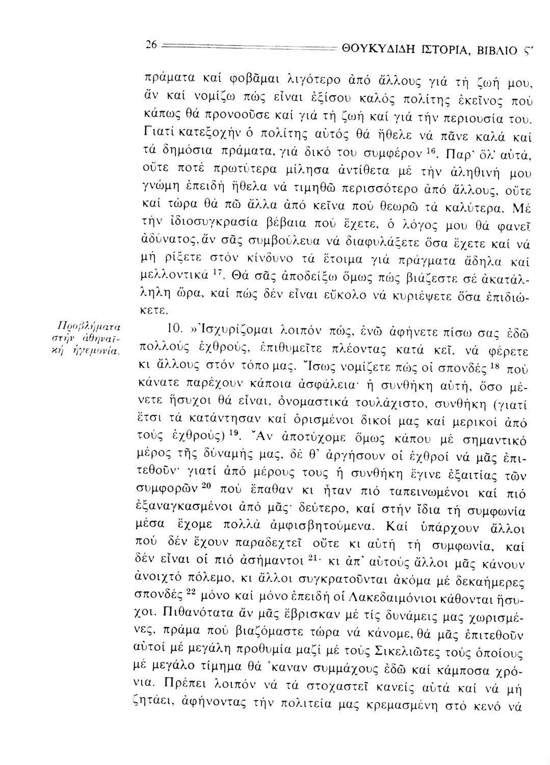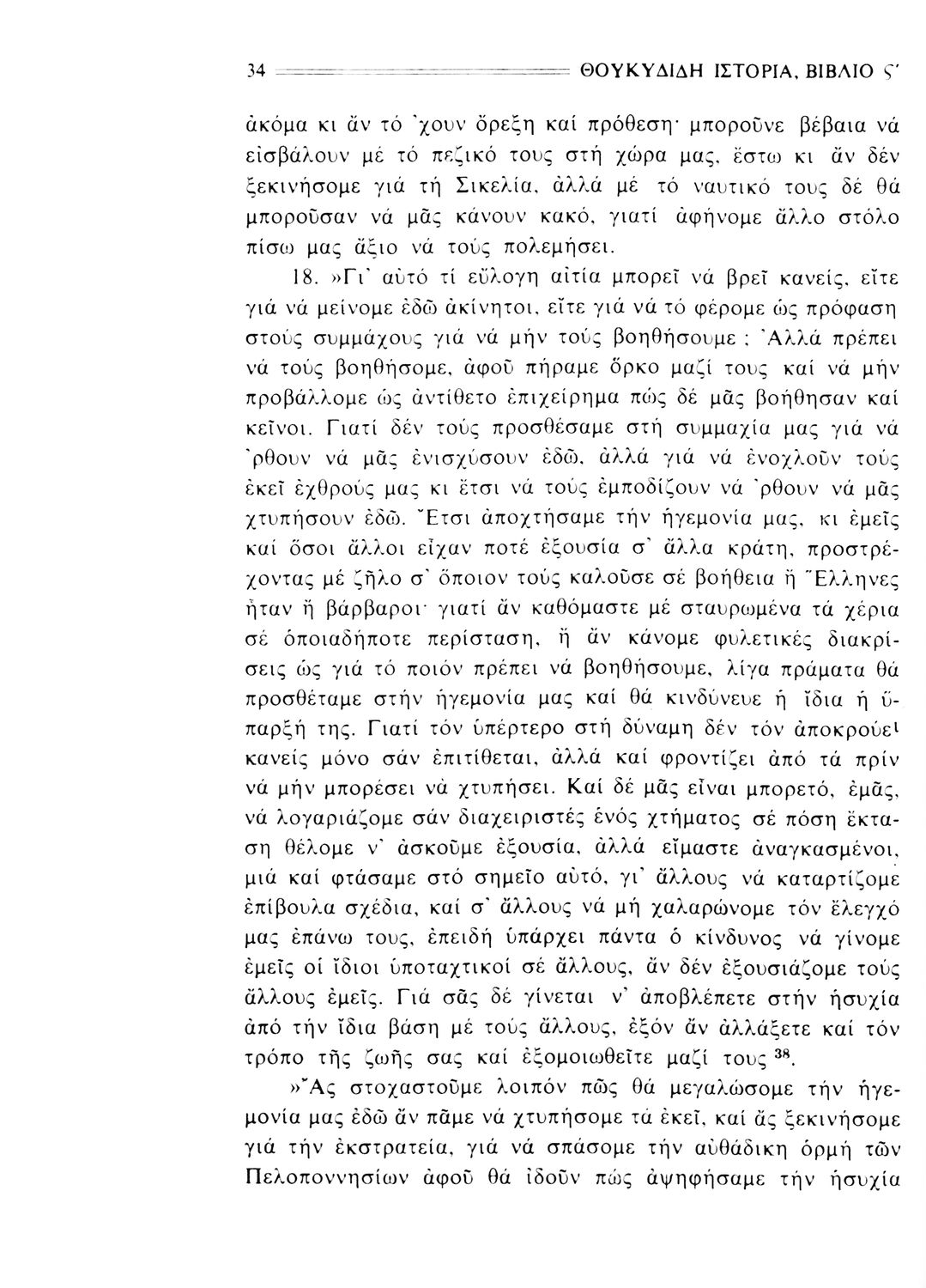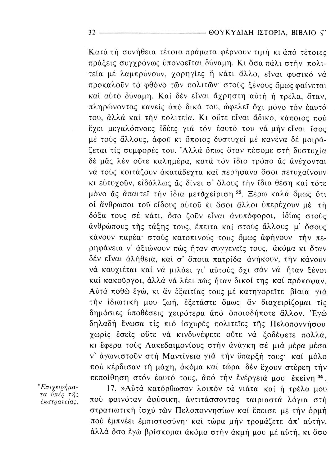 Σχολικό εγχειρίδιο Αρχαίων Ελληνικών Β΄ Γυμνασίου που περιλαμβάνει την μετάφραση των βιβλίων ΣΤ΄ και Ζ΄ της Ιστορίας του Θουκυδίδη, εισαγωγή στη ζωή και το έργο του, και ερμηνευτικά και πραγματολογικά σχόλια.