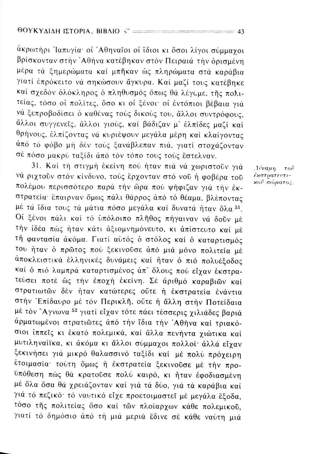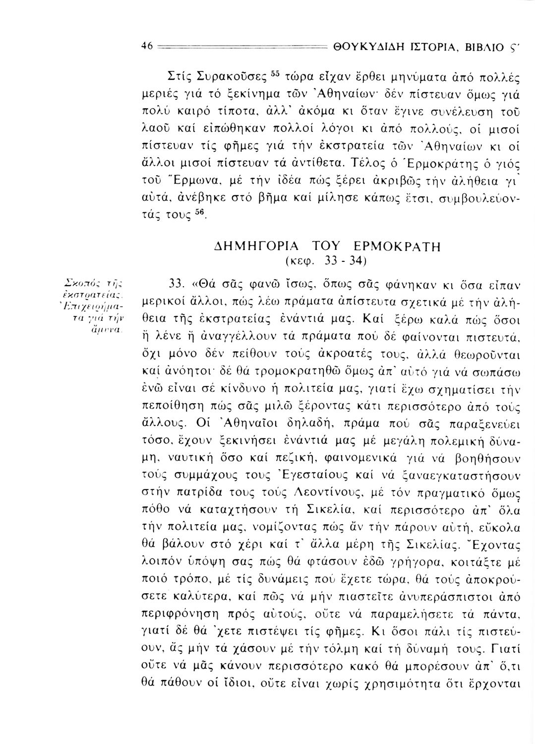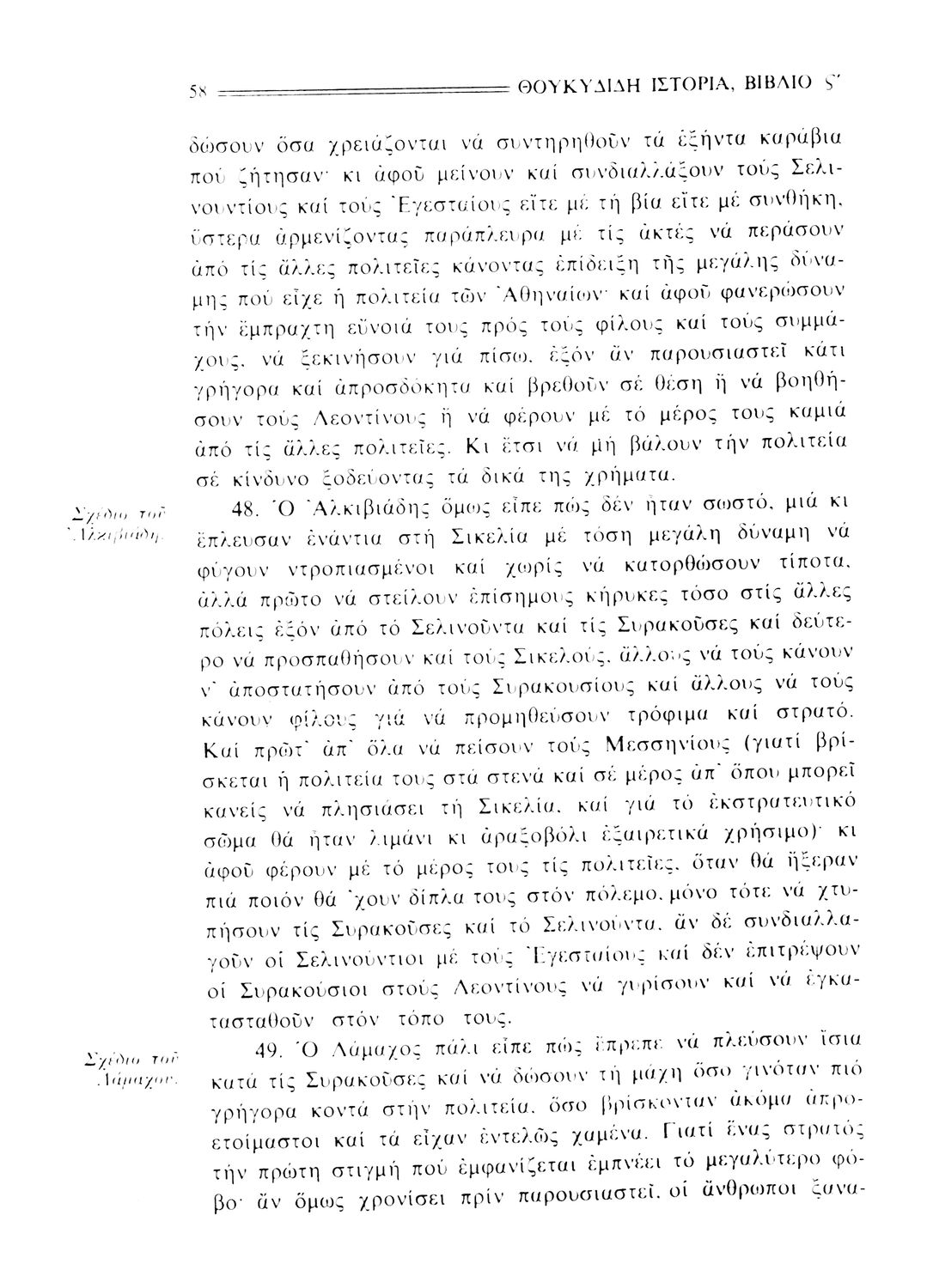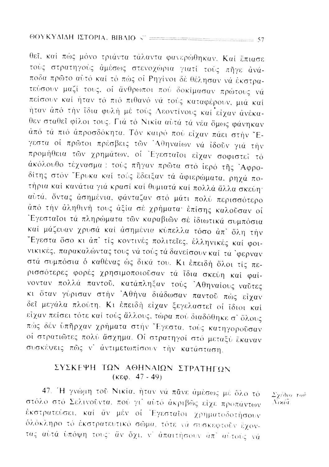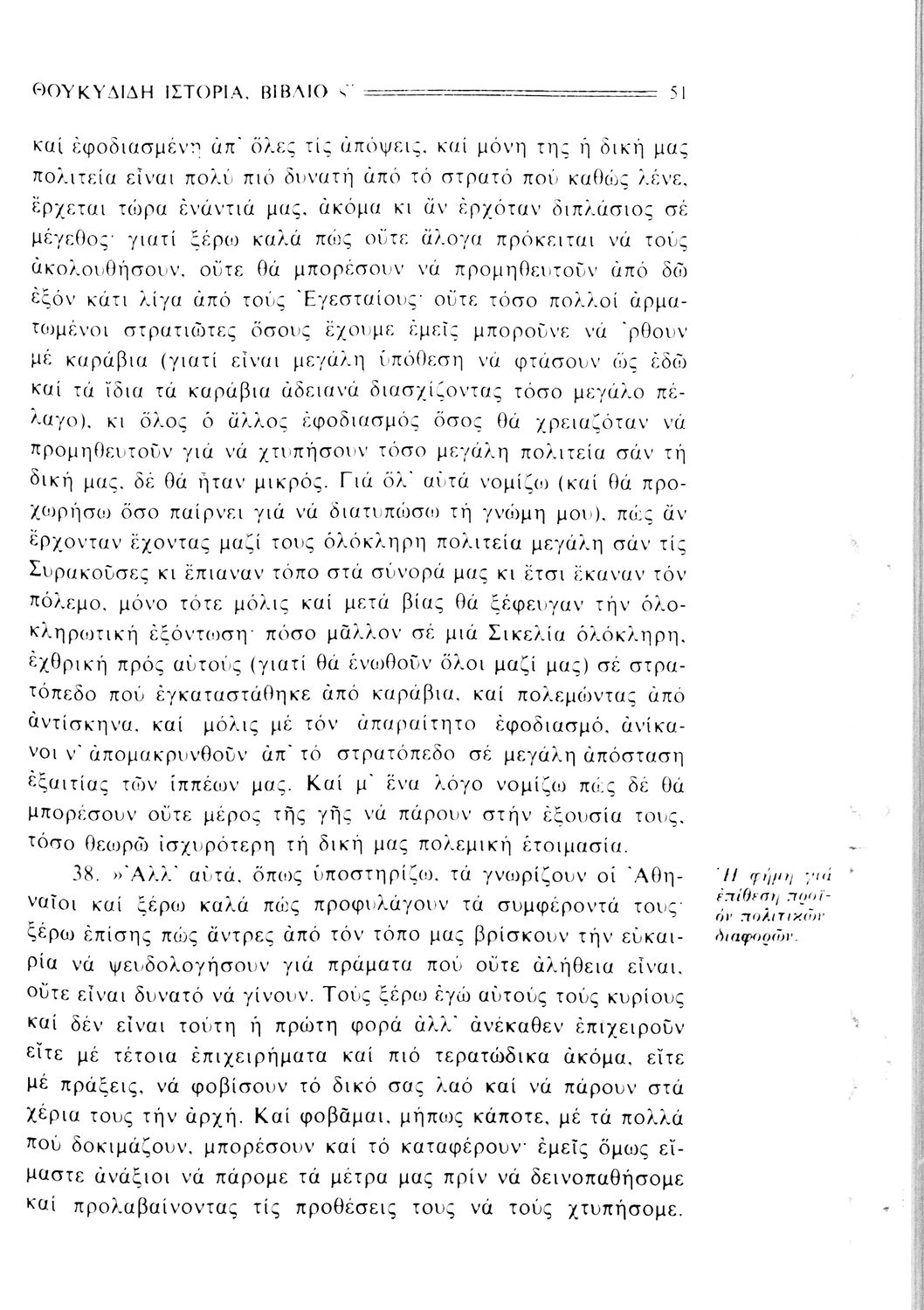 Σχολικό εγχειρίδιο Αρχαίων Ελληνικών Β΄ Γυμνασίου που περιλαμβάνει την μετάφραση των βιβλίων ΣΤ΄ και Ζ΄ της Ιστορίας του Θουκυδίδη, εισαγωγή στη ζωή και το έργο του, και ερμηνευτικά και πραγματολογικά σχόλια.