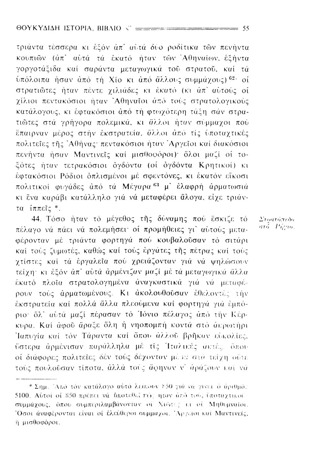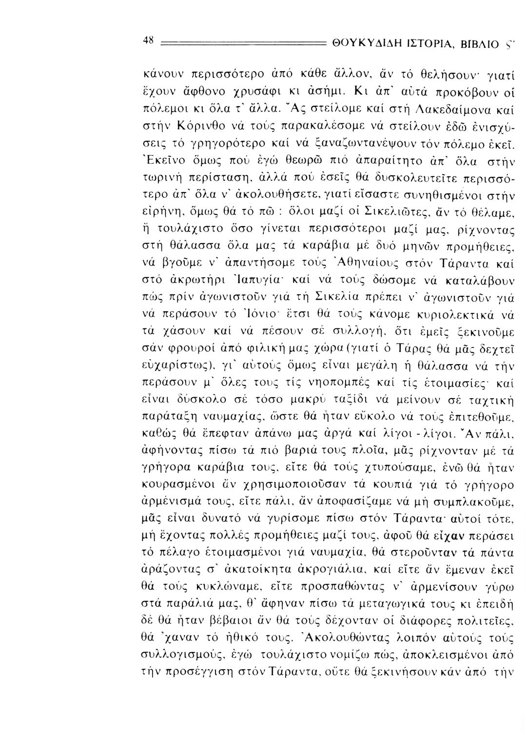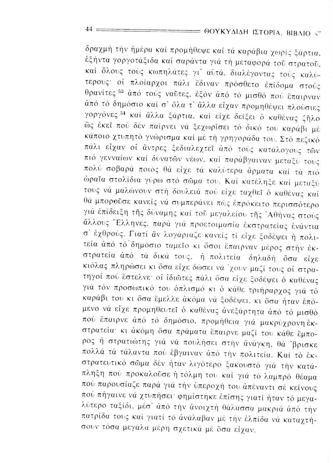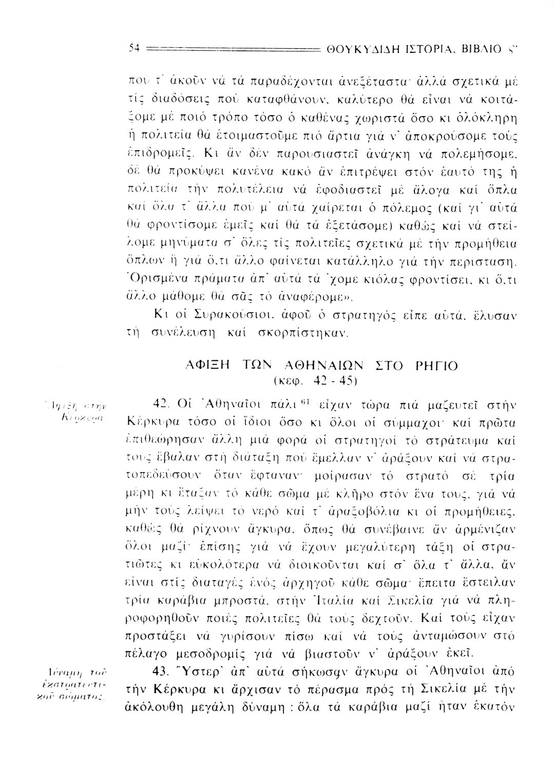 Σχολικό εγχειρίδιο Αρχαίων Ελληνικών Β΄ Γυμνασίου που περιλαμβάνει την μετάφραση των βιβλίων ΣΤ΄ και Ζ΄ της Ιστορίας του Θουκυδίδη, εισαγωγή στη ζωή και το έργο του, και ερμηνευτικά και πραγματολογικά σχόλια.
