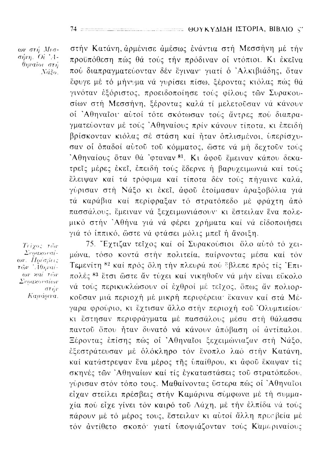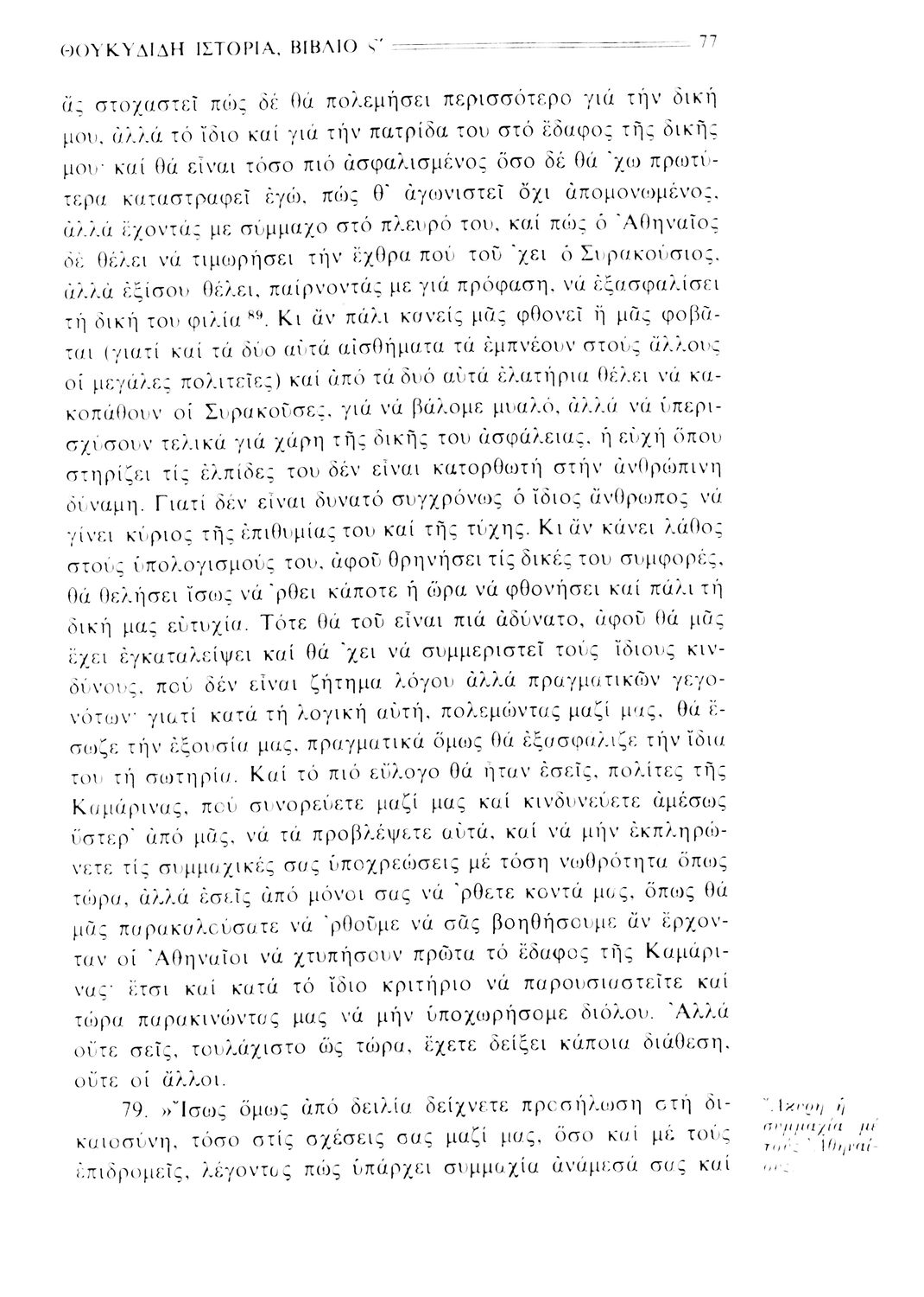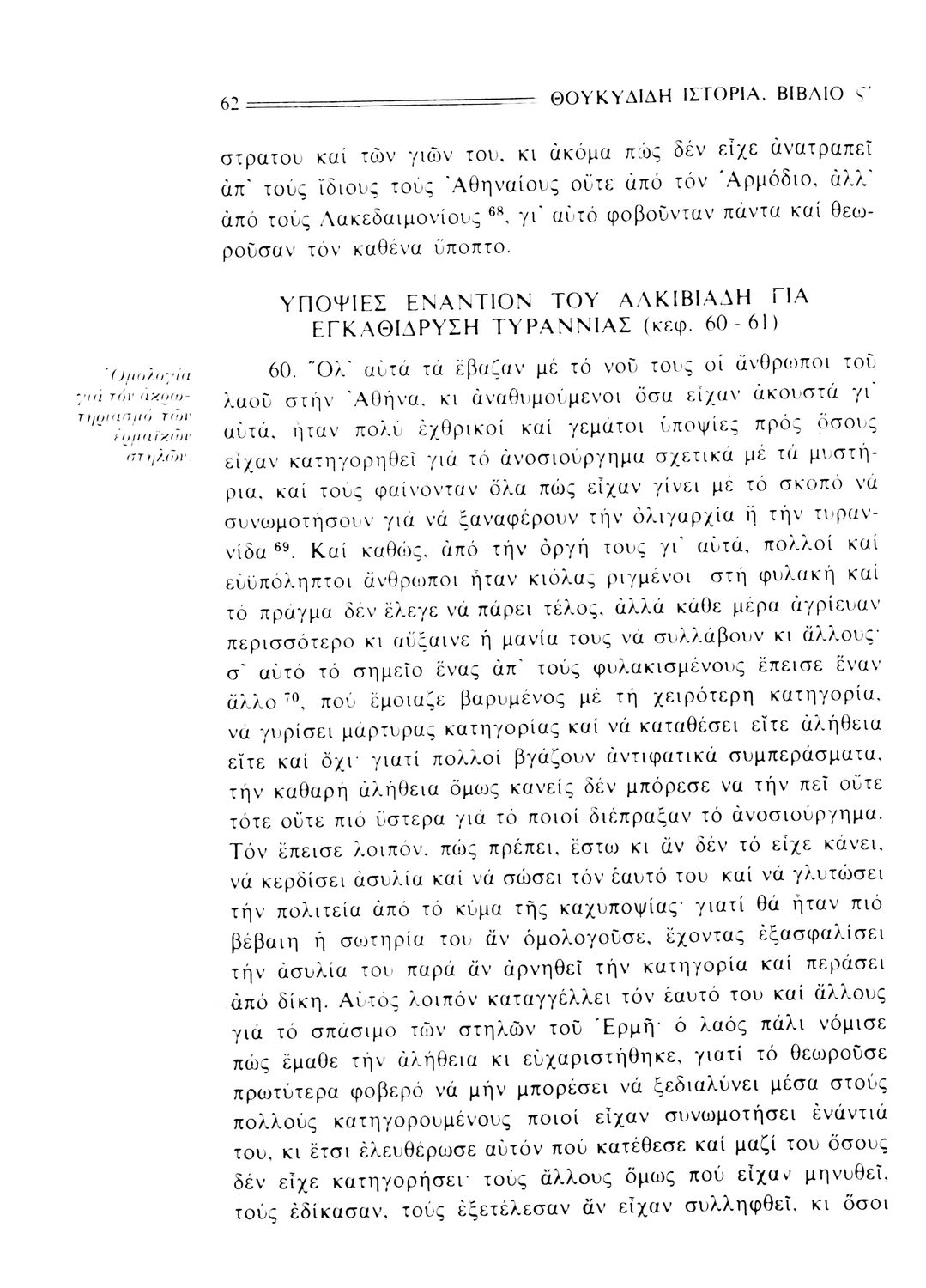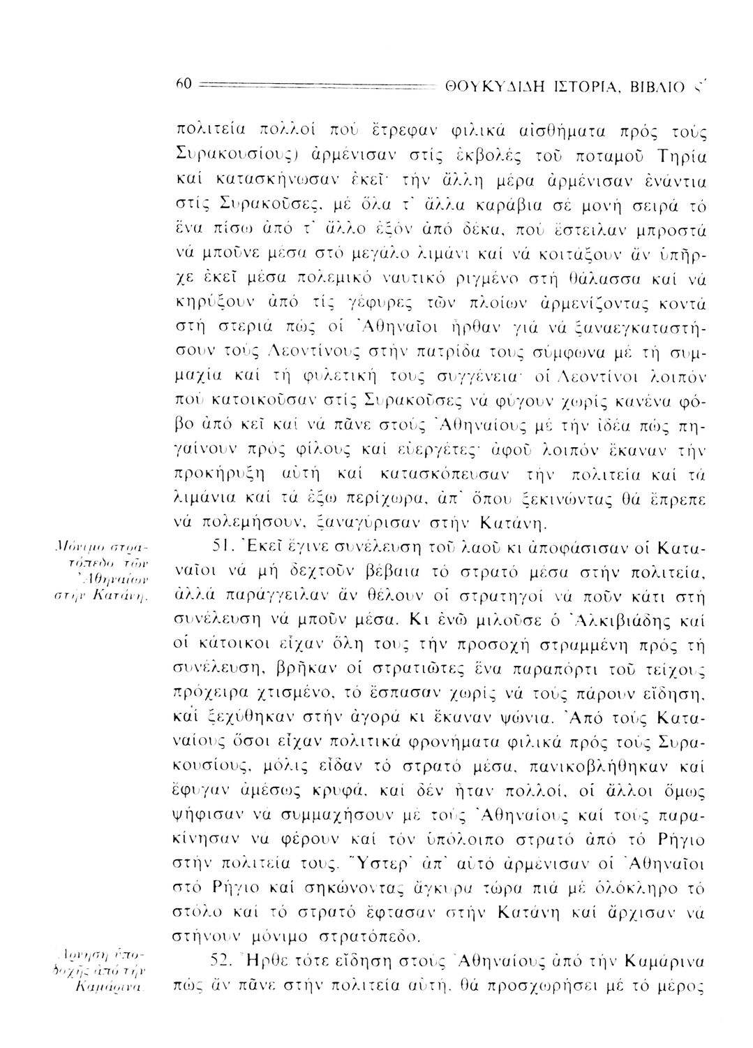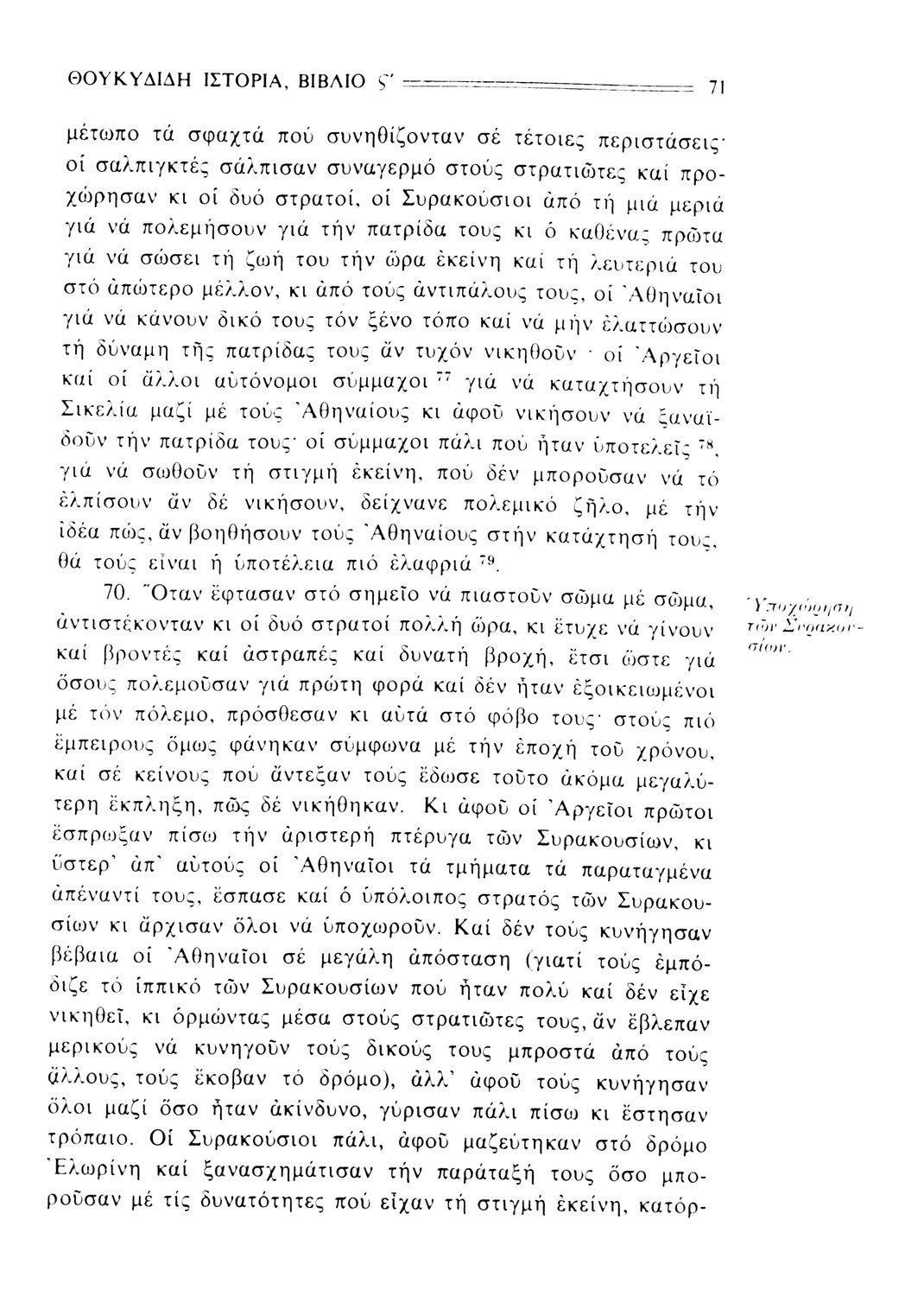Σχολικό εγχειρίδιο Αρχαίων Ελληνικών Β΄ Γυμνασίου που περιλαμβάνει την μετάφραση των βιβλίων ΣΤ΄ και Ζ΄ της Ιστορίας του Θουκυδίδη, εισαγωγή στη ζωή και το έργο του, και ερμηνευτικά και πραγματολογικά σχόλια.