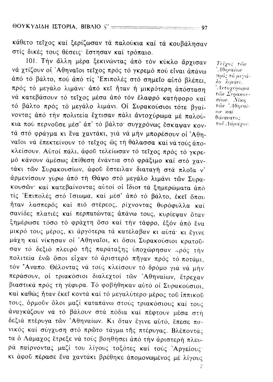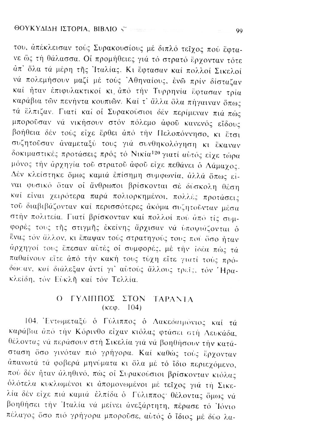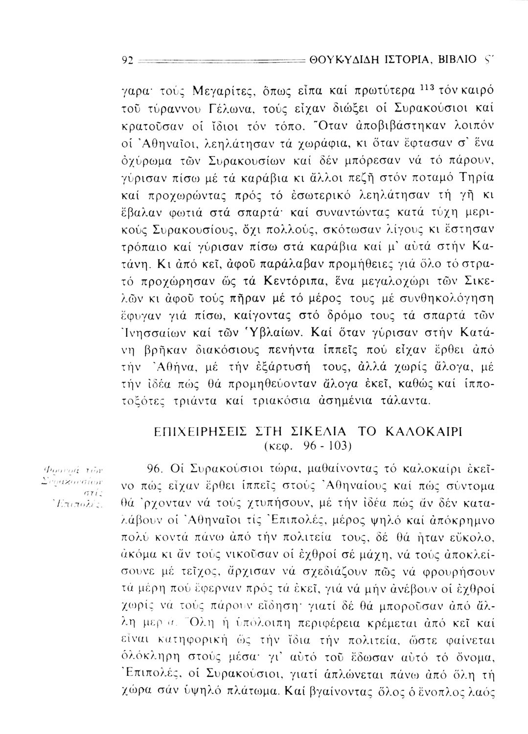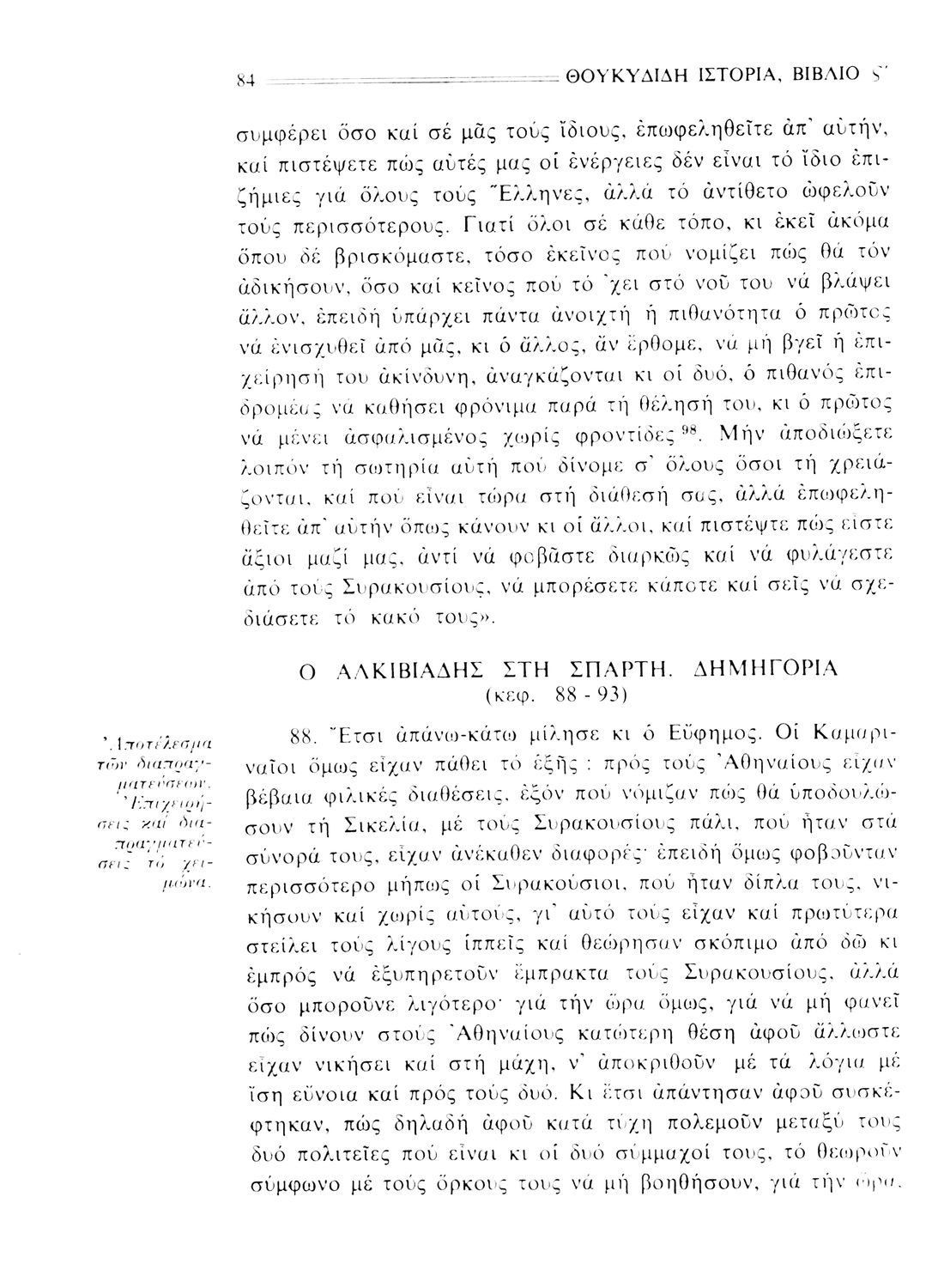 Σχολικό εγχειρίδιο Αρχαίων Ελληνικών Β΄ Γυμνασίου που περιλαμβάνει την μετάφραση των βιβλίων ΣΤ΄ και Ζ΄ της Ιστορίας του Θουκυδίδη, εισαγωγή στη ζωή και το έργο του, και ερμηνευτικά και πραγματολογικά σχόλια.