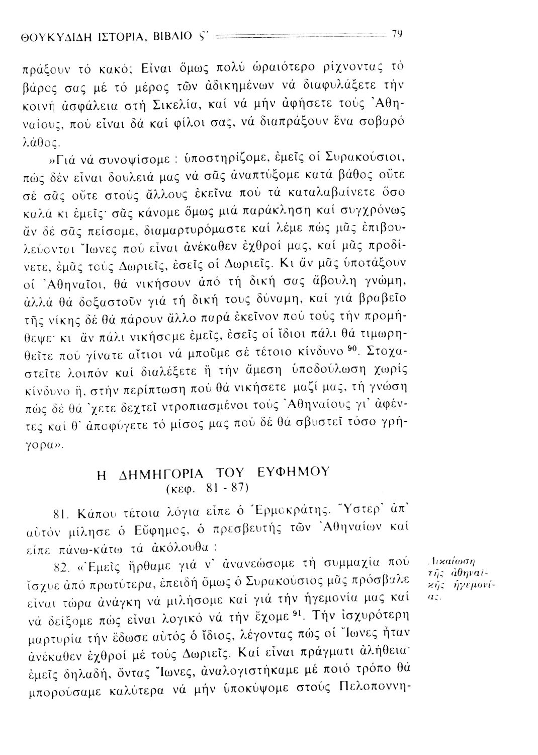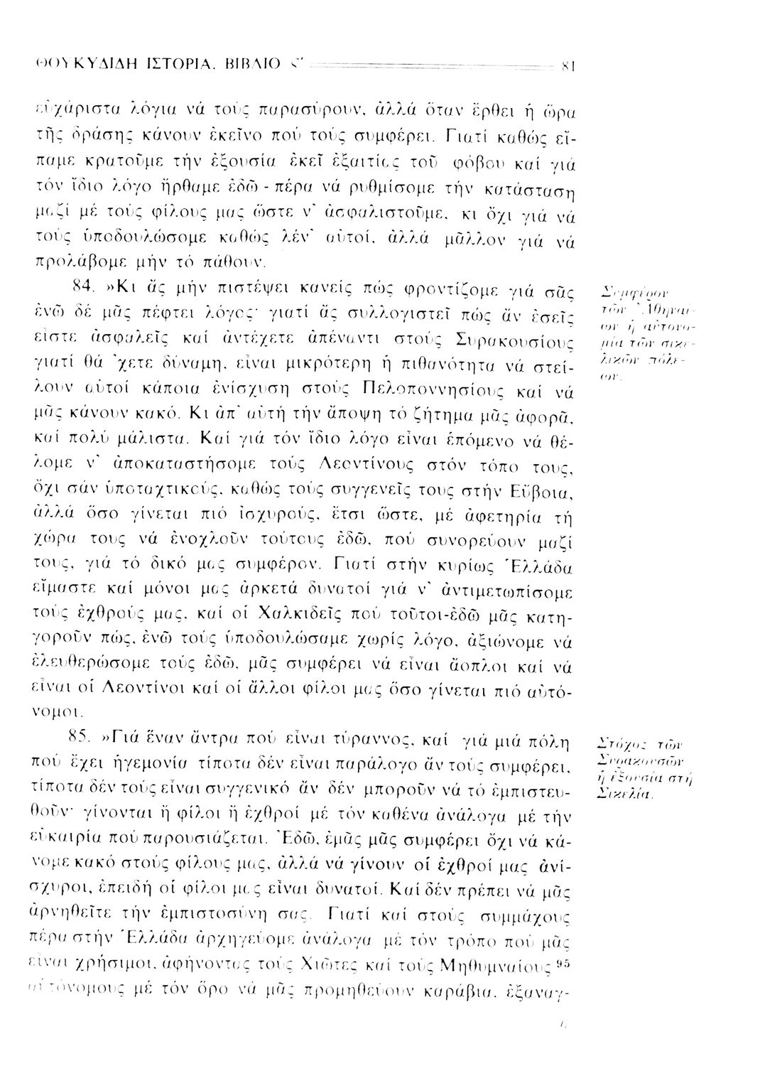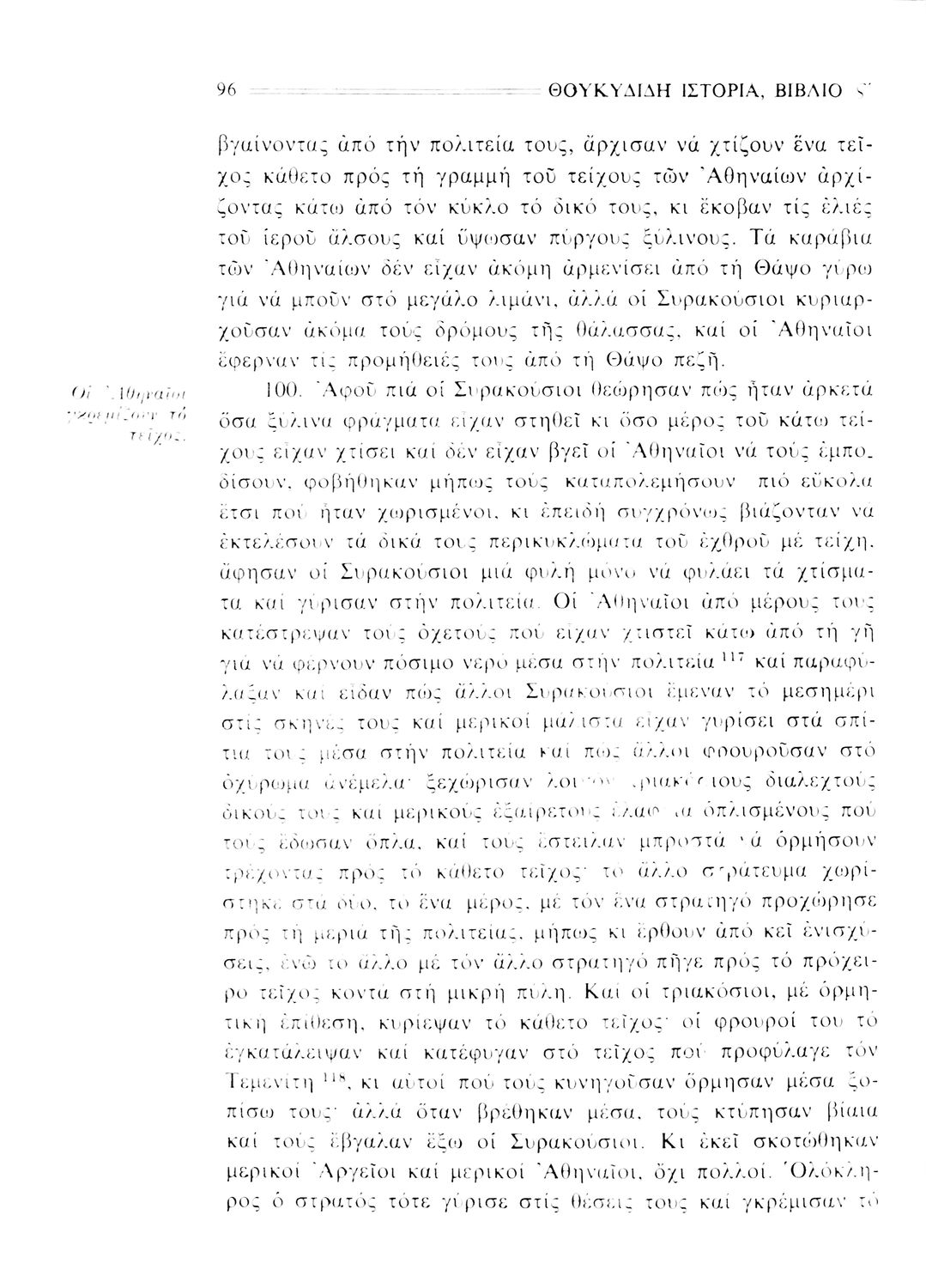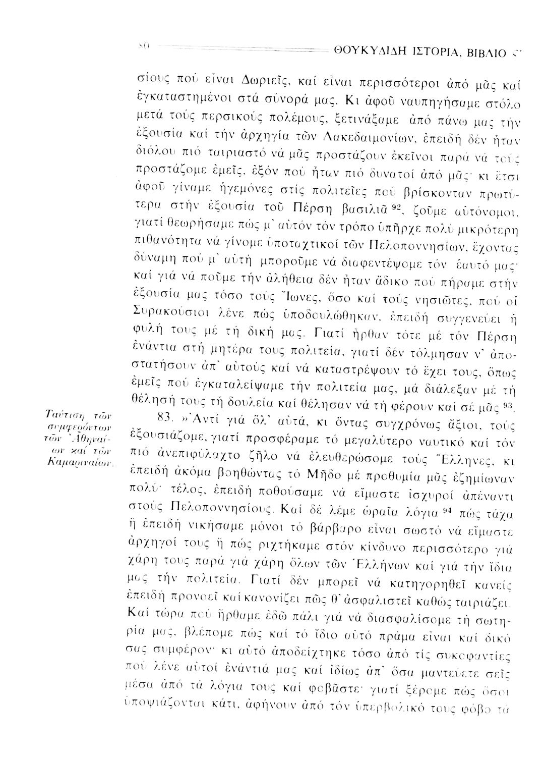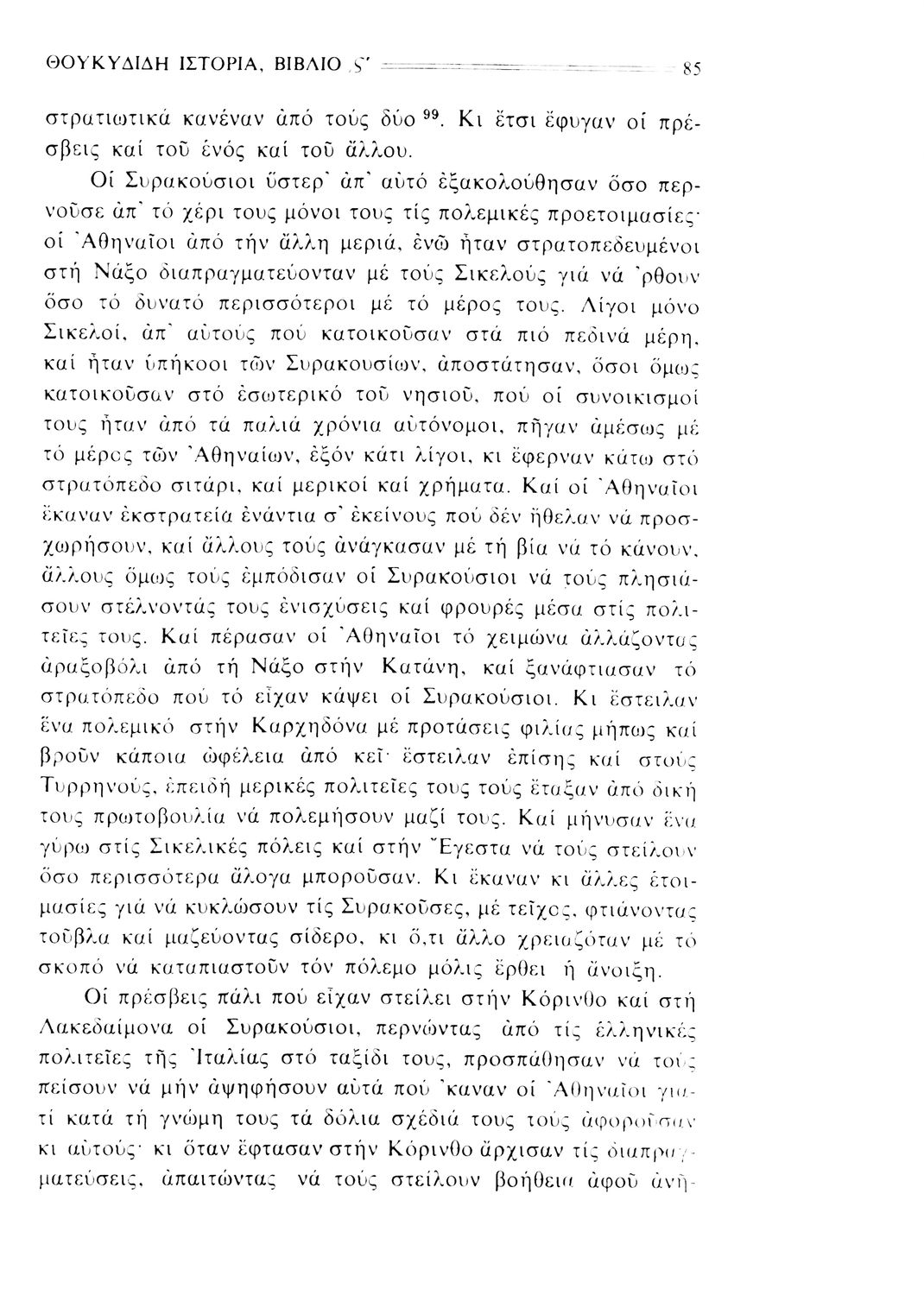 Σχολικό εγχειρίδιο Αρχαίων Ελληνικών Β΄ Γυμνασίου που περιλαμβάνει την μετάφραση των βιβλίων ΣΤ΄ και Ζ΄ της Ιστορίας του Θουκυδίδη, εισαγωγή στη ζωή και το έργο του, και ερμηνευτικά και πραγματολογικά σχόλια.