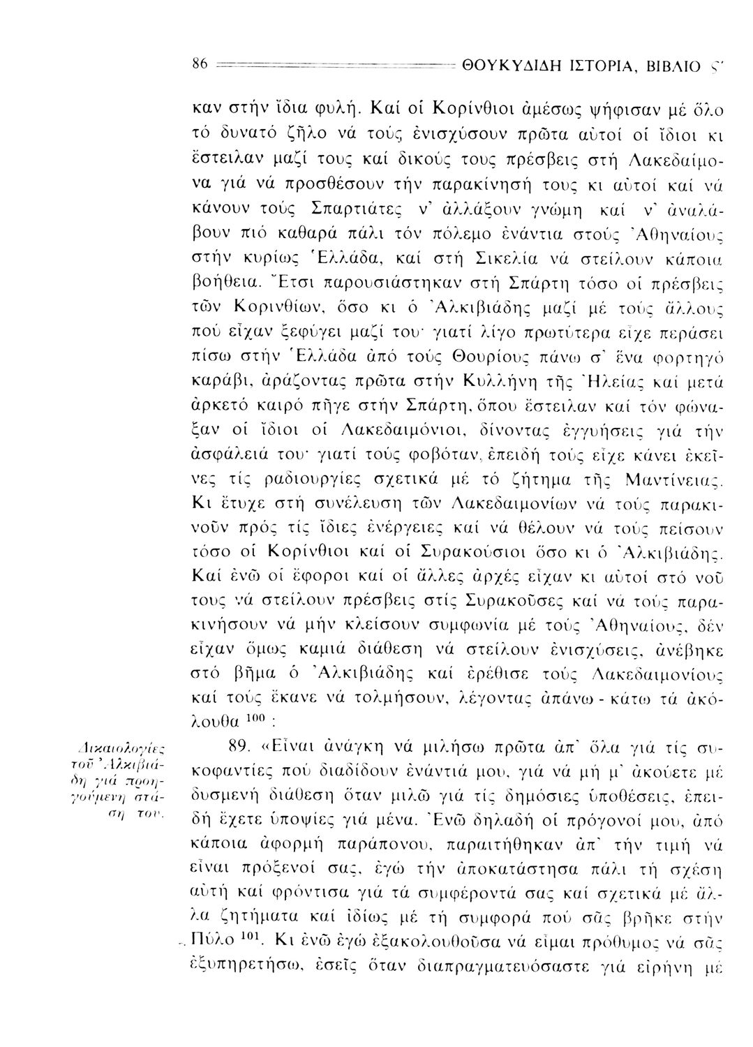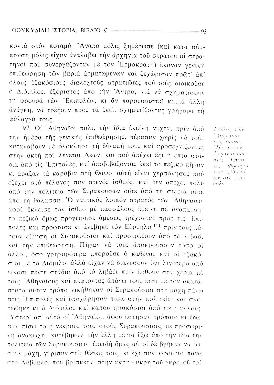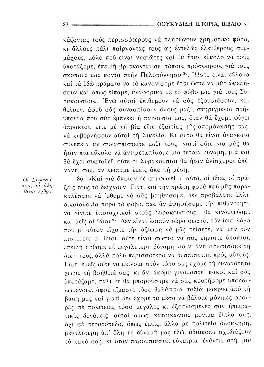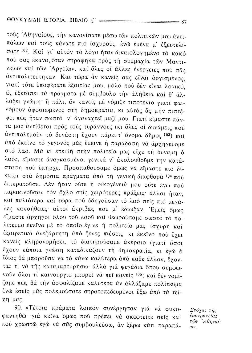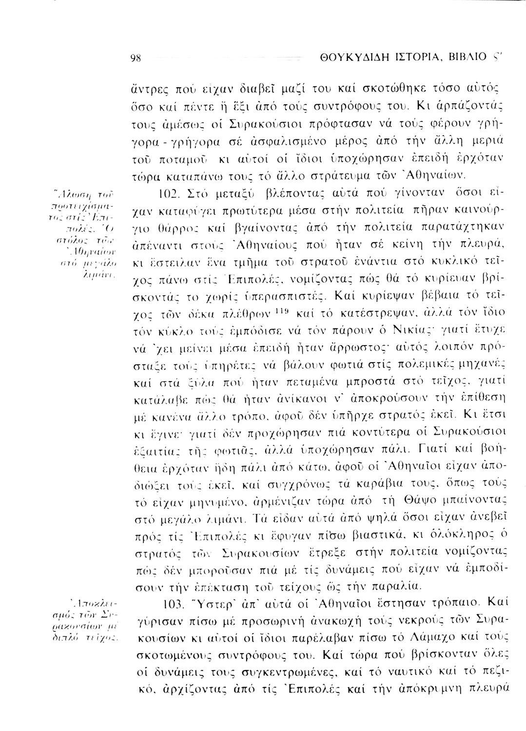 Σχολικό εγχειρίδιο Αρχαίων Ελληνικών Β΄ Γυμνασίου που περιλαμβάνει την μετάφραση των βιβλίων ΣΤ΄ και Ζ΄ της Ιστορίας του Θουκυδίδη, εισαγωγή στη ζωή και το έργο του, και ερμηνευτικά και πραγματολογικά σχόλια.