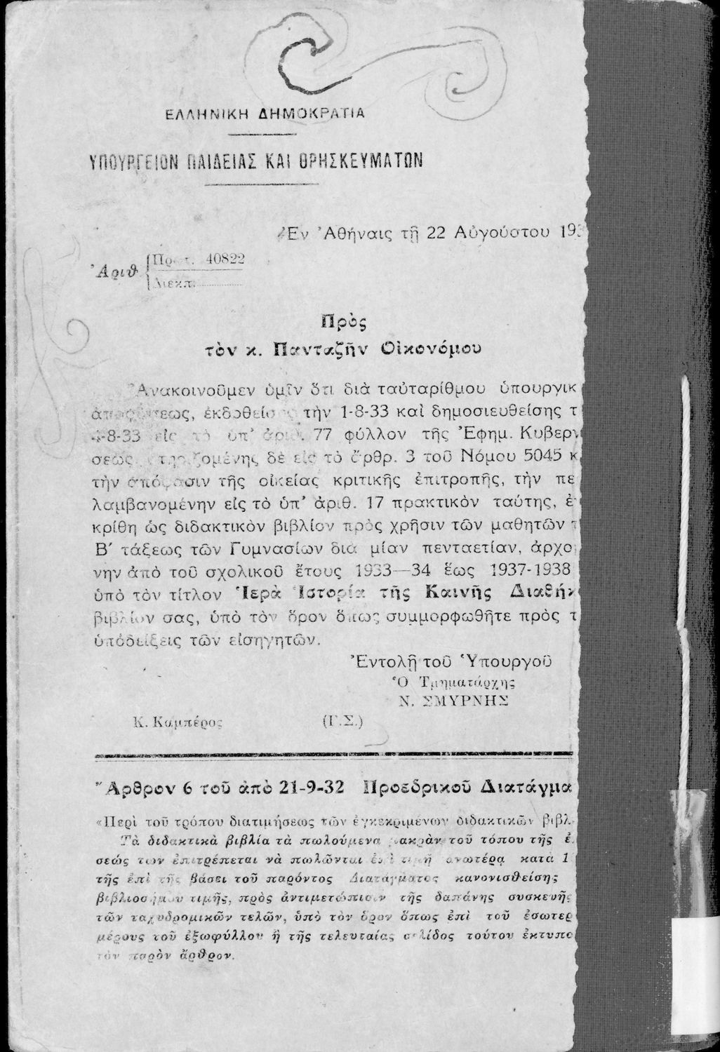 Εκδότης: Χρήστος Ι. Σαλίβερος Έτος έκδοσης: 1935 Τόπος έκδοσης: Αθήνα Έκδοση: 3η Υπουργική απόφαση / Σύμβαση: 40822/1-8-1933 Έτος έγκρισης: 1933 |