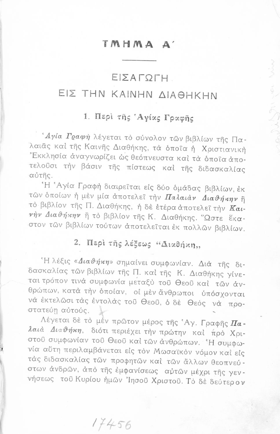 Κωδικός αναγνώρισης: 01-17456 Τίτλος: Ιερά Ιστορία της Καινής Διαθήκης προς χρήσιν των μαθητών της Β΄ τάξεως των Εξαταξίων Γυμνασίων, Ημιγυμνασίων, Πρακτικών Λυκείων, Ανωτέρων Παρθεναγωγείων και του αντιστοίχου άλλων σχολείων Μέσης Εκπαιδεύσεως Συγγραφέας: Πανταζής Κων. Οικονόμου Μέγεθος και υπόστρωμα: Σχολικό εγχειρίδιο, 20εκ., σκληρό εξώφυλλο, 152 σελίδες. Εικόνες (ασπρόμαυρες). |