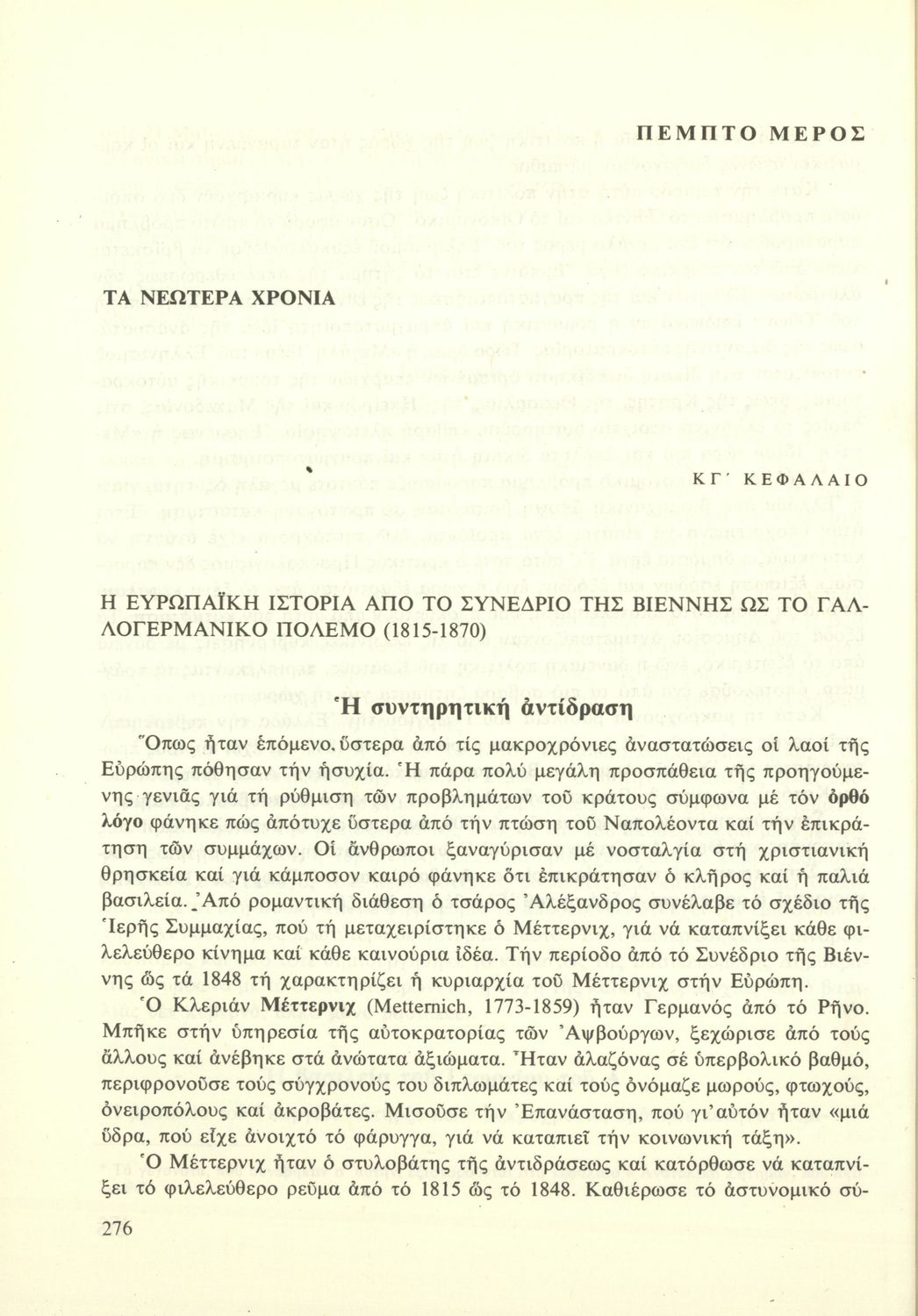Σχολικό εγχειρίδιο Ιστορίας Γ΄ Λυκείου που αποτελεί μια συνοπτική επισκόπηση της ιστορία της Ευρώπης και καλύπτει το διάστημα από την Συνθήκη της Βεστφαλίας ως τον Α΄ Παγκόσμιο Πόλεμο.