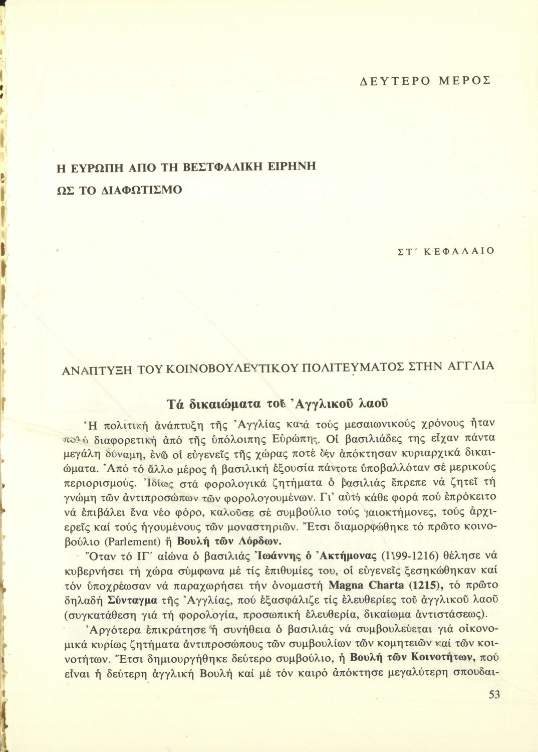 Σχολικό εγχειρίδιο Ιστορίας Γ΄ Λυκείου που αποτελεί μια συνοπτική επισκόπηση της ιστορία της Ευρώπης και καλύπτει το διάστημα από την Συνθήκη της Βεστφαλίας ως τον Α΄ Παγκόσμιο Πόλεμο.
