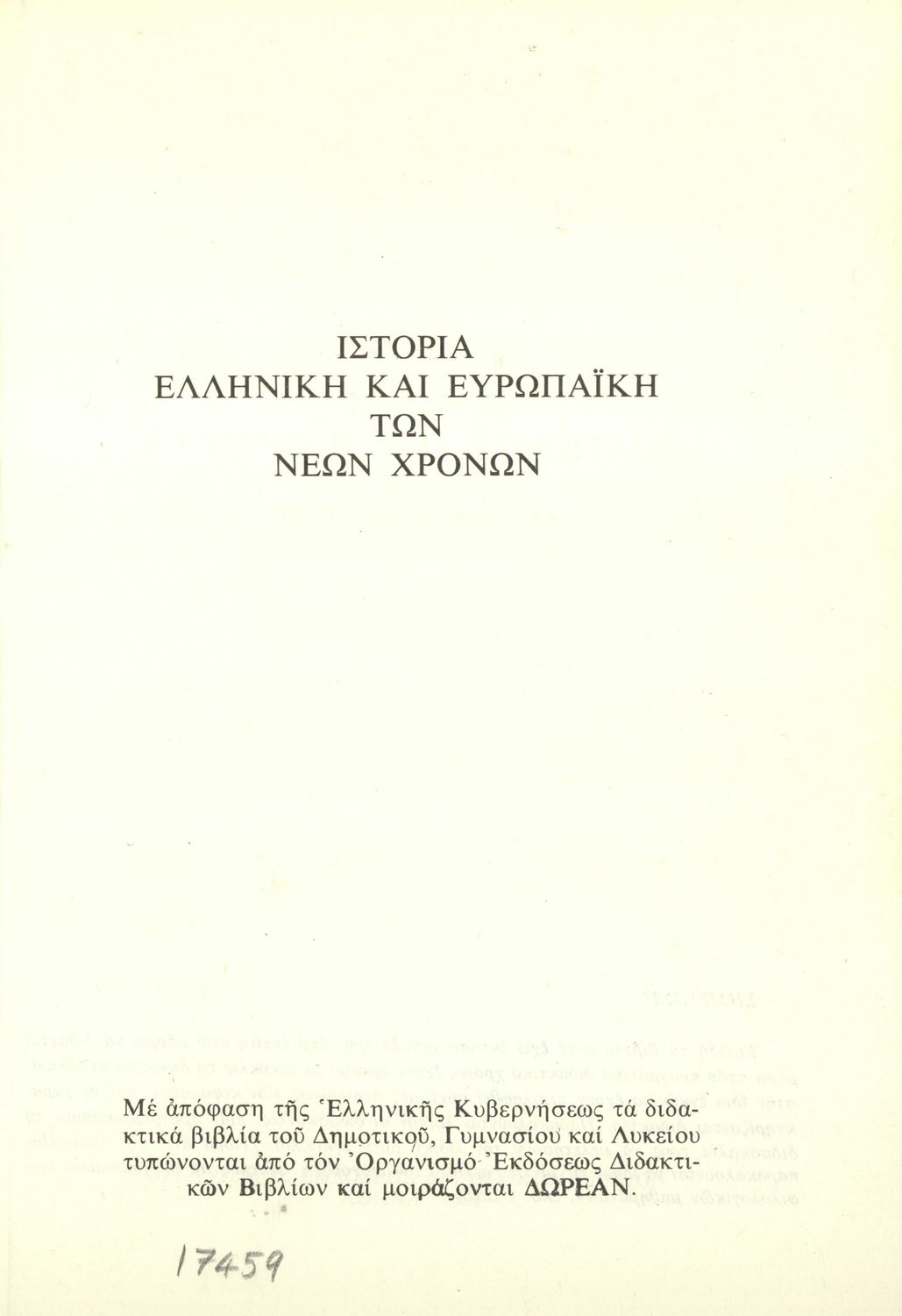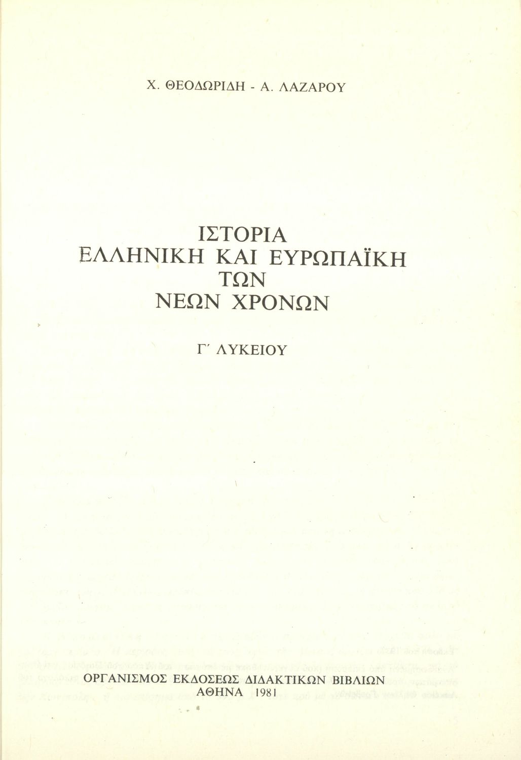 Τίτλος: Ιστορία ελληνική και ευρωπαϊκή των νέων χρόνων Γ΄ Λυκείου