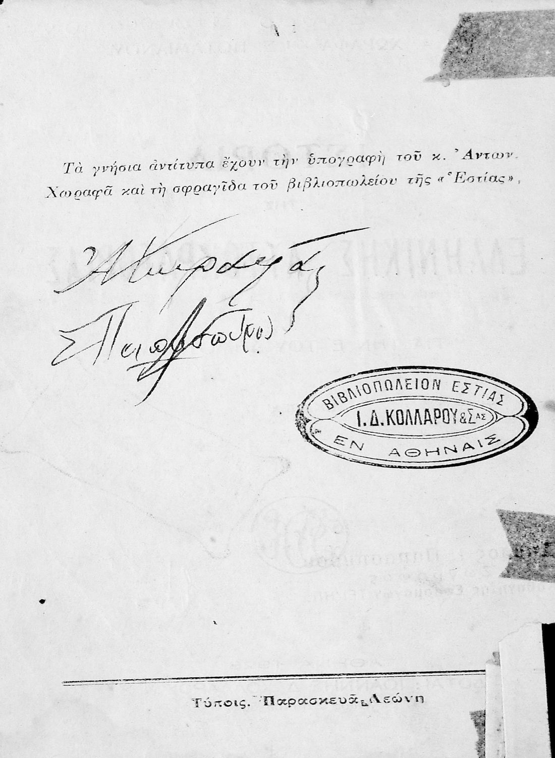 Εκδότης: Ιωάννης Δ. Κολλάρος, Βιβλιοπωλείο της "Εστίας"