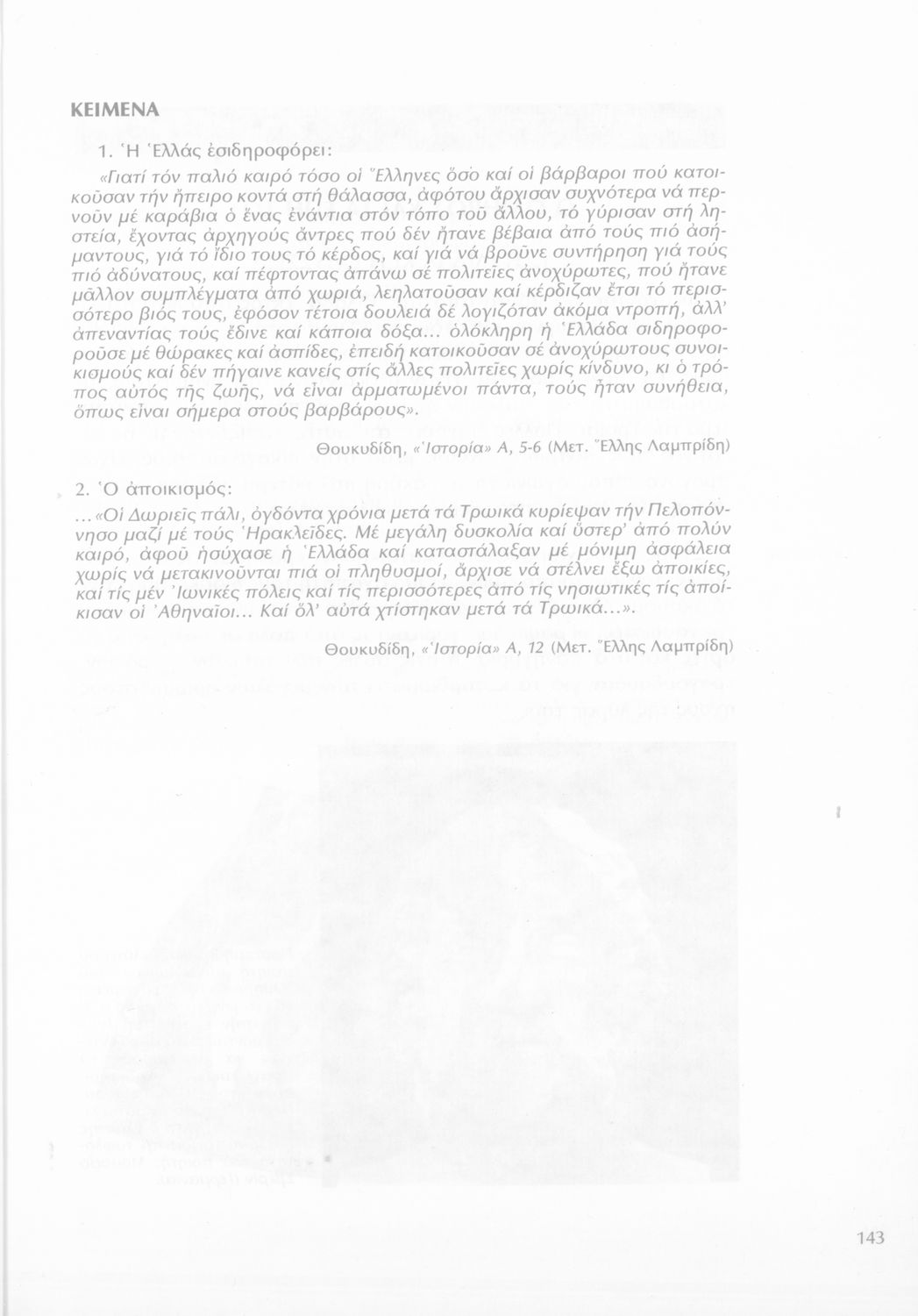 LDR 01457 2200229 4500 035 ## _a01-17462 040 ## _aΙνστιτούτο Εκπαιδευτικής Πολιτικής 041 ## _ael 100 ## _aΑθηνά Γ. Καλογεροπούλου 110 ## _a17462 245 0# _aΙστορία των αρχαίων χρόνων ως τα 146 π. Χ. Α΄ Γυμνασίου 250 ## _a9η Έκδοση 260 ## _aΑθήνα _bΟργανισμός Εκδόσεως Διδακτικών Βιβλίων _c1982 300 ## _a423 _bΣκίτσα, χάρτης, εικόνες (ασπρόμαυρα) 520 ## _aΣχολικό εγχειρίδιο Ιστορίας Α΄ Γυμνασίου που καλύπτει την περίοδο από την περίοδο από την εμφάνιση των πρώτων πολιτισμών μέχρι τους Καρχηδονικούς Πολέμους. Περιλαμβάνει χρονολόγιο και γλωσσάριο με επεξήγηση ορισμών. 521 ## _aΑ' Γυμνασίου 522 ## _aΕλλάδα 546 ## _aΔημοτική 563 ## _aΣκληρό Εξώφυλλο 583 ## _a3726/12-1-1982 _c1982 650 #4 _aΑιγύπτοι _aΑποικίες _aΔωριείς _aΚαρχηδόνα _aΜ Αλέξανδρος _aΜακεδονία _aΠελοποννησιακός πόλεμος _aΠερικλής _aΠέρσες _aΡώμη 700 ## _aΛουΐζα Μοντεσάντου