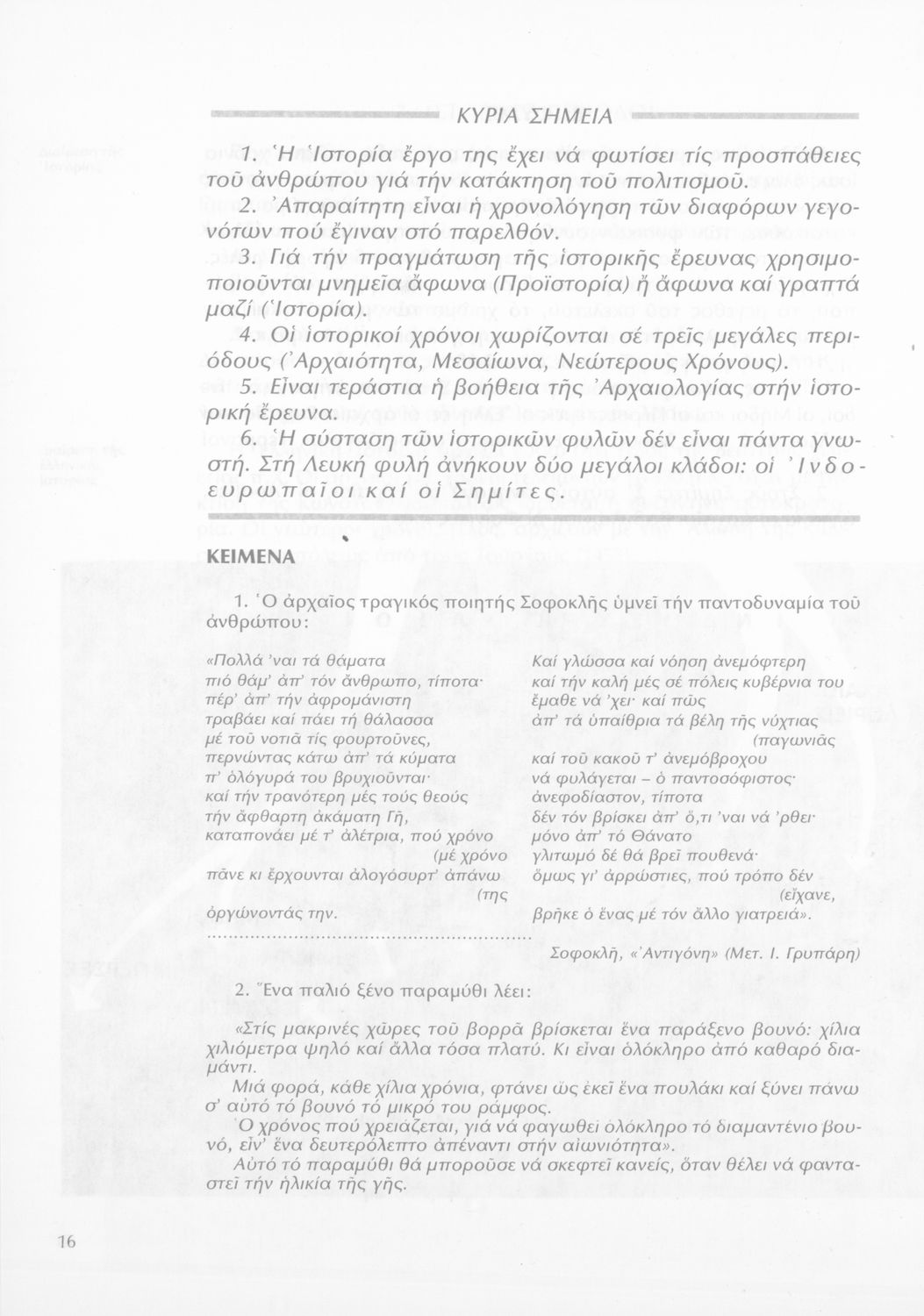 Σχολικό εγχειρίδιο Ιστορίας Α΄ Γυμνασίου που καλύπτει την περίοδο από την περίοδο από την εμφάνιση των πρώτων πολιτισμών μέχρι τους Καρχηδονικούς Πολέμους. Περιλαμβάνει χρονολόγιο και γλωσσάριο με επεξήγηση ορισμών.