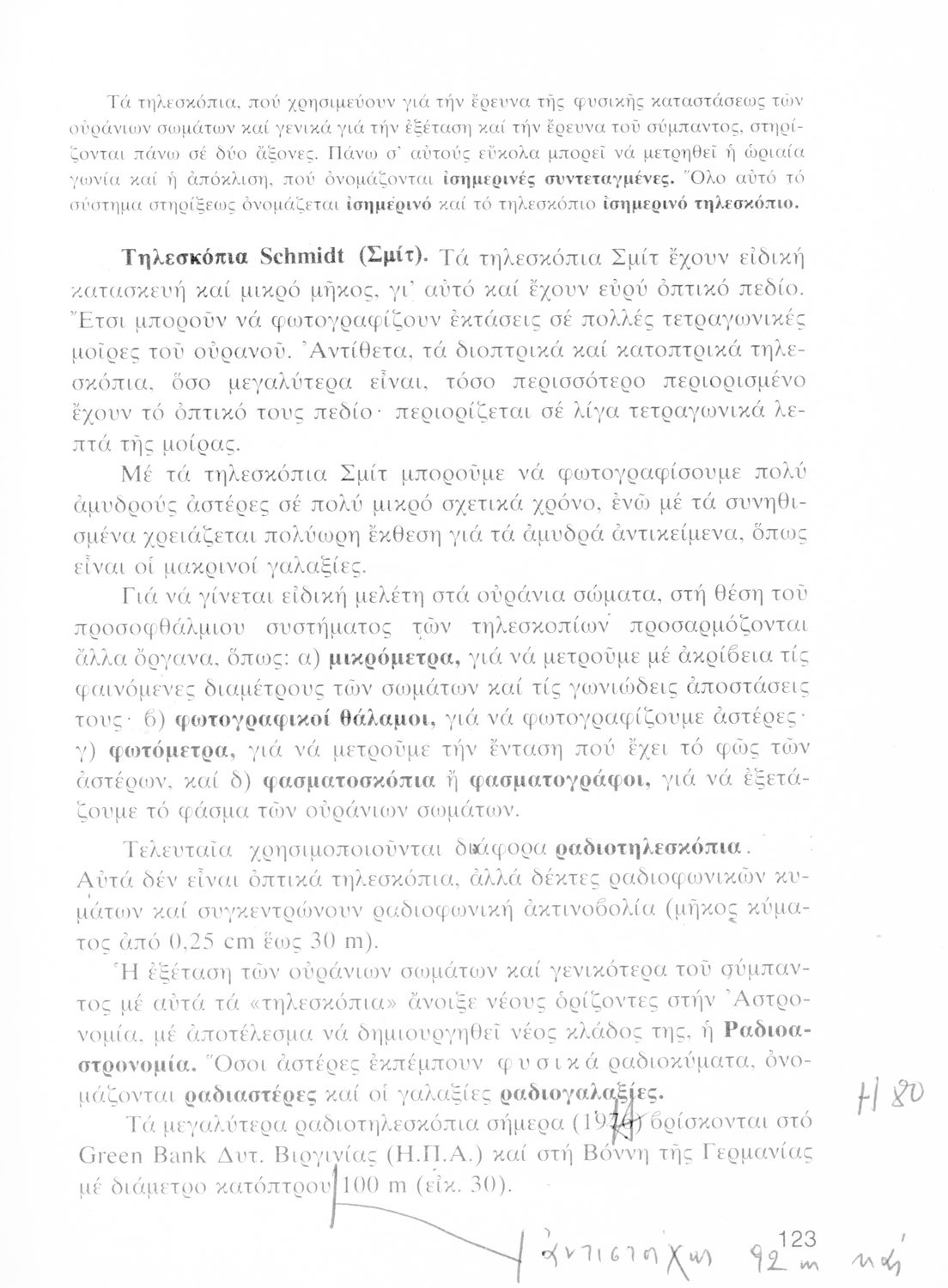 Σχολικό εγχειρίδιο Κοσμογραφίας Γ΄ Λυκείου που πραγματεύεται τη μορφή, σύσταση, μέγεθος και κίνηση των γαλαξιών και των πλανητών. Περιέχει στοιχεία αστροναυτικής και πίνακα με 88 αστερισμούς, τα διεθνή ονόματα και τα σύμβολά τους.