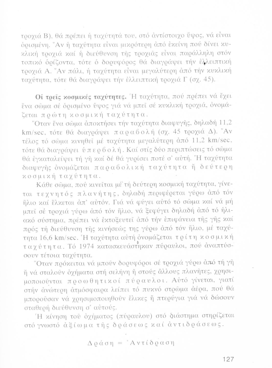 Σχολικό εγχειρίδιο Κοσμογραφίας Γ΄ Λυκείου που εστιάζει στην κίνηση των πλανητών και στον τρόπο υπολογισμού της τροχιάς τους.
