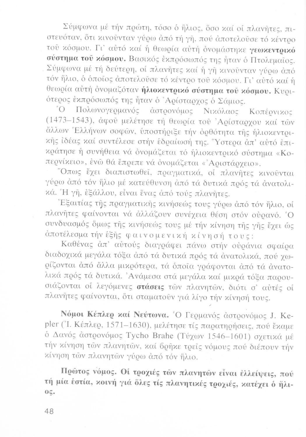 Σχολικό εγχειρίδιο Κοσμογραφίας Γ΄ Λυκείου που εστιάζει στην κίνηση των πλανητών και στον τρόπο υπολογισμού της τροχιάς τους.