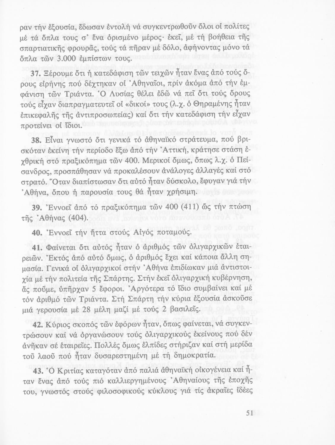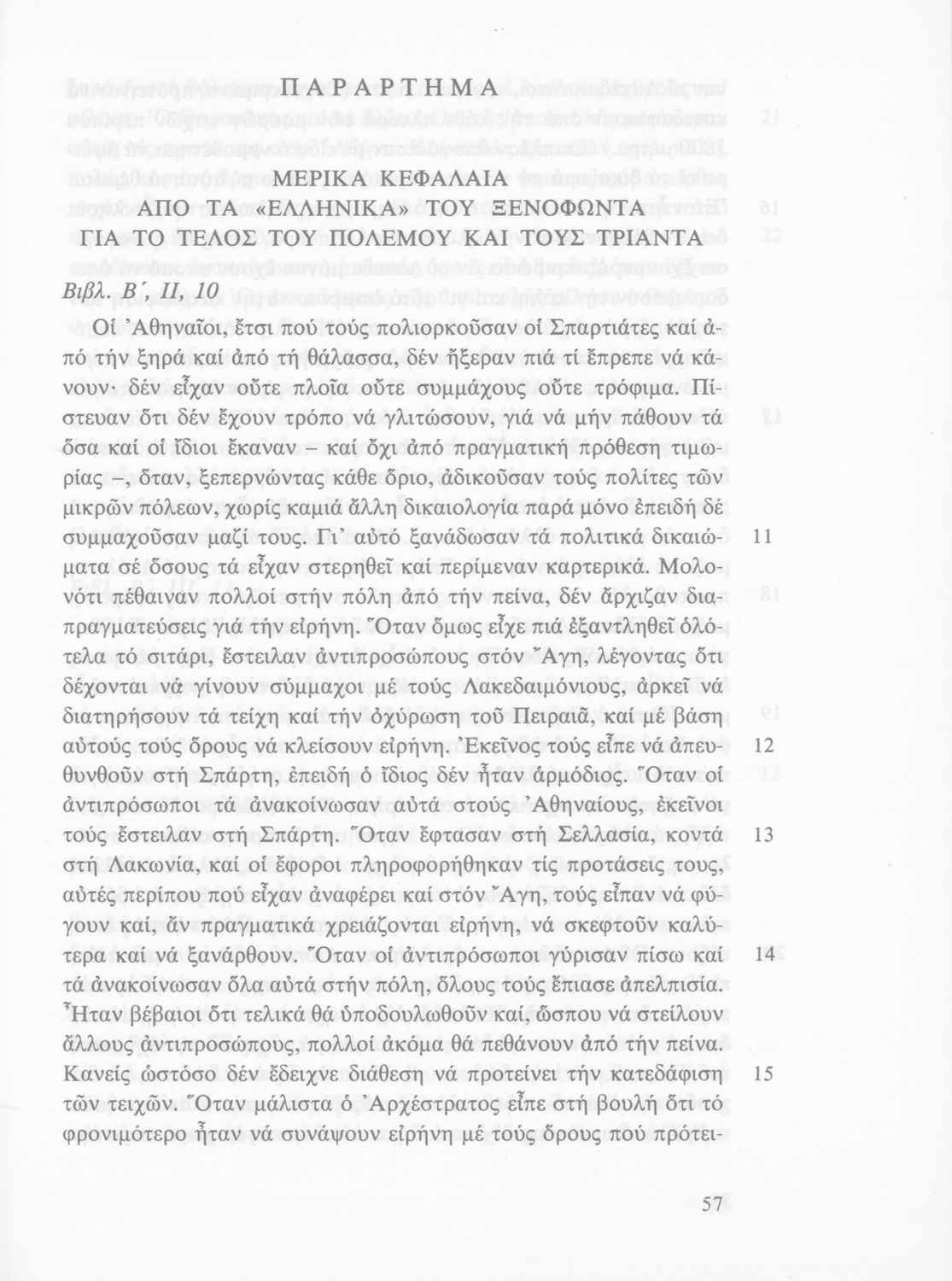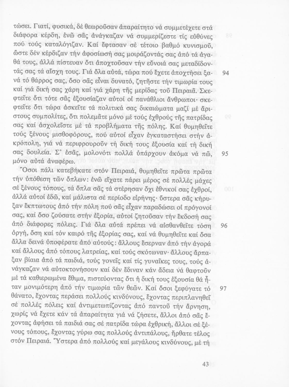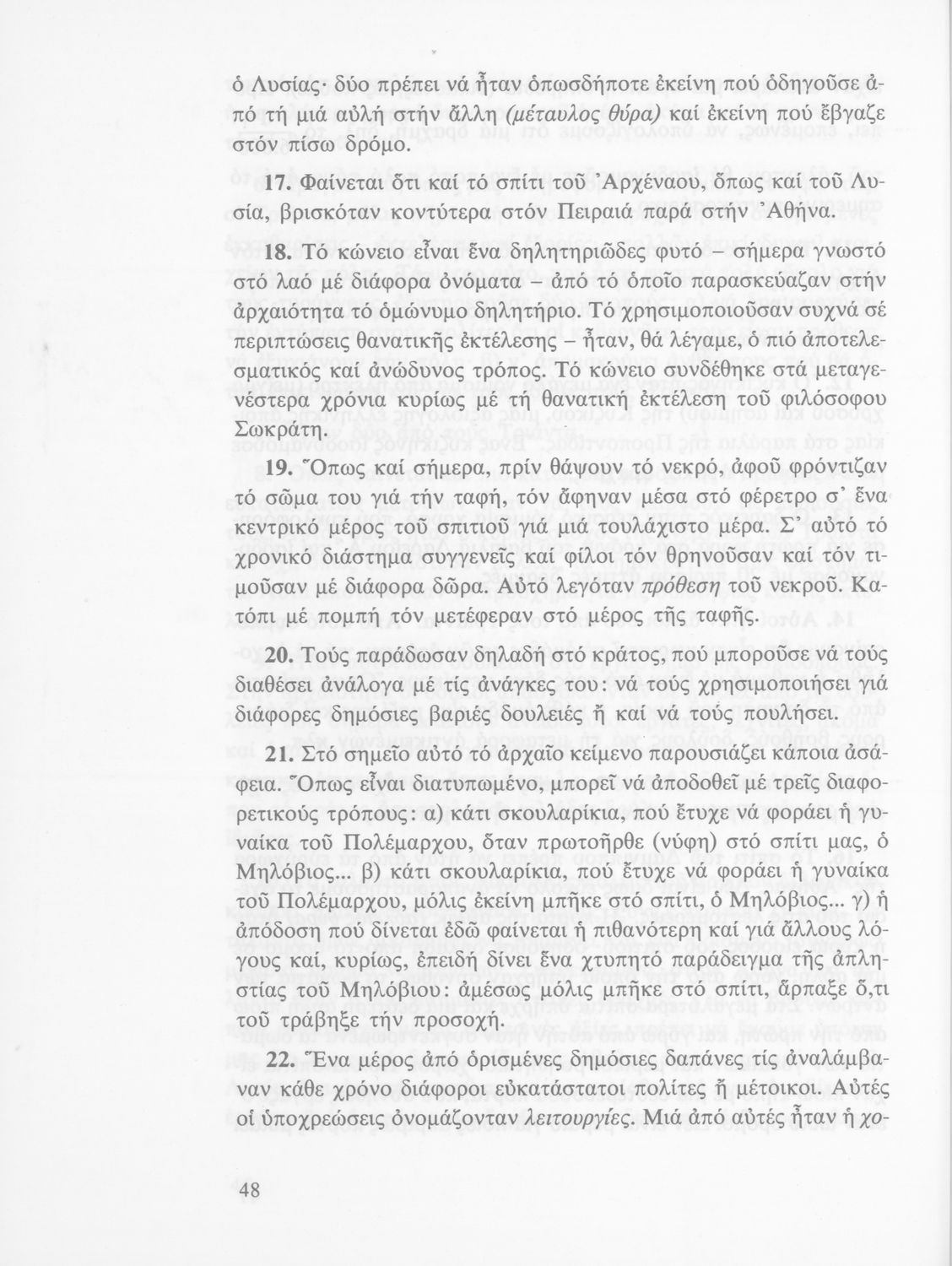 Σχολικό εγχειρίδιο Αρχαίων Ελληνικών Β΄ Γυμνασίου που περιλαμβάνει εισαγωγή στη ρητορική, τη ζωή και το έργο του Λυσία, ο Λόγος του Εναντίον του Ερατοσθένη σε μετάφραση και ερμηνευτικές σημειώσεις. Περιέχει και παράρτημα με αποσπάσματα από τα Ελληνικά του Ξενοφώντα σε μετάφραση.