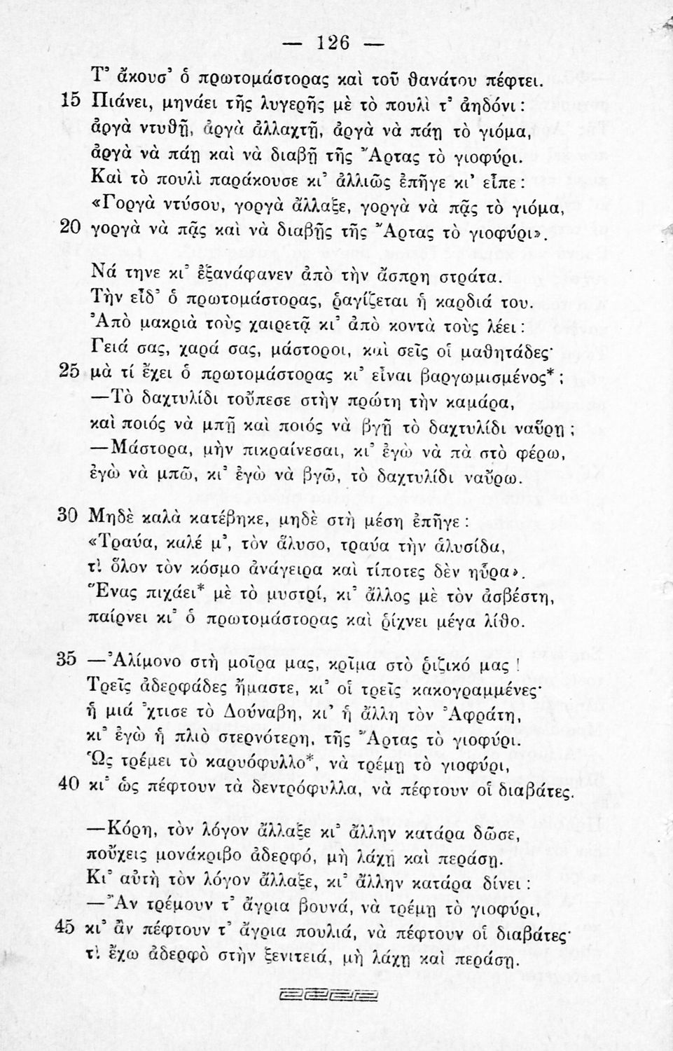 Σχολικό εγχειρίδιο για την Β΄ Γυμνασίου και την Γ΄ Αστικού Θηλέων για το μάθημα των Νέων Ελληνικών. Το εγχειρίδιο αποτελείται από κείμενα πεζού λόγου, επικολυρικά ποιήματα, ωδές, ηθογραφικά διηγήματα, ρητορικά