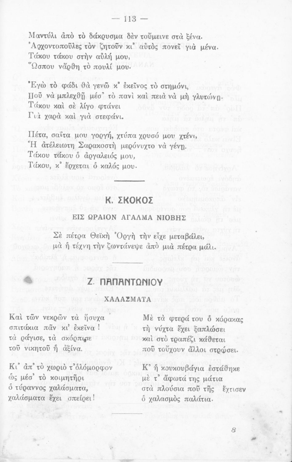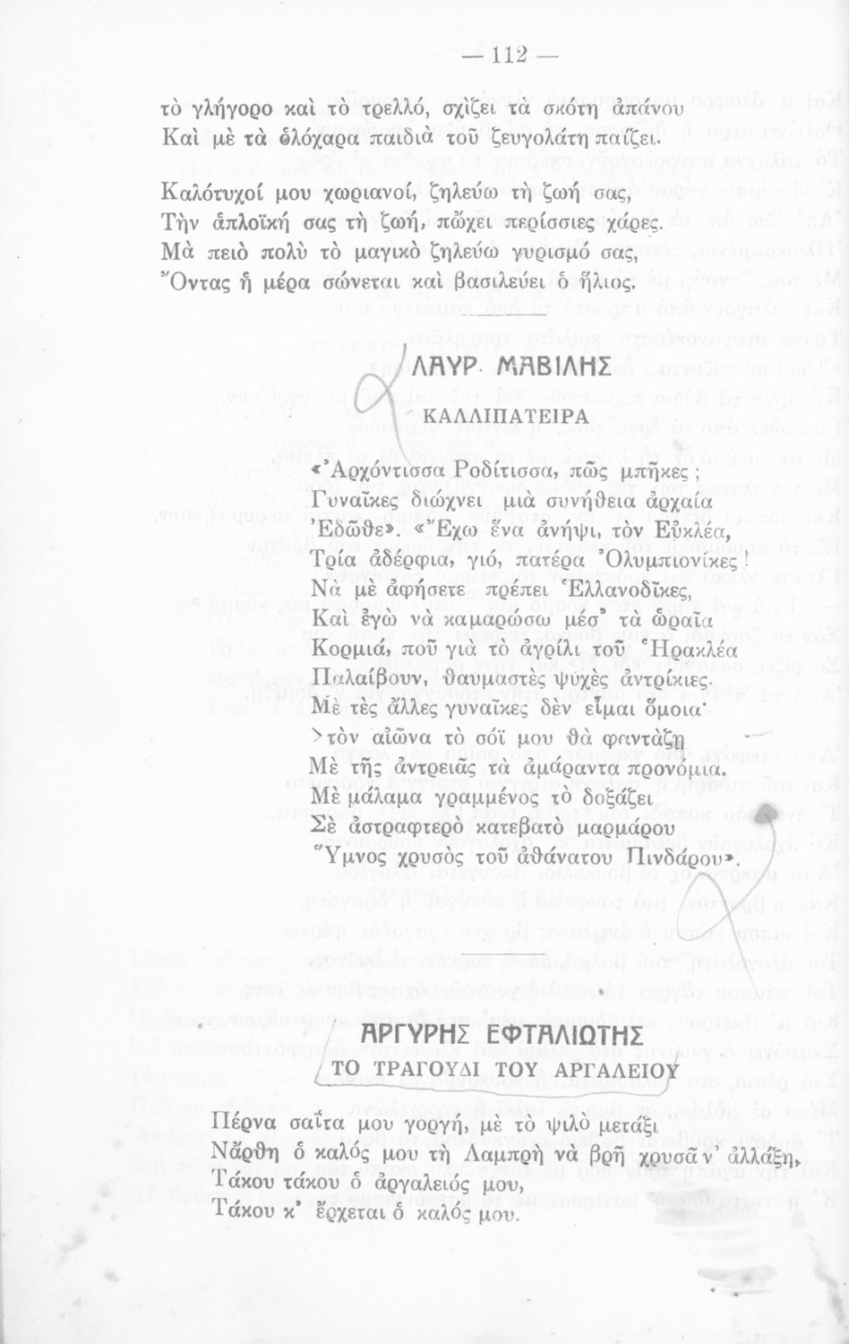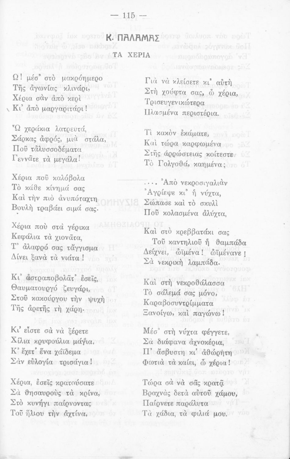 Σχετιζόμενοι όροι:  Παπαντωνίου, Πολέμης, Παλαμάς, Βηλαράς