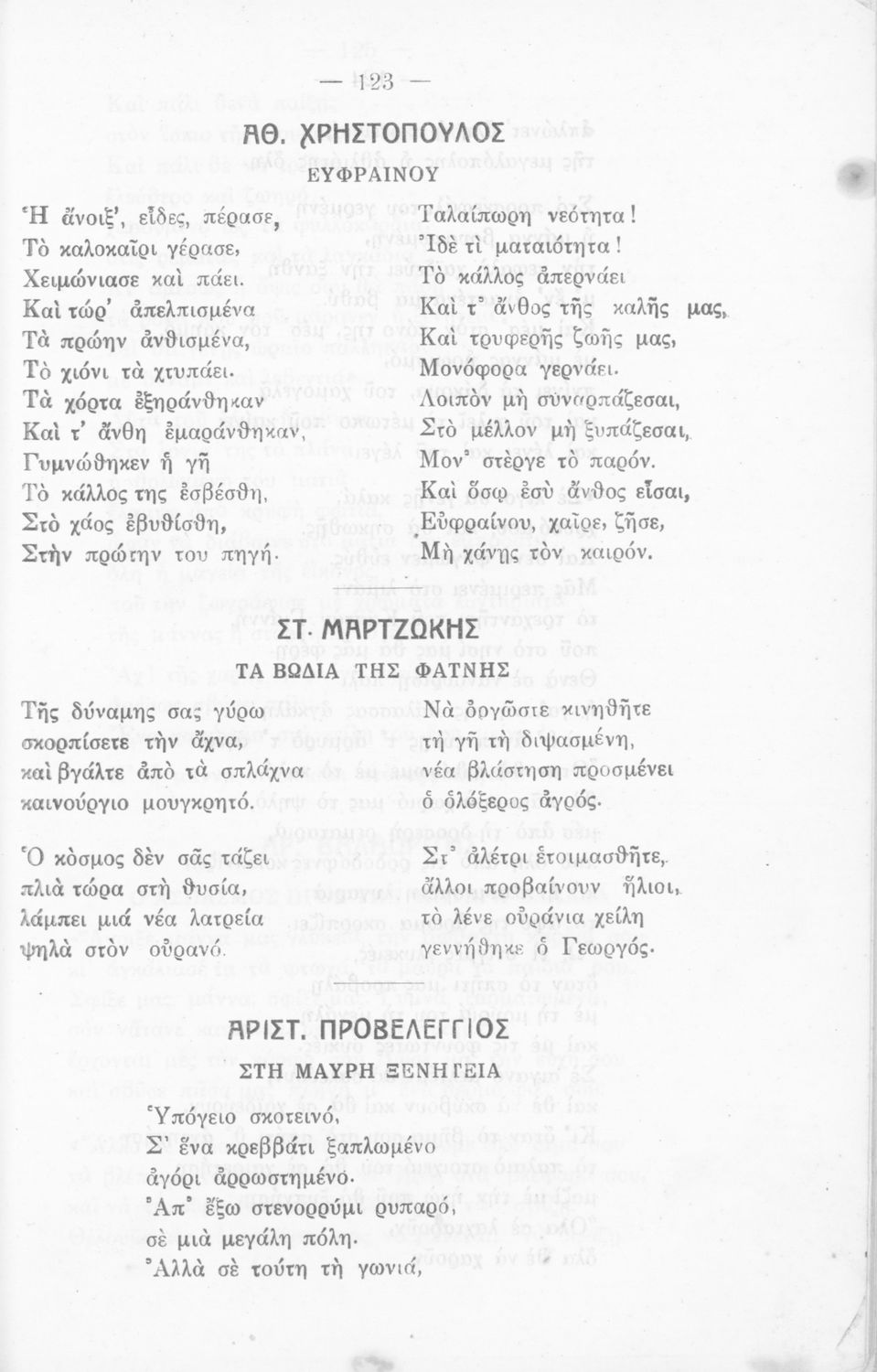 Σχετιζόμενοι όροι:  Παπαντωνίου, Πολέμης, Παλαμάς, Βηλαράς