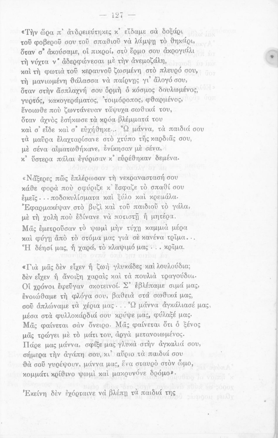 Σχολικό εγχειρίδιο Νέων Ελληνικών Δ΄ Γυμνασίου Θηλέων που περιλαμβάνει πεζά, ποιήματα και δημοτικά τραγούδια εμπνευσμένα από την σύγχρονη ελληνική ιστορία και την οικογενειακή και θρησκευτική ζωή. Περιέχει και