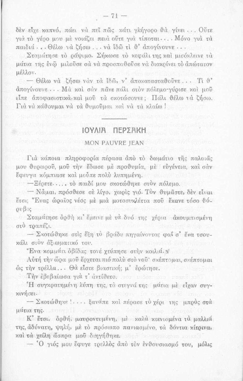 Σχολικό εγχειρίδιο Νέων Ελληνικών Δ΄ Γυμνασίου Θηλέων που περιλαμβάνει πεζά, ποιήματα και δημοτικά τραγούδια εμπνευσμένα από την σύγχρονη ελληνική ιστορία και την οικογενειακή και θρησκευτική ζωή. Περιέχει και