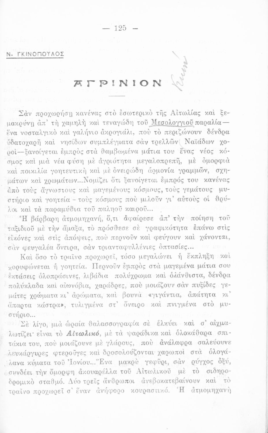 Σχολικό εγχειρίδιο Νέων Ελληνικών Γ΄ Γυμνασίου και Α' Αστικού Σχολείου που περιέχει πεζά και ποιήματα Ελλήνων συγγραφέων εμπνευσμένα από τη θρησκευτική και κοινωνική ζωή, την ελληνική μυθολογία, την αρχαία και
