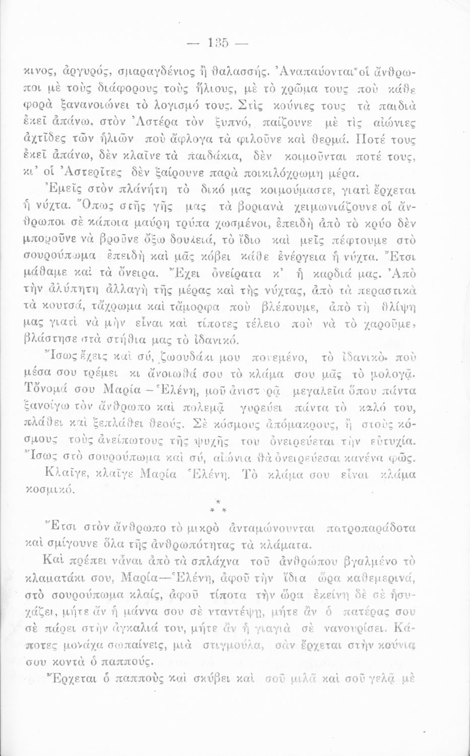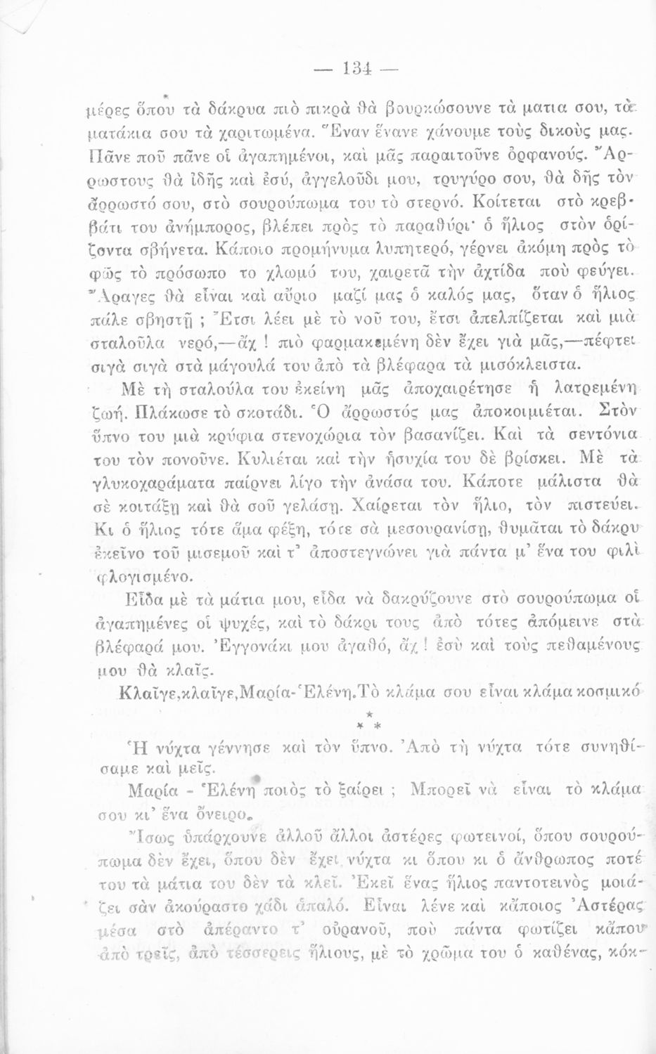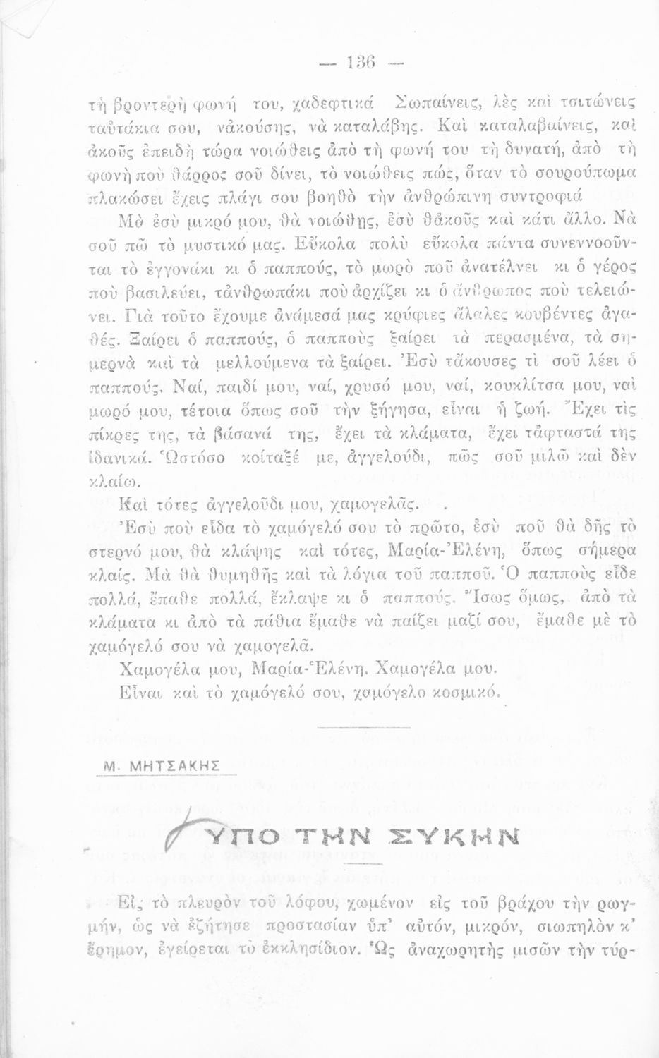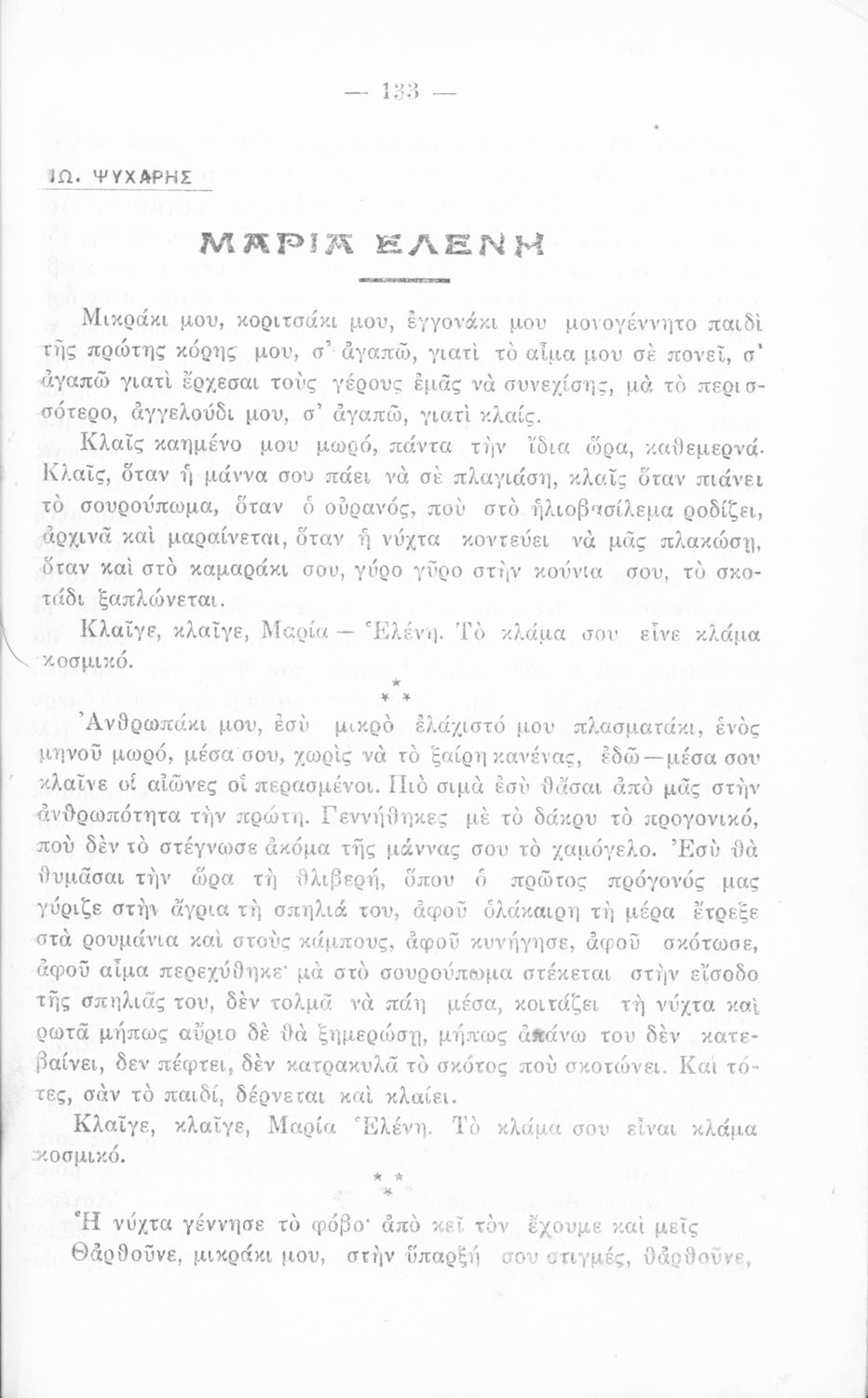 Σχολικό εγχειρίδιο Νέων Ελληνικών Δ΄ Γυμνασίου Θηλέων που περιλαμβάνει πεζά, ποιήματα και δημοτικά τραγούδια εμπνευσμένα από την σύγχρονη ελληνική ιστορία και την οικογενειακή και θρησκευτική ζωή. Περιέχει και παράρτημα με βιογραφίες των συγγραφέων και λεξιλόγιο.