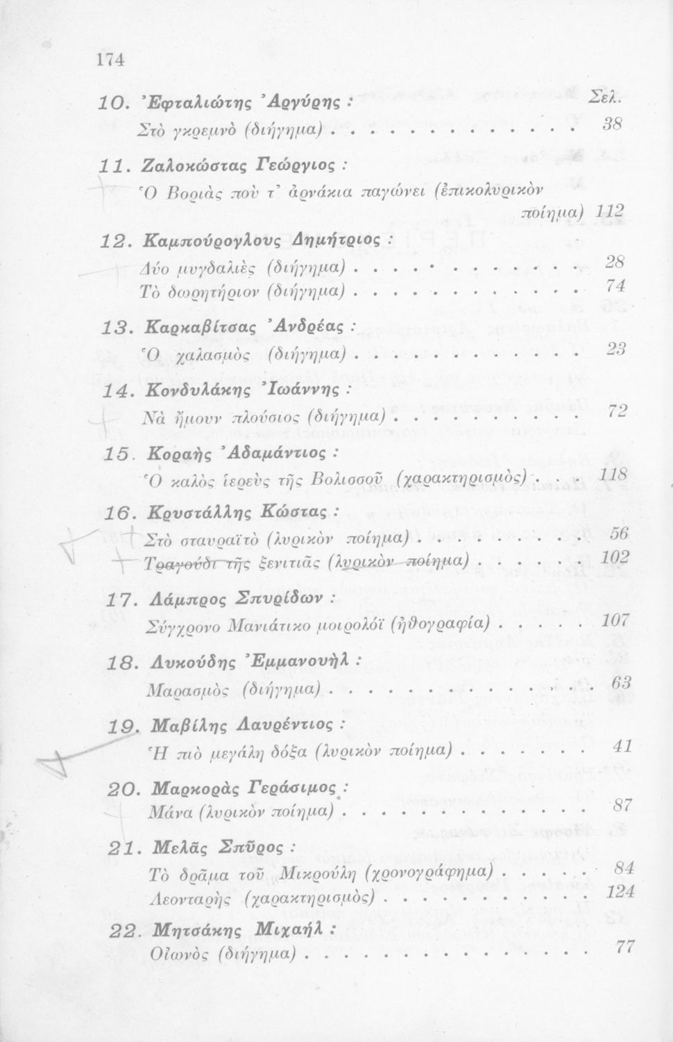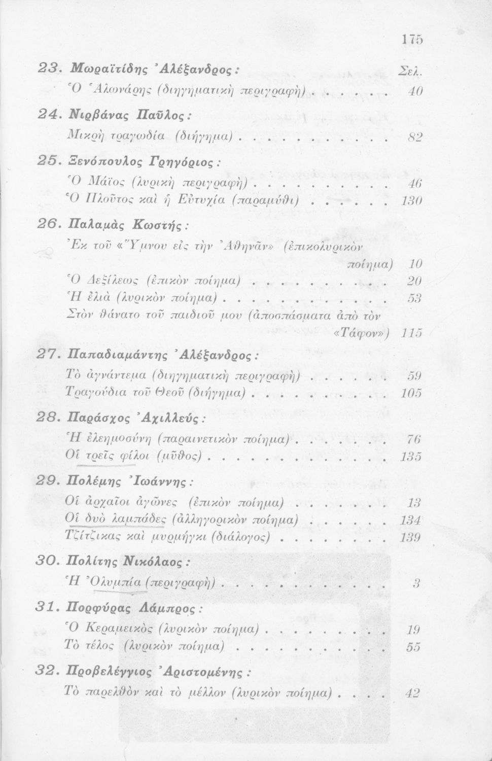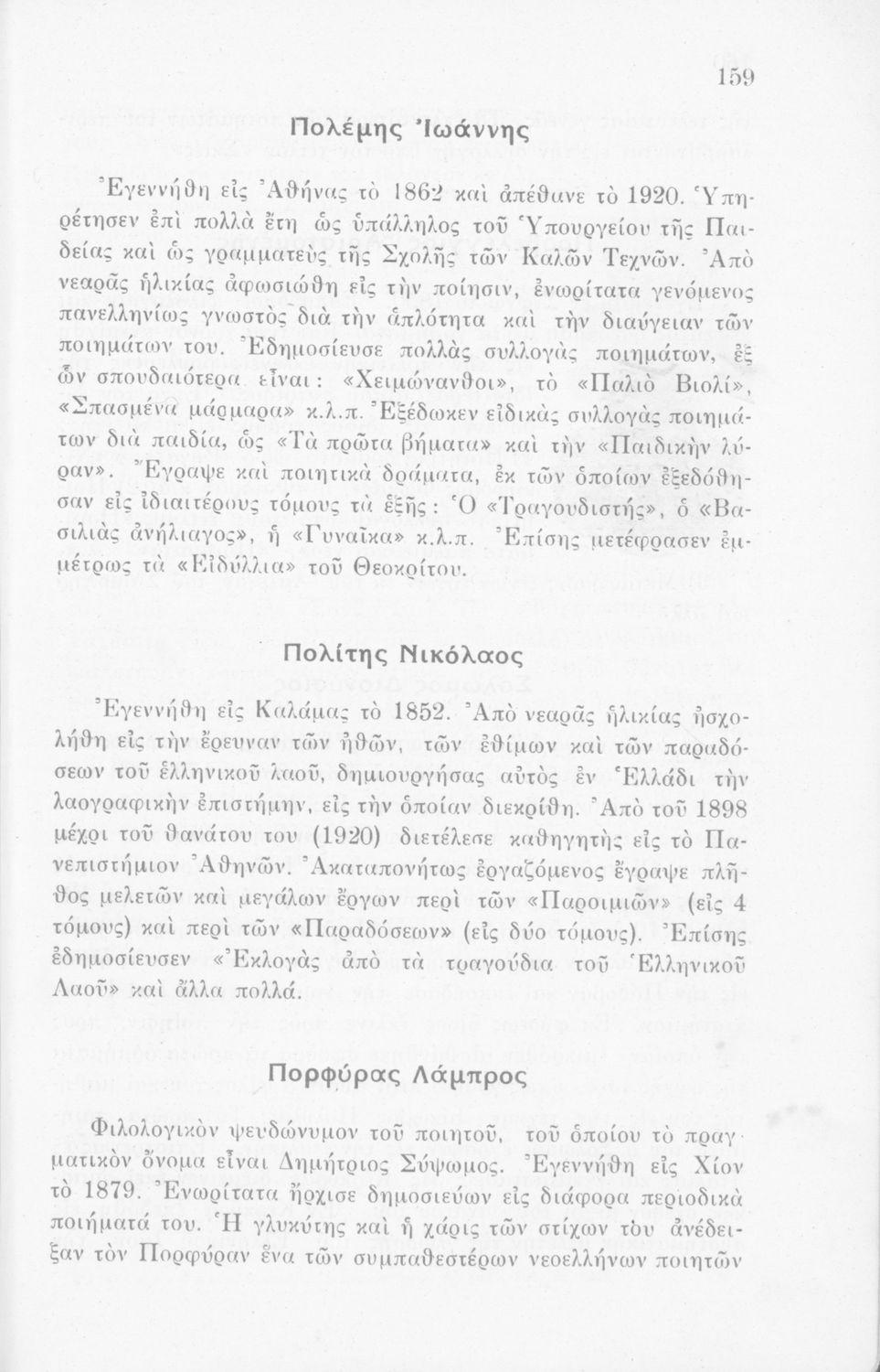 Σχετιζόμενοι όροι:  Παπαντωνίου, Πολέμης, Παλαμάς, Βηλαράς