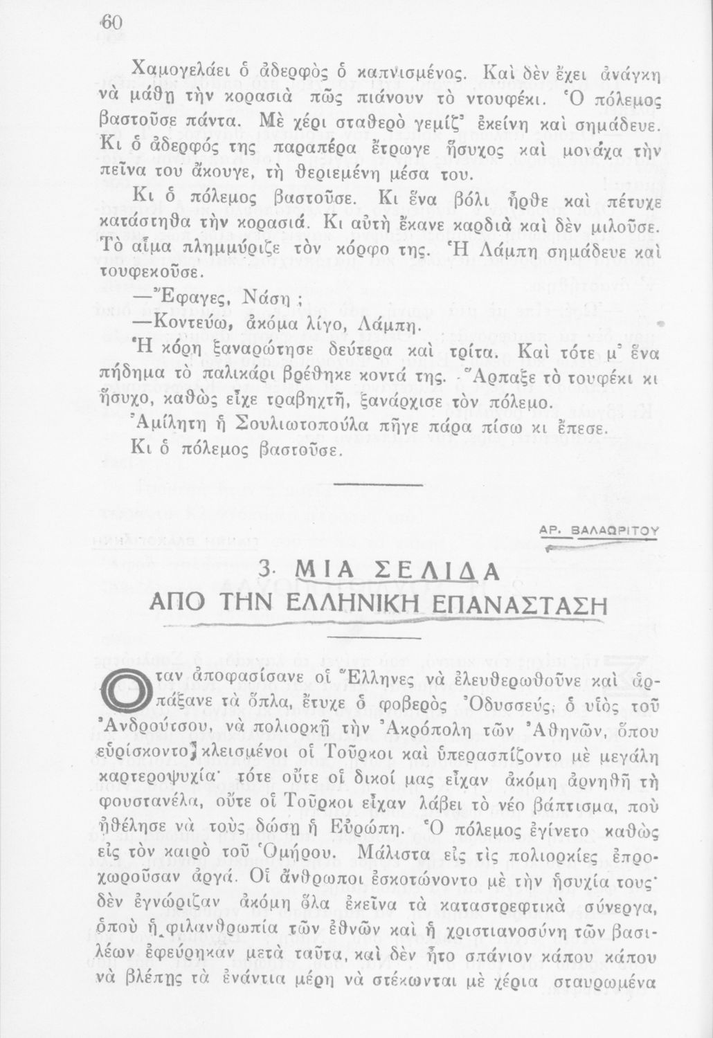 Σχολικό εγχειρίδιο Νέων Ελληνικών Β΄ Τετραταξίου Γυμνασίου και Γ΄ Αστικού Σχολείου Θηλέων που περιλαμβάνει ποιήματα και πεζά Ελλήνων συγγραφέων εμπνευσμένα από την σύγχρονη ελληνική ιστορία. Περιέχει και ...