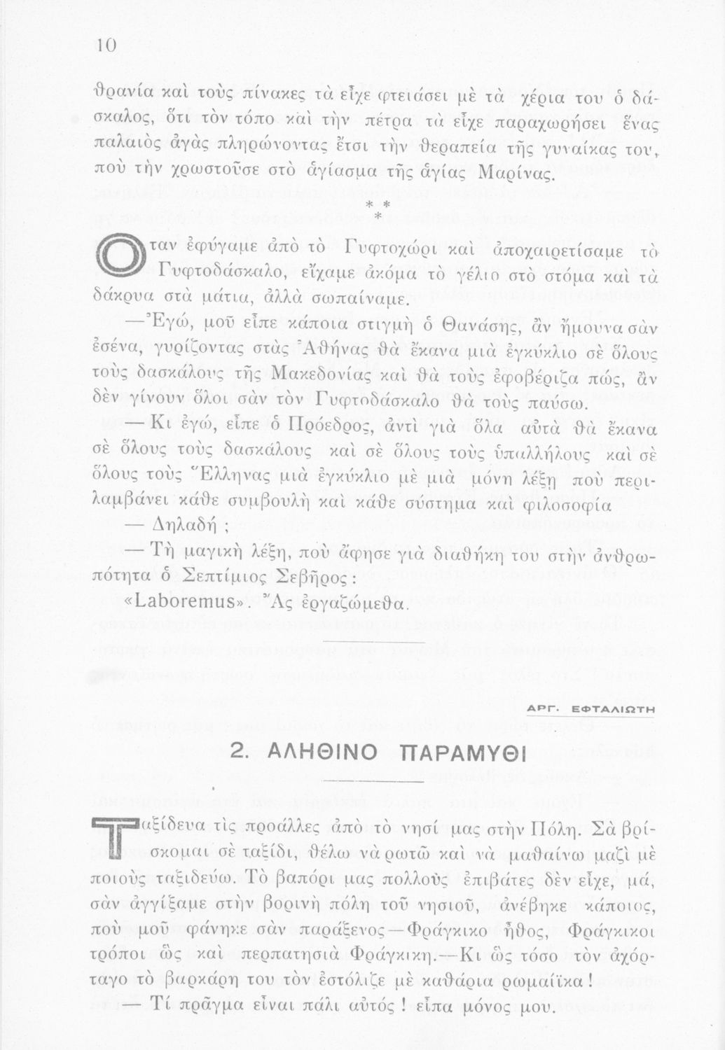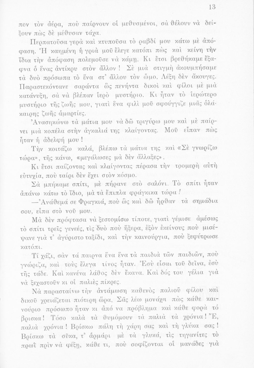 Σχολικό εγχειρίδιο για την Β΄ Γυμνασίου και την Γ΄ Αστικού Θηλέων για το μάθημα των Νέων Ελληνικών. Το εγχειρίδιο αποτελείται από κείμενα πεζού λόγου, επικολυρικά ποιήματα, ωδές, ηθογραφικά διηγήματα, ρητορικά