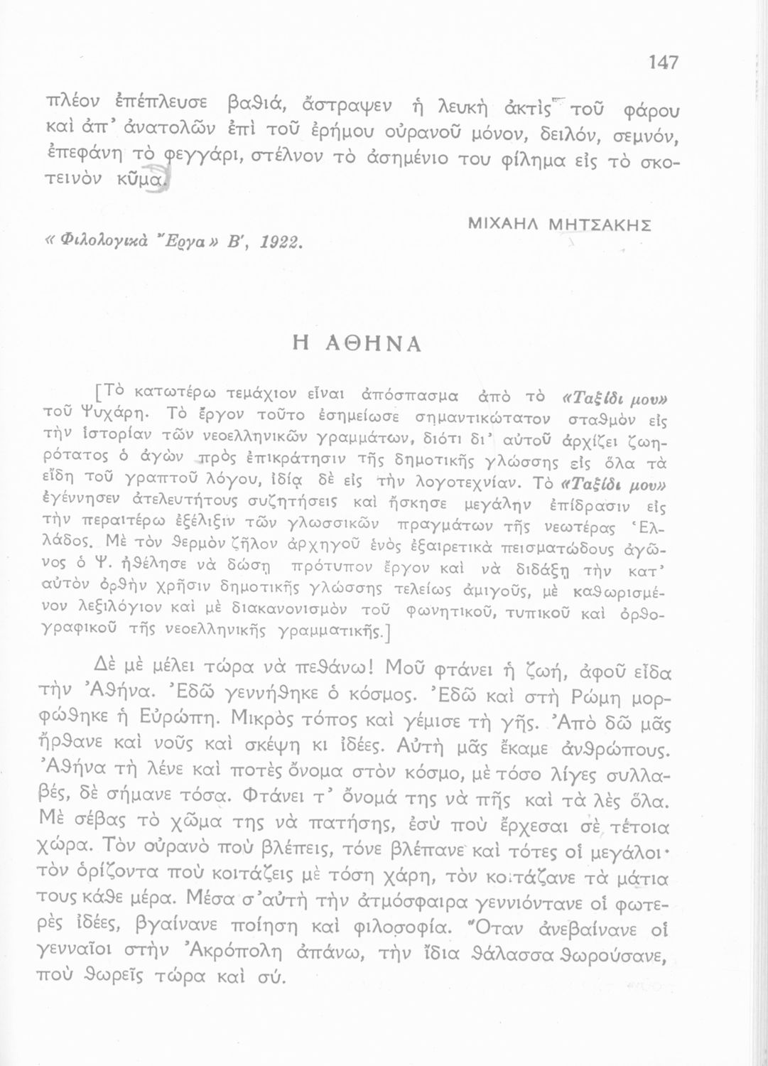 Γλώσσα: Καθαρεύουσα / Δημοτική