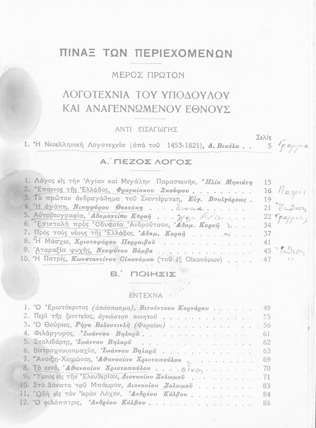 Σχολικό εγχειρίδιο Νέων Ελληνικών Ε΄ Γυμνασίου που περιέχει πεζά και ποιήματα Ελλήνων συγγραφέων εμπνευσμένα από την καθημερινή ζωή και την σύγχρονη ελληνική ιστορία. Περιέχει και κλασσικά κείμενα ξένων λογοτεχνών, παράρτημα με βιογραφίες των συγγραφέων και λεξιλόγιο.