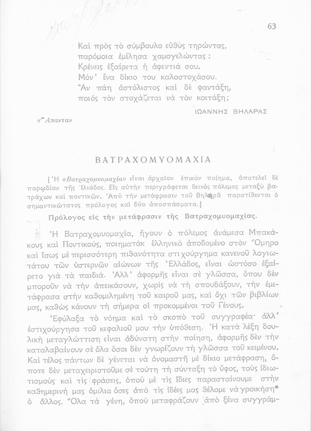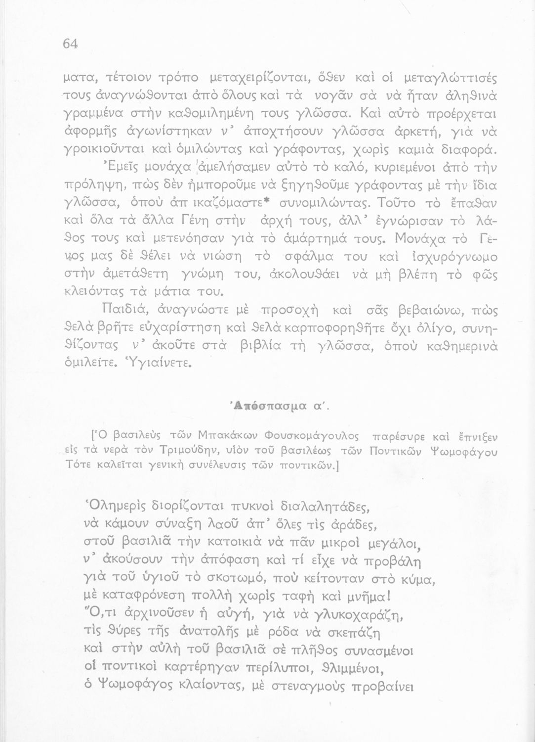 Γλώσσα: Καθαρεύουσα / Δημοτική