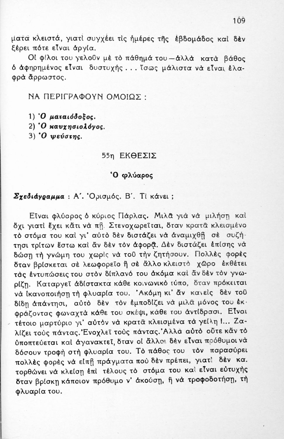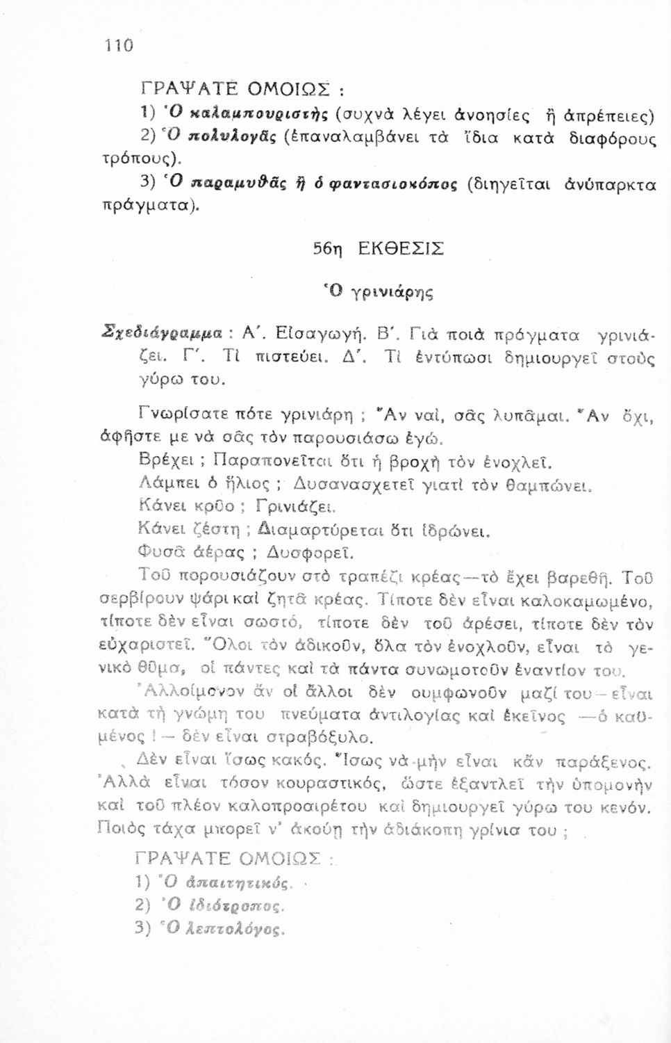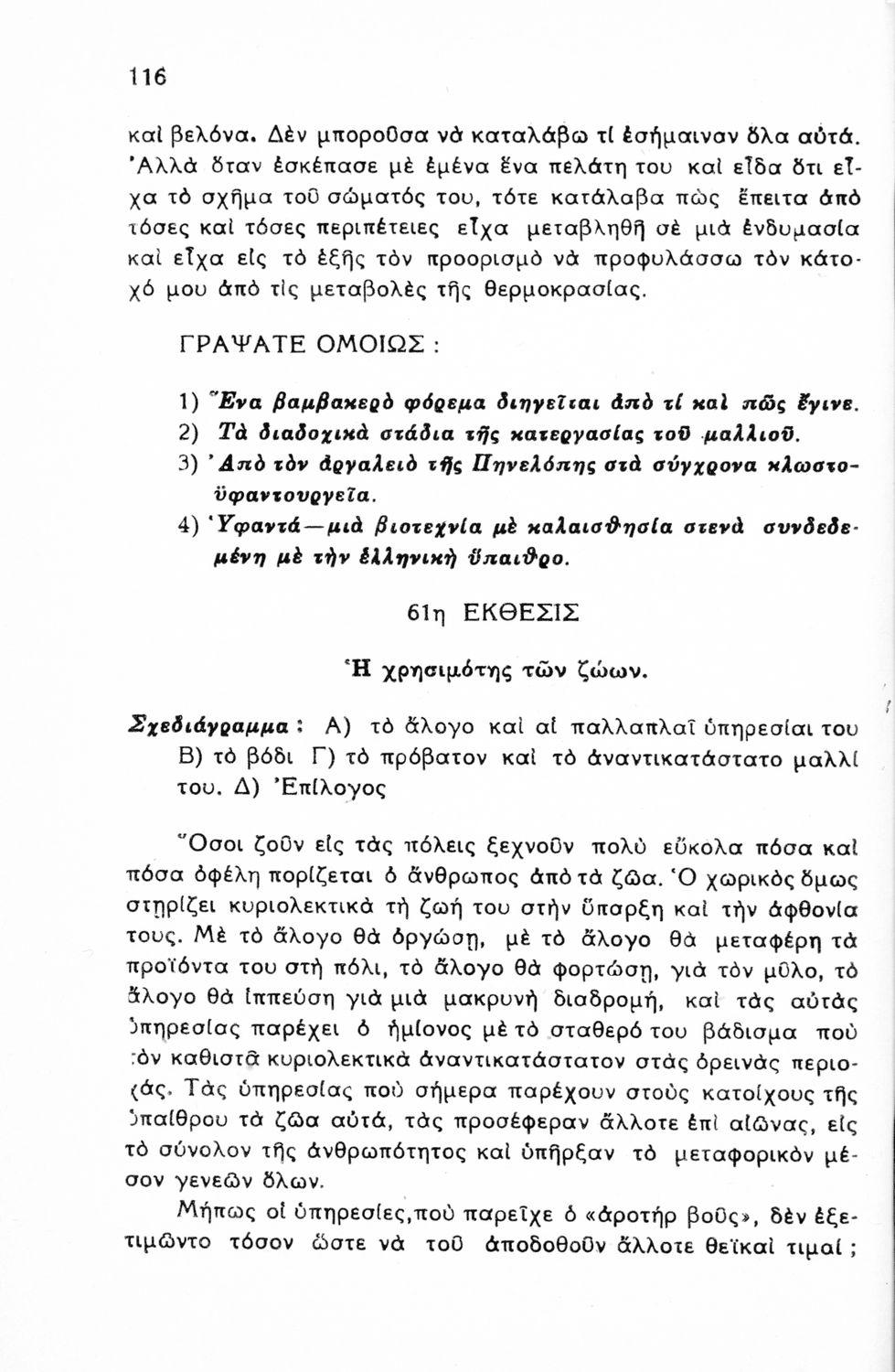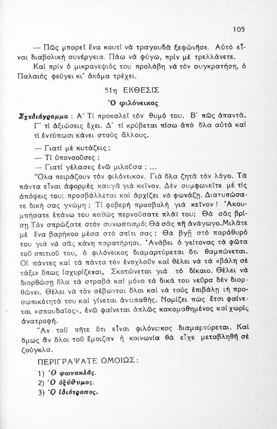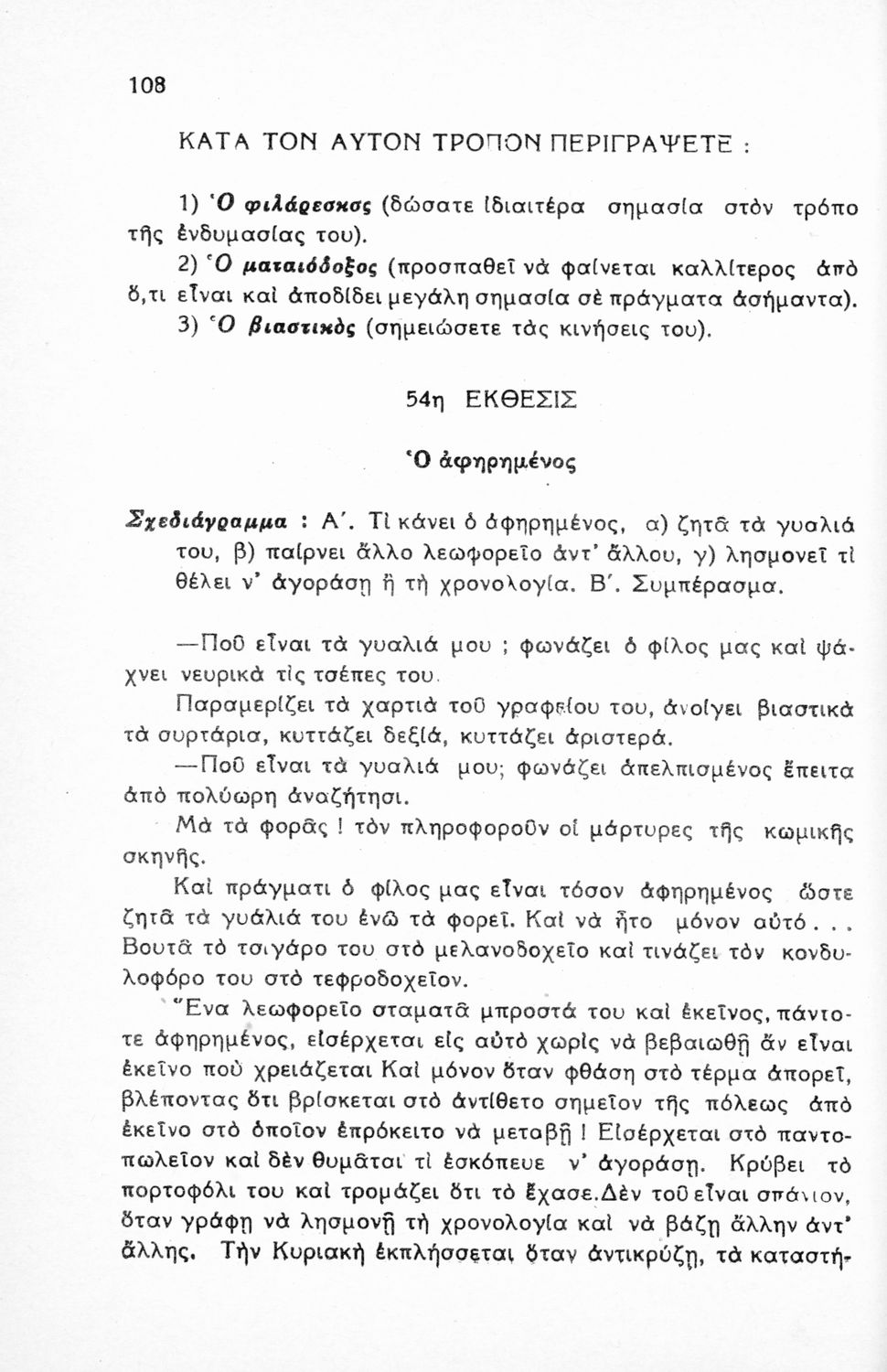 Μαθητικό βοήθημα Νέων Ελληνικών για τις Γ΄, Δ΄, Ε΄ Εξαταξίων Γυμνασίων και Εμπορικών Σχολών που περιλαμβάνει υποδείγματα εκθέσεων, περιγραφές, διηγήσεις, επιστολές, αναλύσεις λογοτεχνικών έργων, σχεδιαγράμματα και θέματα εκθέσεων.