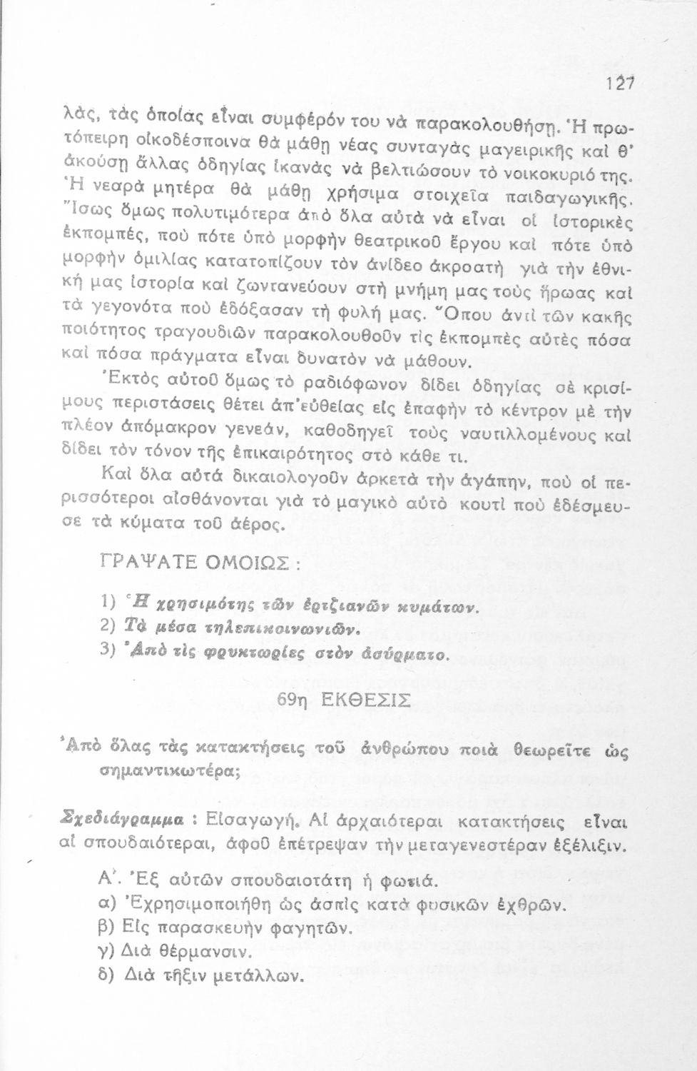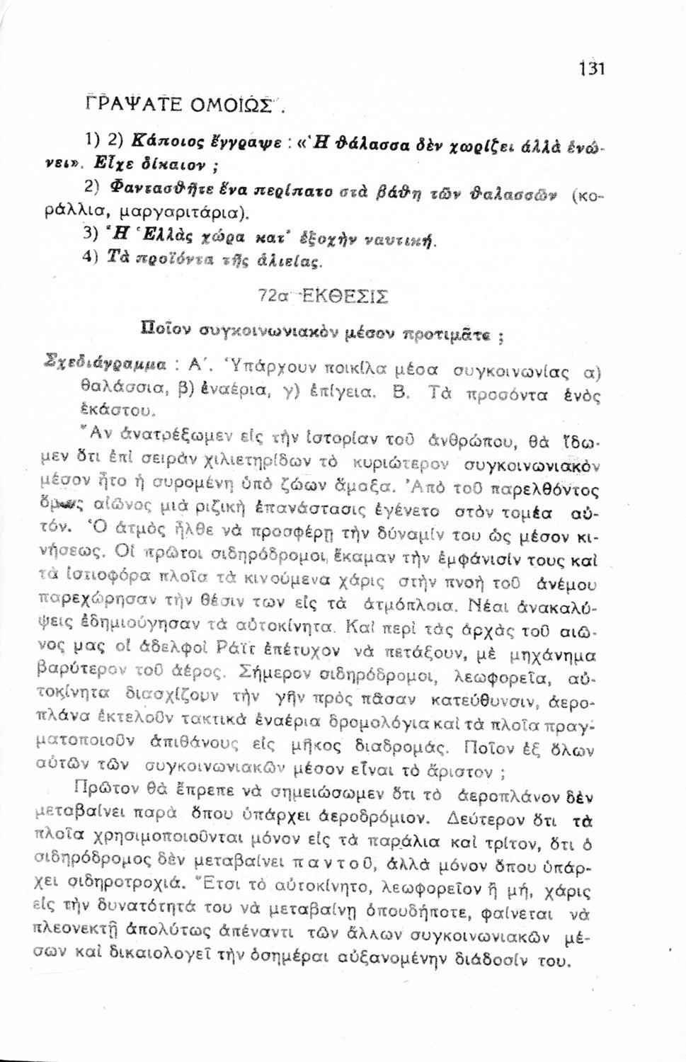 Παρουσίαση περιεχομένου: Μαθητικό βοήθημα Νέων Ελληνικών για τις Γ΄, Δ΄, Ε΄ Εξαταξίων Γυμνασίων και Εμπορικών Σχολών που περιλαμβάνει υποδείγματα εκθέσεων, περιγραφές, διηγήσεις, επιστολές, αναλύσεις λογοτεχνικών έργων, σχεδιαγράμματα και θέματα εκθέσεων.