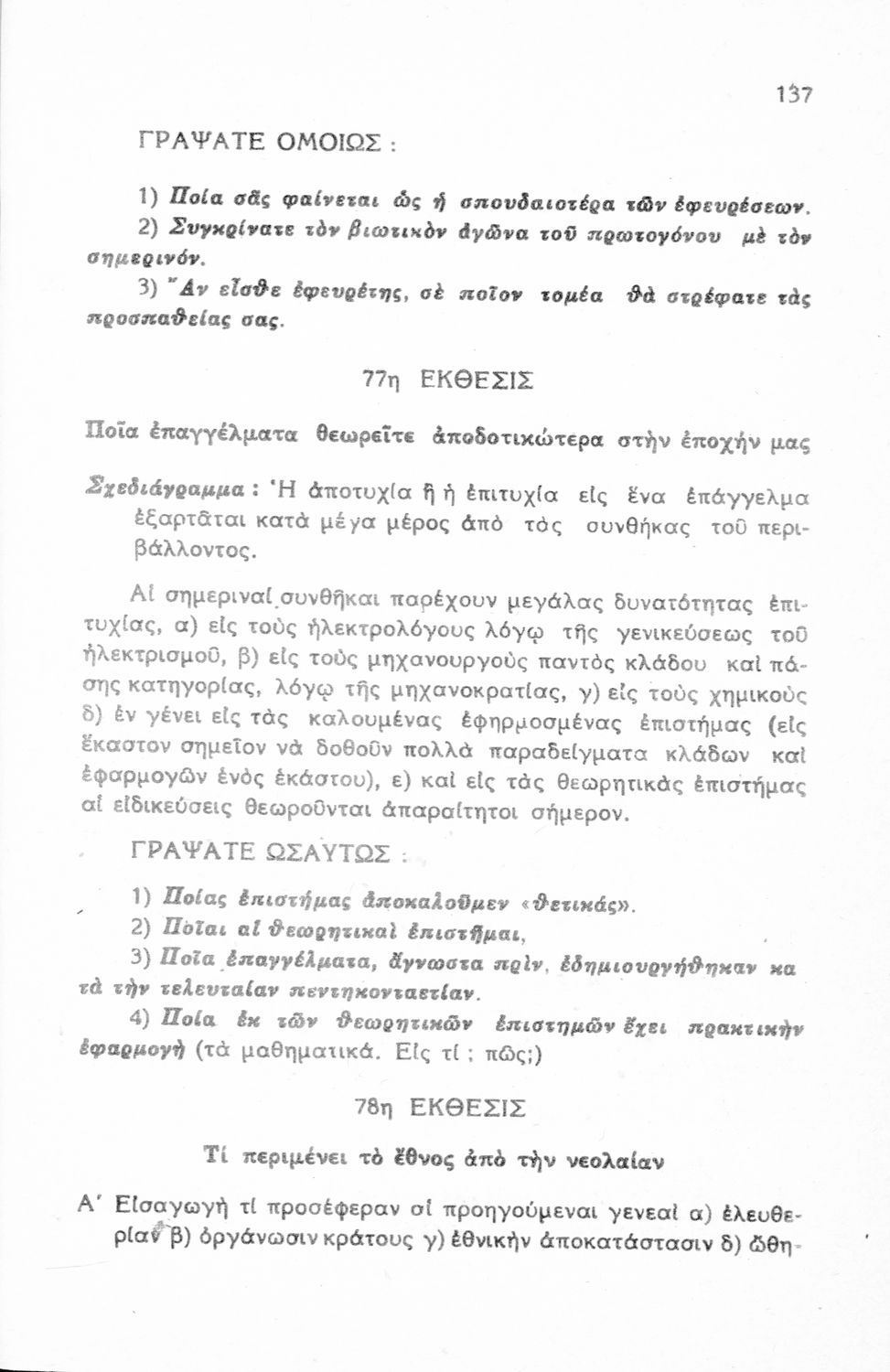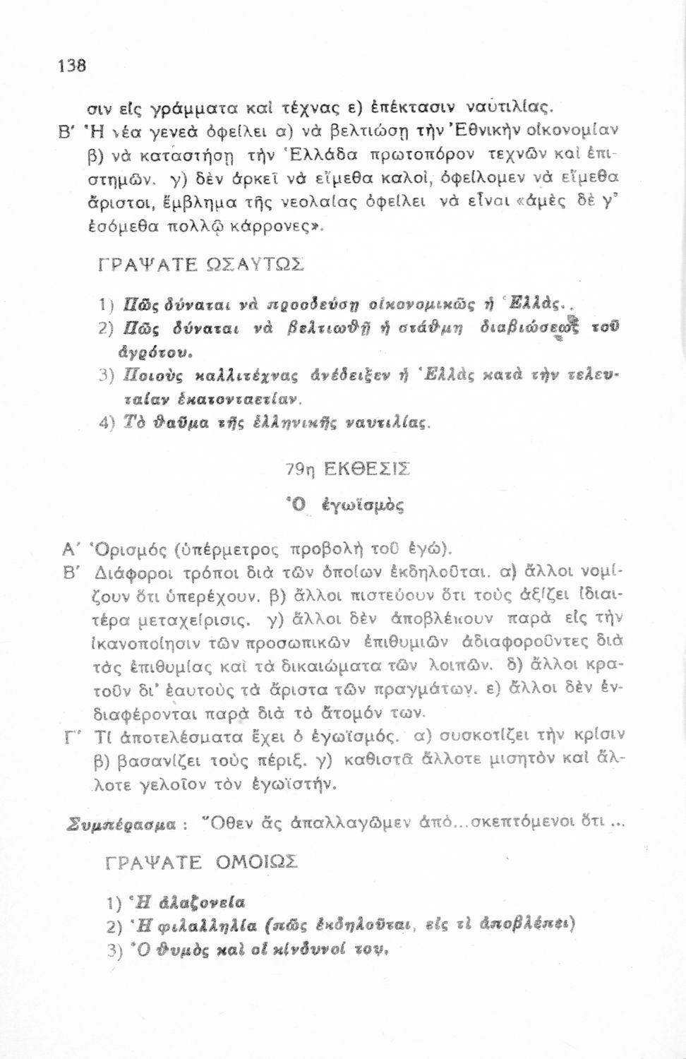 Μαθητικό βοήθημα Νέων Ελληνικών για τις Γ΄, Δ΄, Ε΄ Εξαταξίων Γυμνασίων και Εμπορικών Σχολών που περιλαμβάνει υποδείγματα εκθέσεων, περιγραφές, διηγήσεις, επιστολές, αναλύσεις λογοτεχνικών έργων, σχεδιαγράμματα και θέματα εκθέσεων.