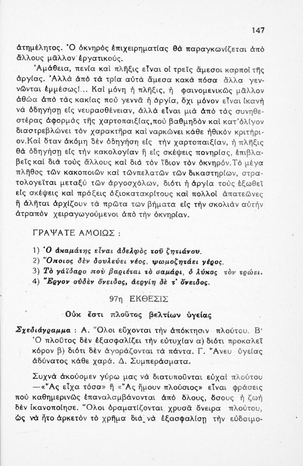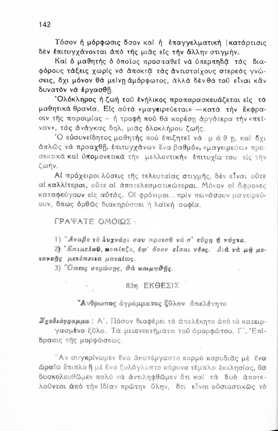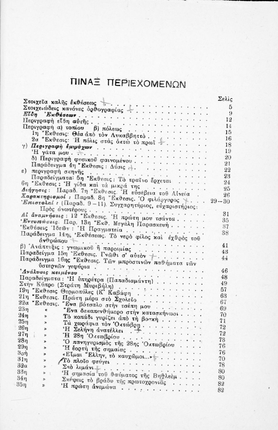 Μαθητικό βοήθημα Νέων Ελληνικών για τις Γ΄, Δ΄, Ε΄ Εξαταξίων Γυμνασίων και Εμπορικών Σχολών που περιλαμβάνει υποδείγματα εκθέσεων, περιγραφές, διηγήσεις, επιστολές, αναλύσεις λογοτεχνικών έργων, σχεδιαγράμματα και θέματα εκθέσεων.