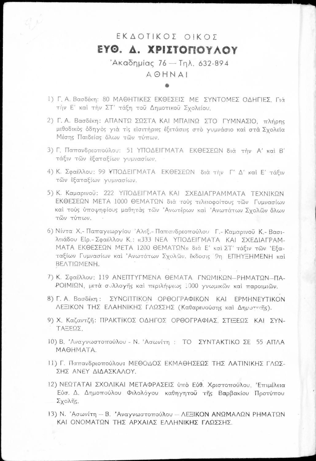 Εκδότης: Εκδοτικός οίκος Ευθ. Δ. Χριστοπούλου.