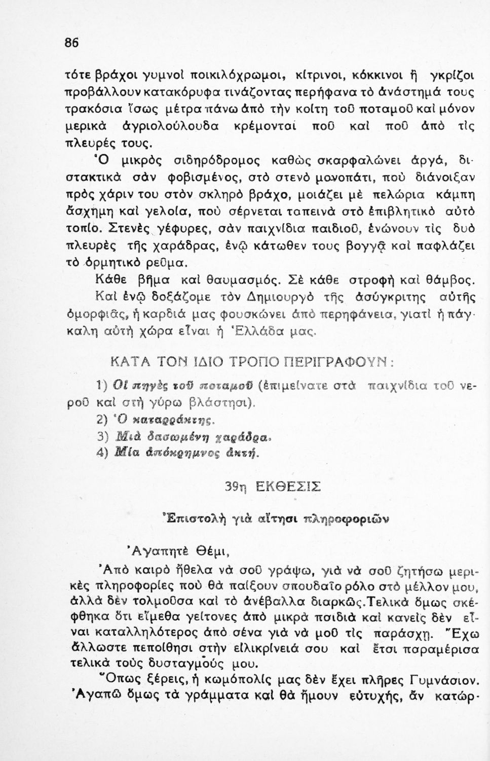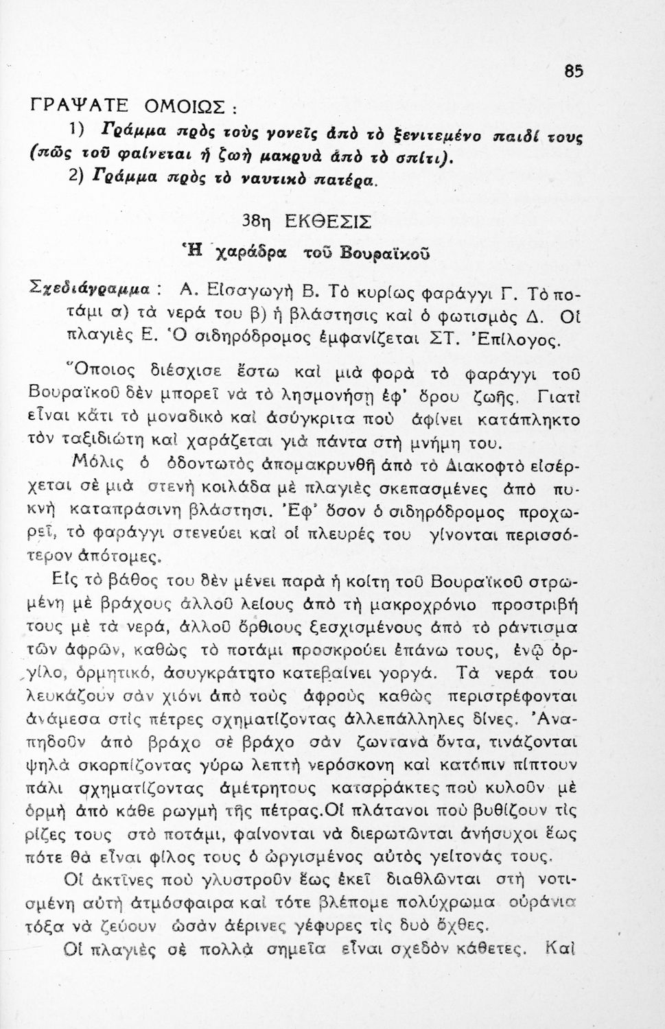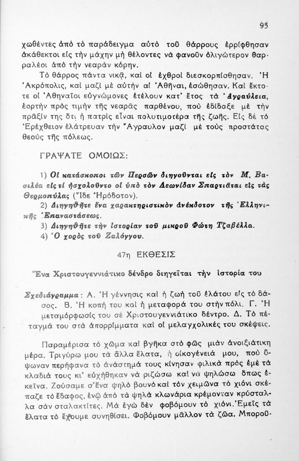 Μαθητικό βοήθημα Νέων Ελληνικών για τις Γ΄, Δ΄, Ε΄ Εξαταξίων Γυμνασίων και Εμπορικών Σχολών που περιλαμβάνει υποδείγματα εκθέσεων, περιγραφές, διηγήσεις, επιστολές, αναλύσεις λογοτεχνικών έργων, σχεδιαγράμματα και θέματα εκθέσεων.