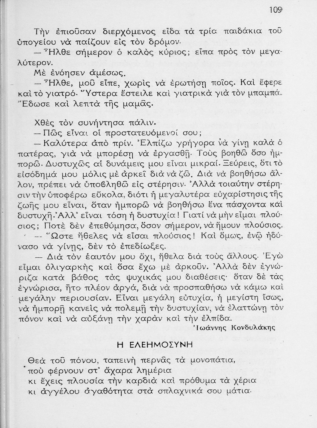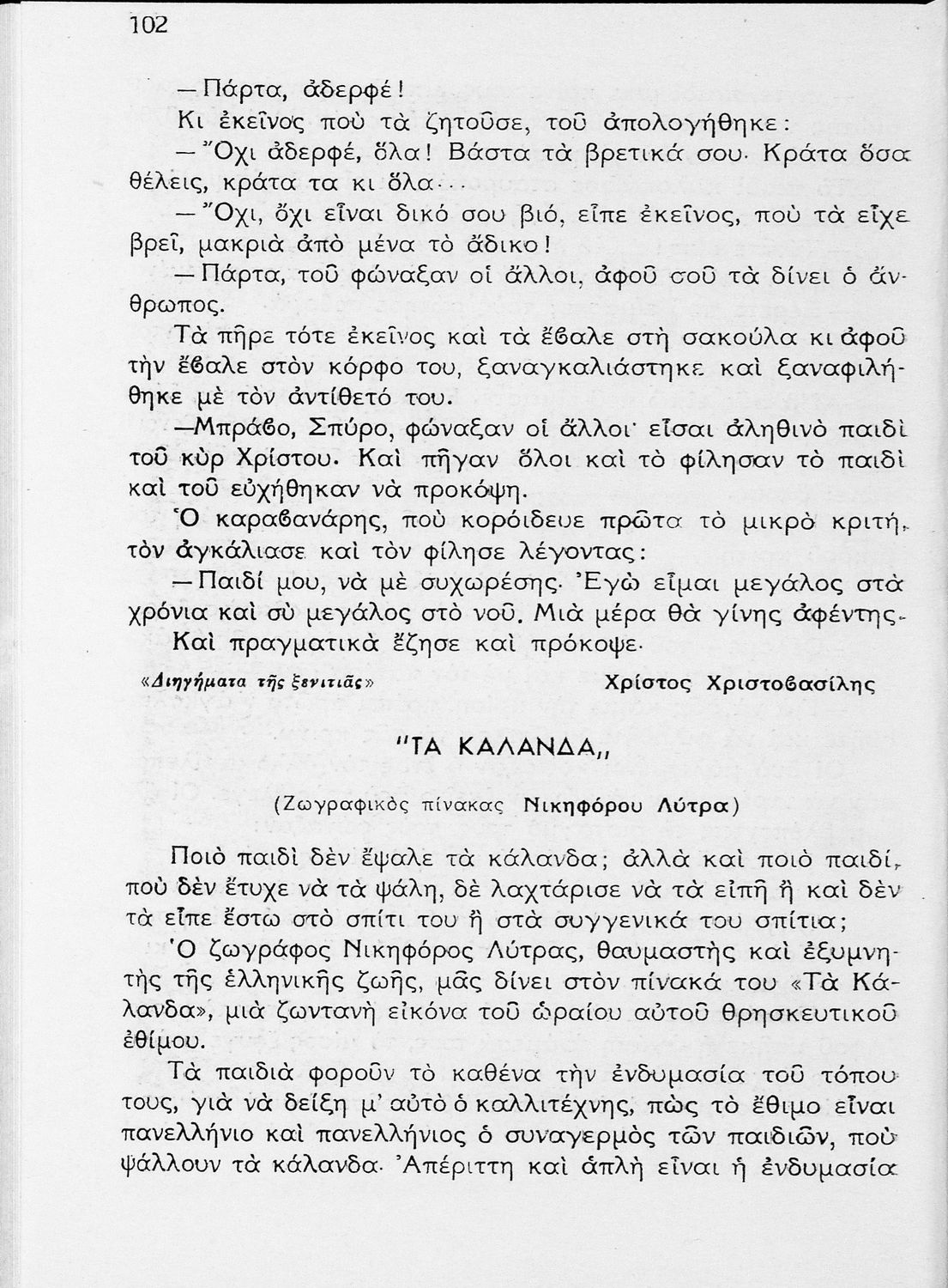 Σχολικό εγχειρίδιο Νέων Ελληνικών Γ΄ Γυμνασίου και Α' Αστικού Σχολείου που περιέχει πεζά και ποιήματα Ελλήνων συγγραφέων εμπνευσμένα από τη θρησκευτική και κοινωνική ζωή, την ελληνική μυθολογία, την αρχαία και