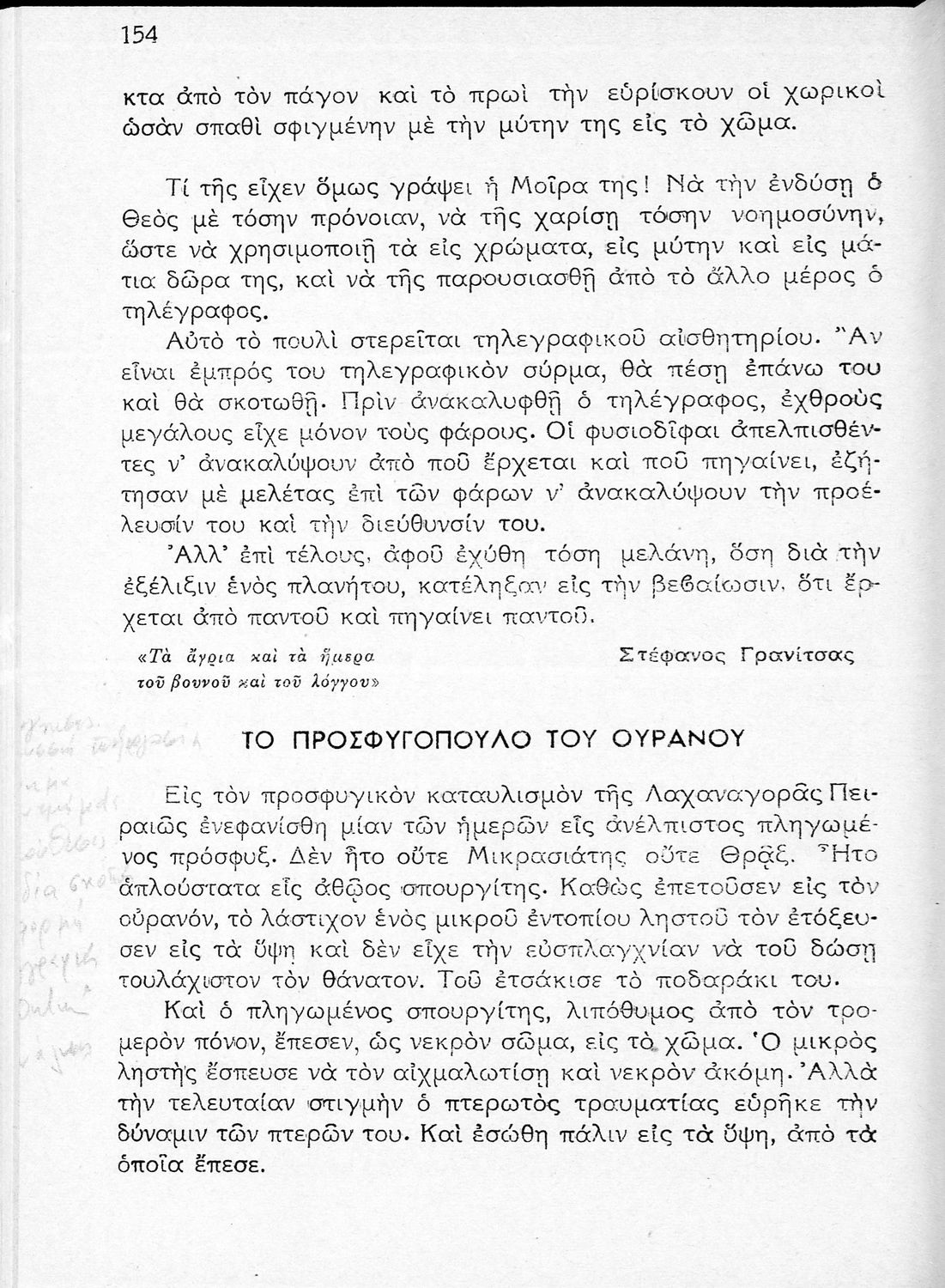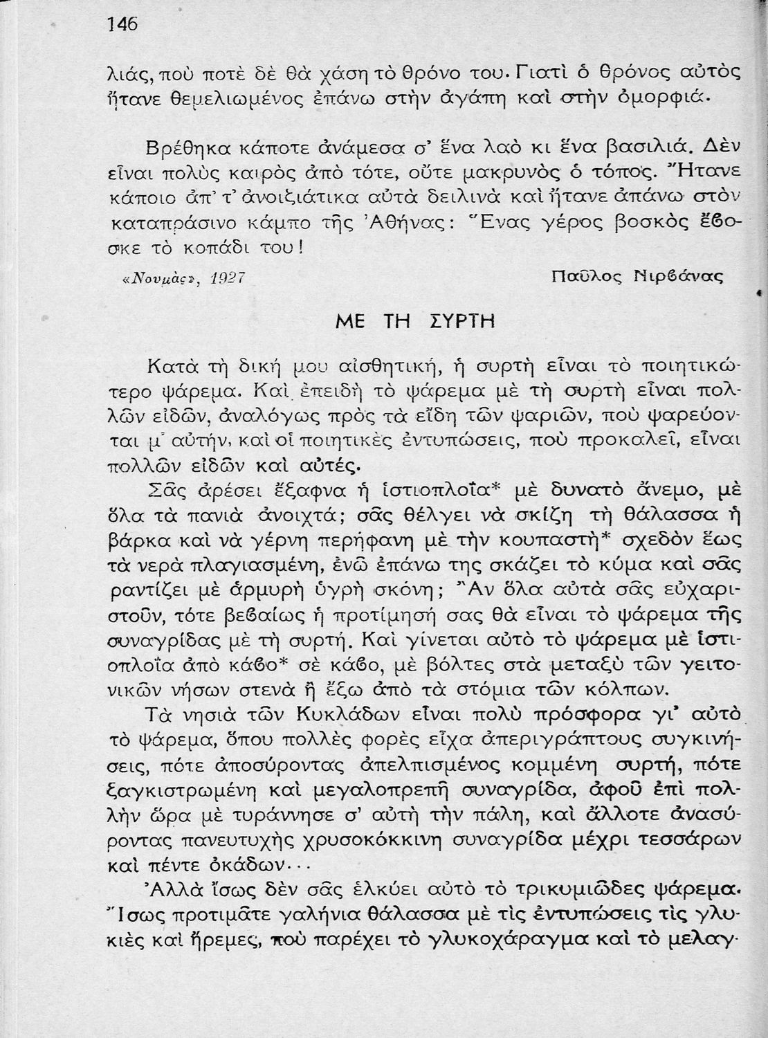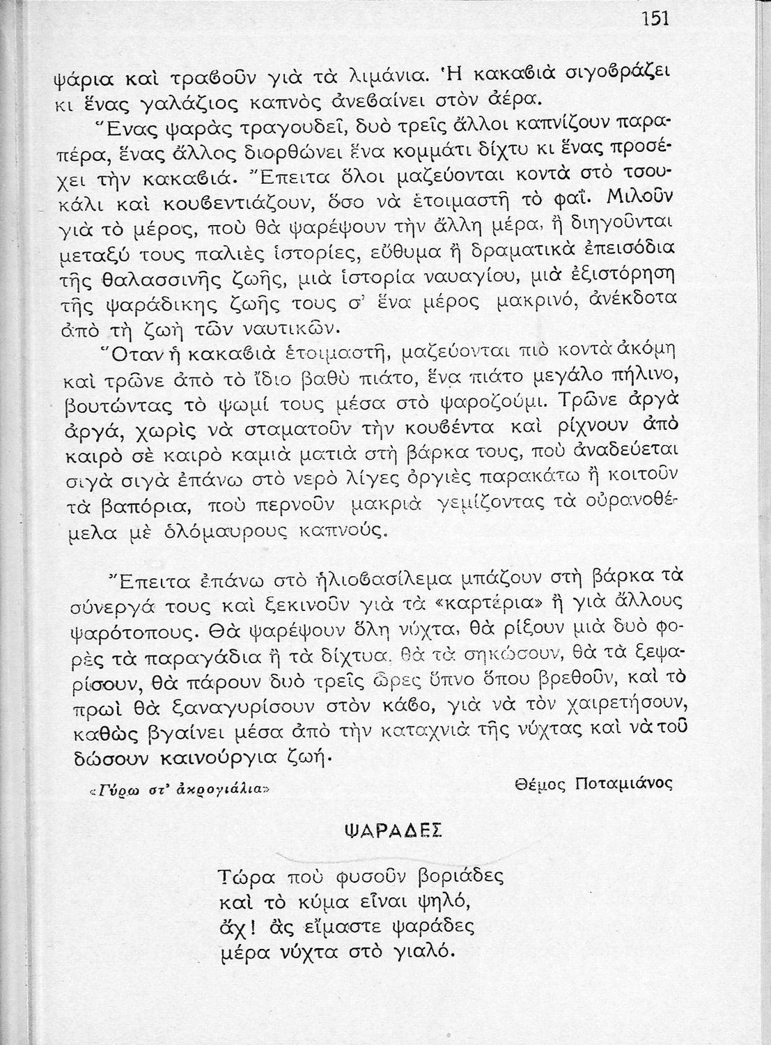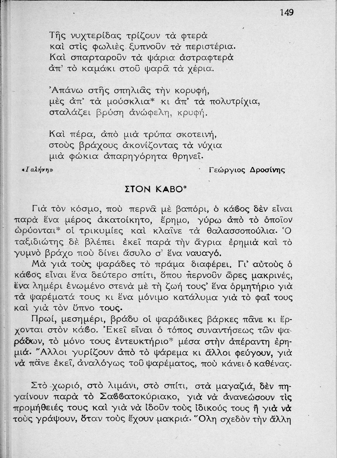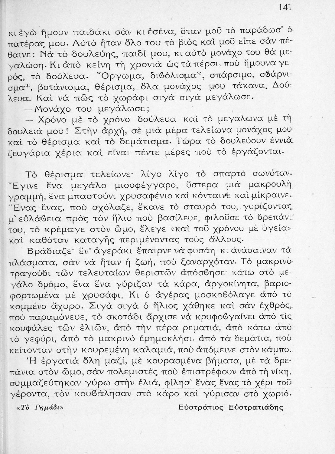Σχολικό εγχειρίδιο Νέων Ελληνικών Γ΄ Γυμνασίου και Α' Αστικού Σχολείου που περιέχει πεζά και ποιήματα Ελλήνων συγγραφέων εμπνευσμένα από τη θρησκευτική και κοινωνική ζωή, την ελληνική μυθολογία, την αρχαία και σύγχρονη ελληνική ιστορία, και την ελληνική φύση. Περιέχει παράρτημα με βιογραφίες των συγγραφέων και λεξιλόγιο.