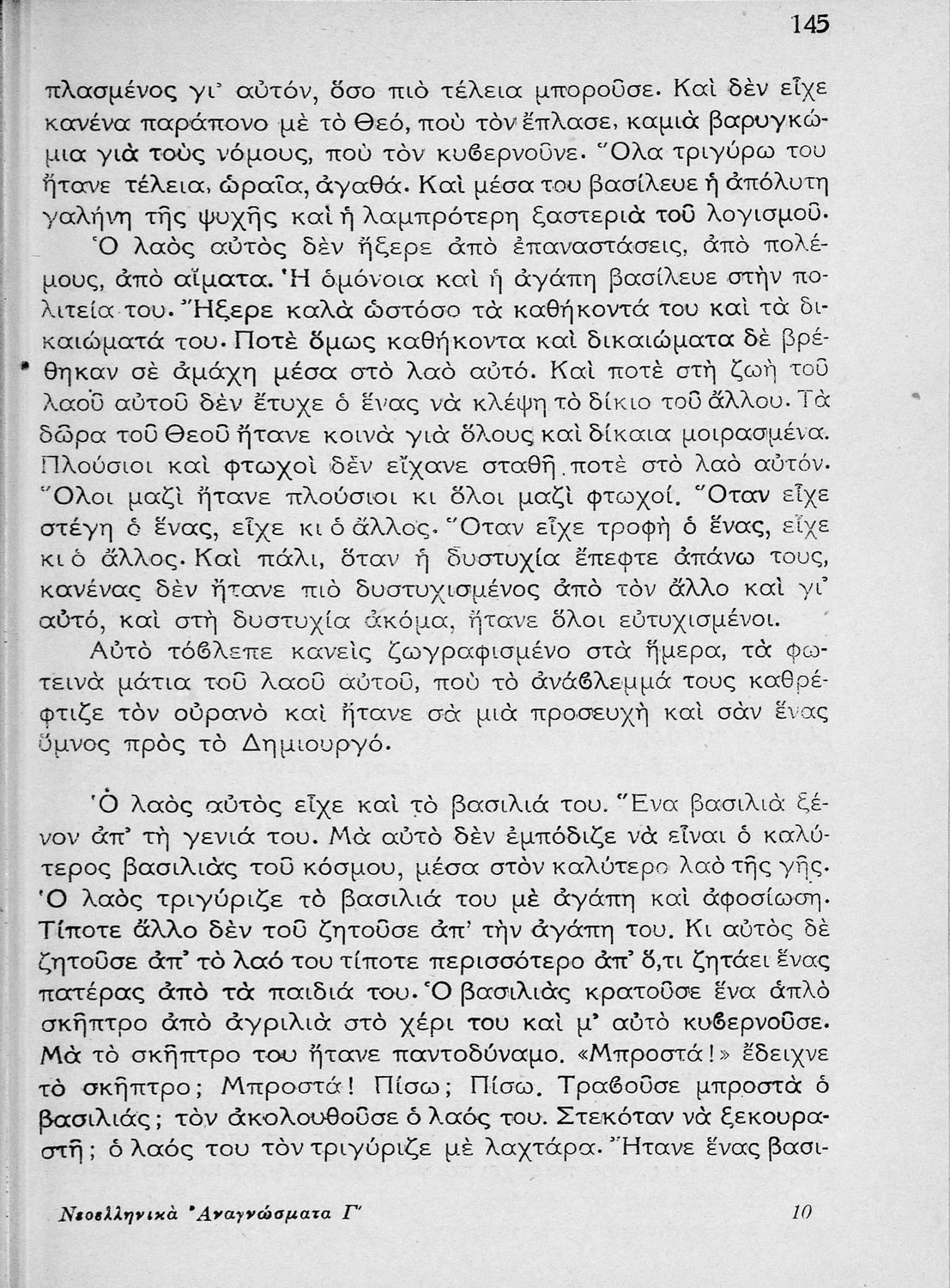 Σχολικό εγχειρίδιο Νέων Ελληνικών Γ΄ Γυμνασίου και Α' Αστικού Σχολείου που περιέχει πεζά και ποιήματα Ελλήνων συγγραφέων εμπνευσμένα από τη θρησκευτική και κοινωνική ζωή, την ελληνική μυθολογία, την αρχαία και