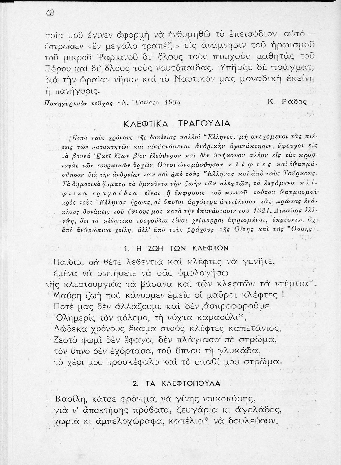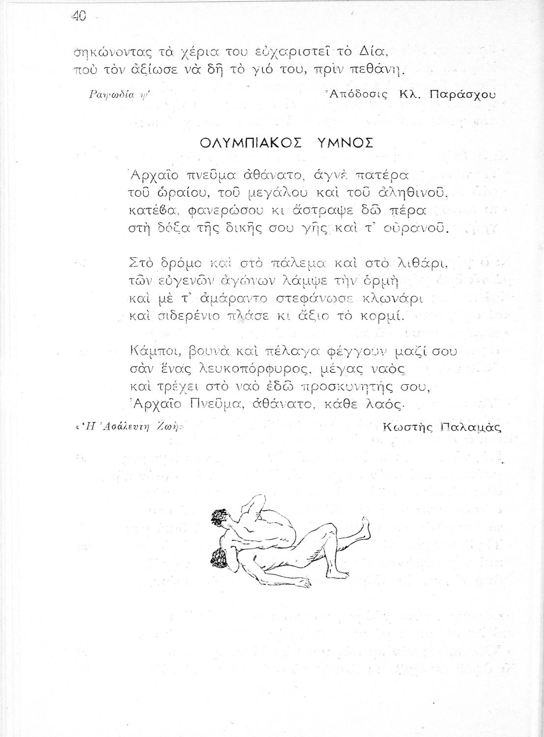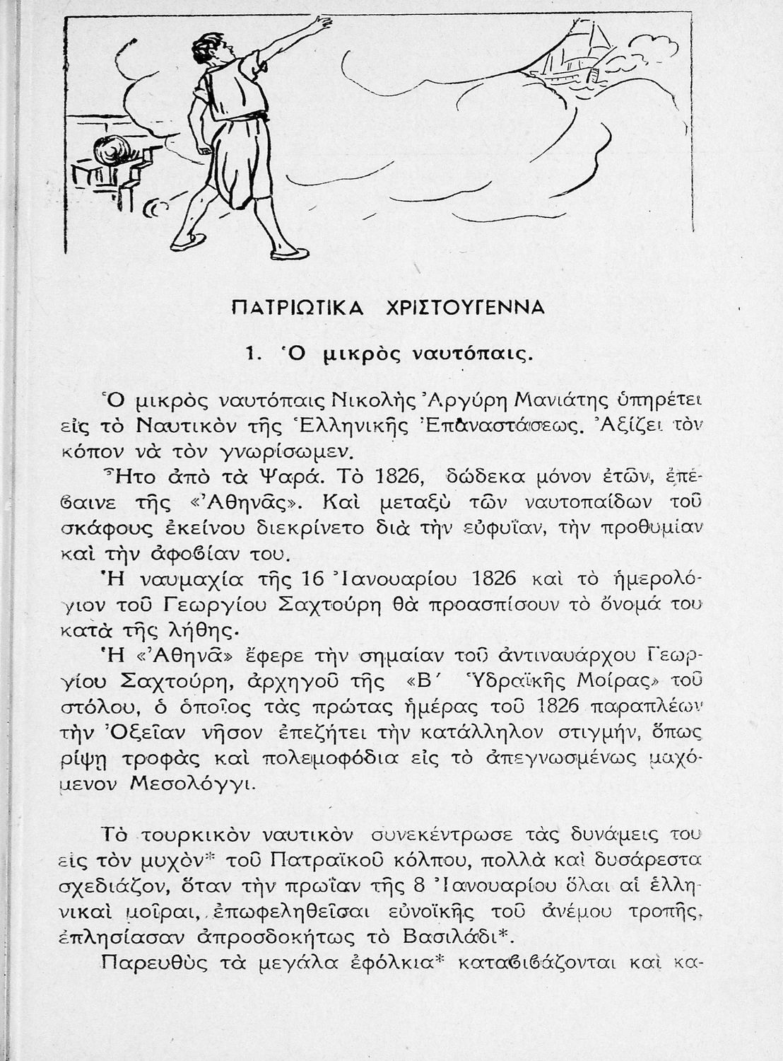 Σχολικό εγχειρίδιο Νέων Ελληνικών Γ΄ Γυμνασίου και Α' Αστικού Σχολείου που περιέχει πεζά και ποιήματα Ελλήνων συγγραφέων εμπνευσμένα από τη θρησκευτική και κοινωνική ζωή, την ελληνική μυθολογία, την αρχαία και