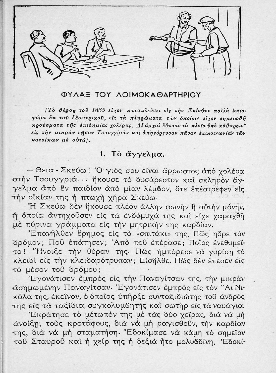 Σχολικό εγχειρίδιο Νέων Ελληνικών Γ΄ Γυμνασίου και Α' Αστικού Σχολείου που περιέχει πεζά και ποιήματα Ελλήνων συγγραφέων εμπνευσμένα από τη θρησκευτική και κοινωνική ζωή, την ελληνική μυθολογία, την αρχαία και