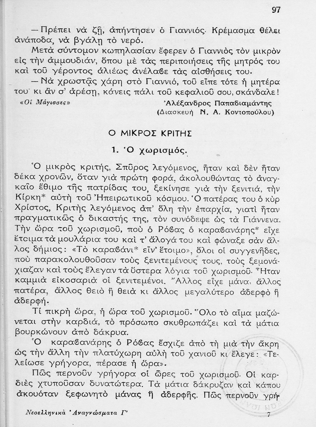 Νεοελληνικά αναγνώσματα διά την Γ΄ τάξιν των Γυμνασίων και την Α΄ τάξιν των Αστικών σχολείων