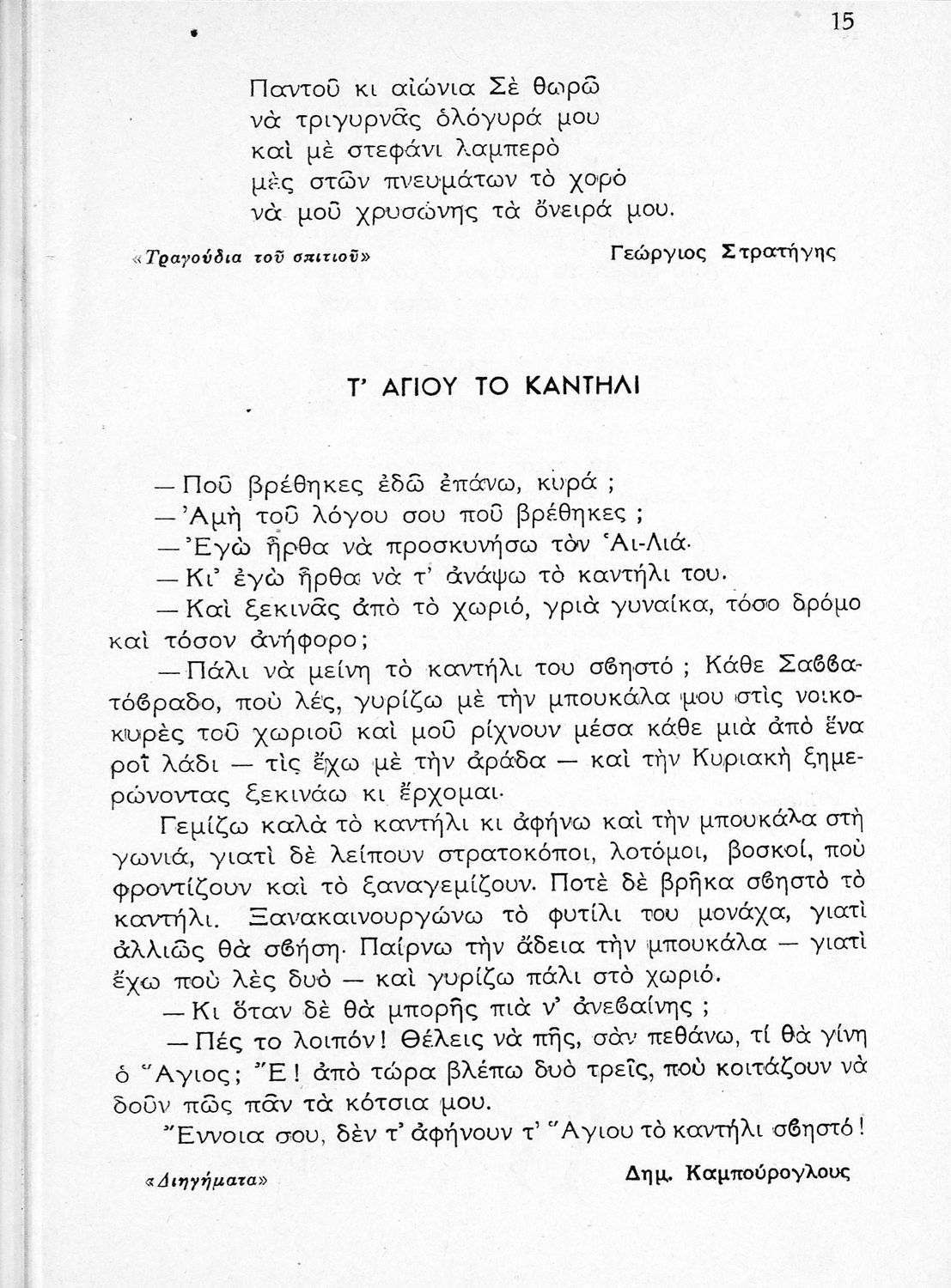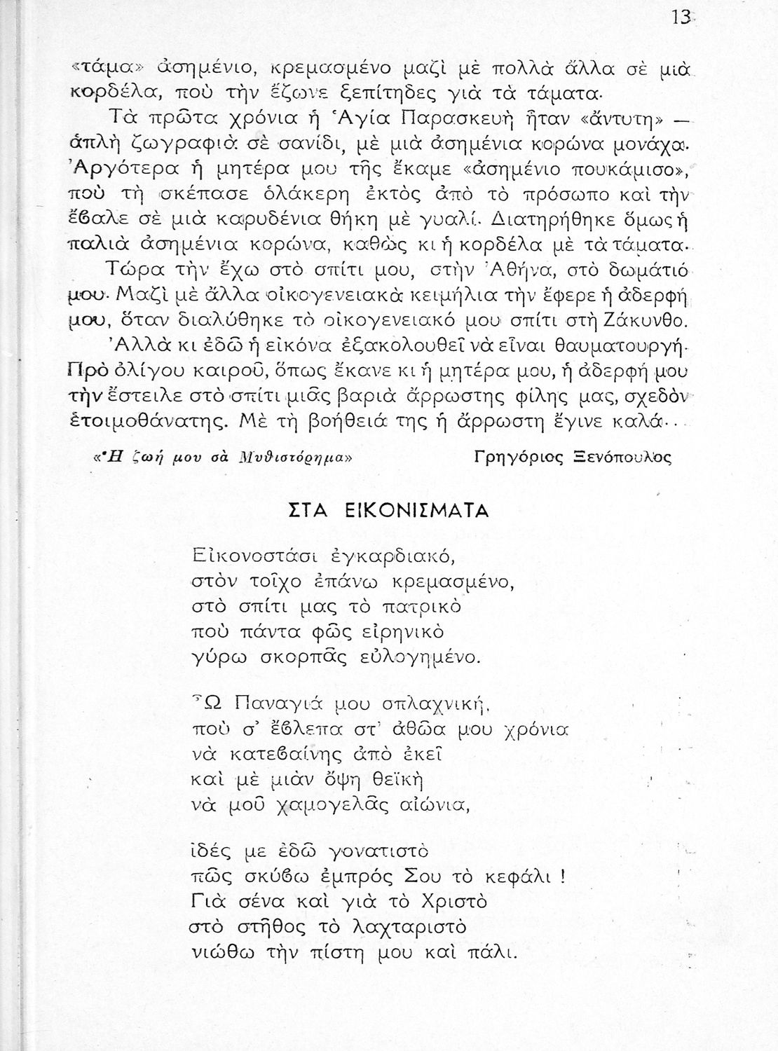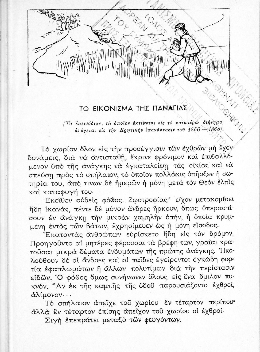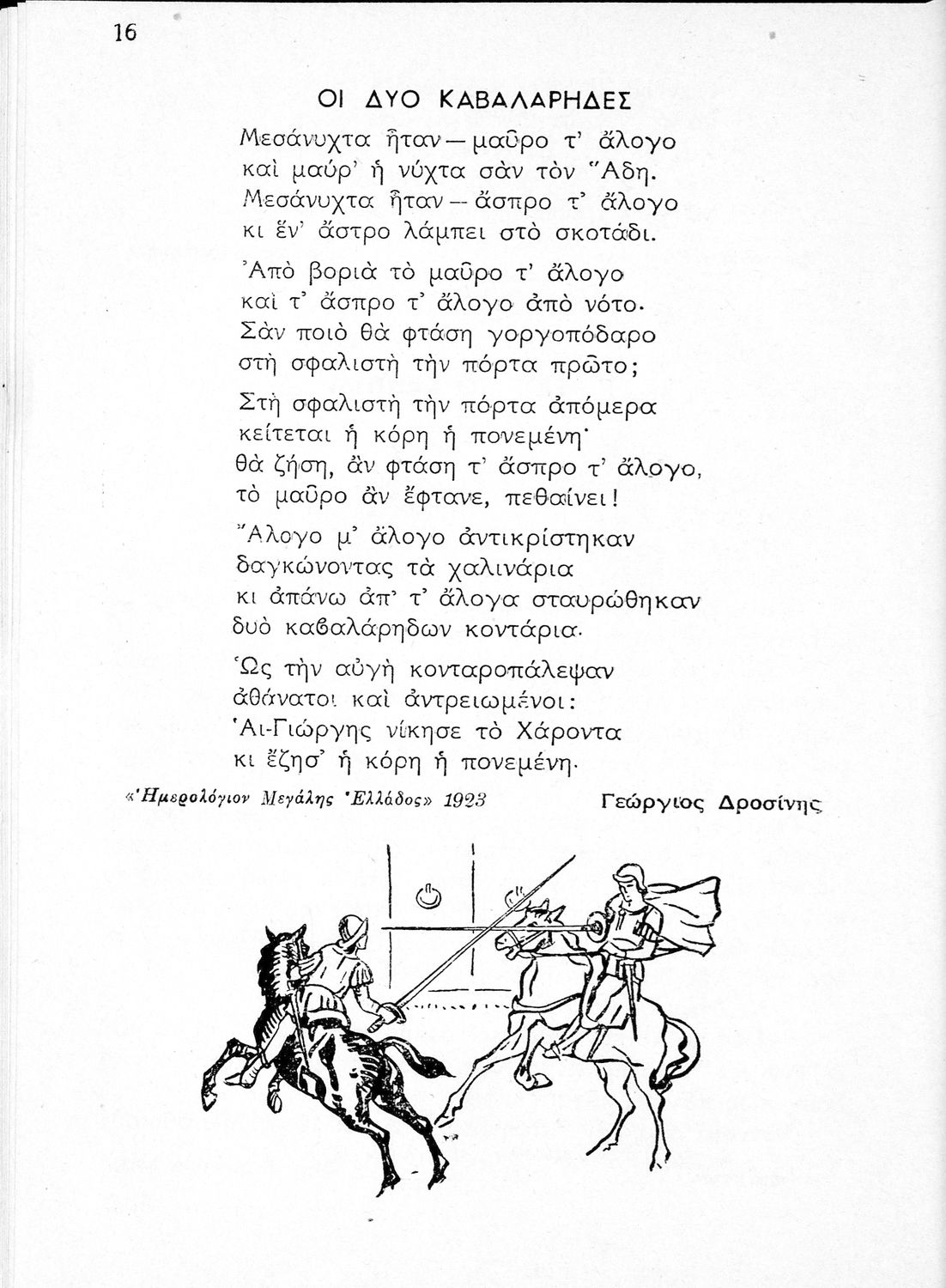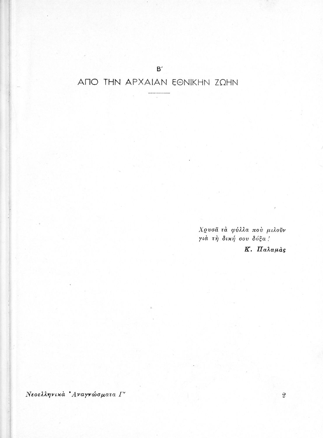 Σχολικό εγχειρίδιο Νέων Ελληνικών Γ΄ Γυμνασίου και Α' Αστικού Σχολείου που περιέχει πεζά και ποιήματα Ελλήνων συγγραφέων εμπνευσμένα από τη θρησκευτική και κοινωνική ζωή, την ελληνική μυθολογία, την αρχαία και