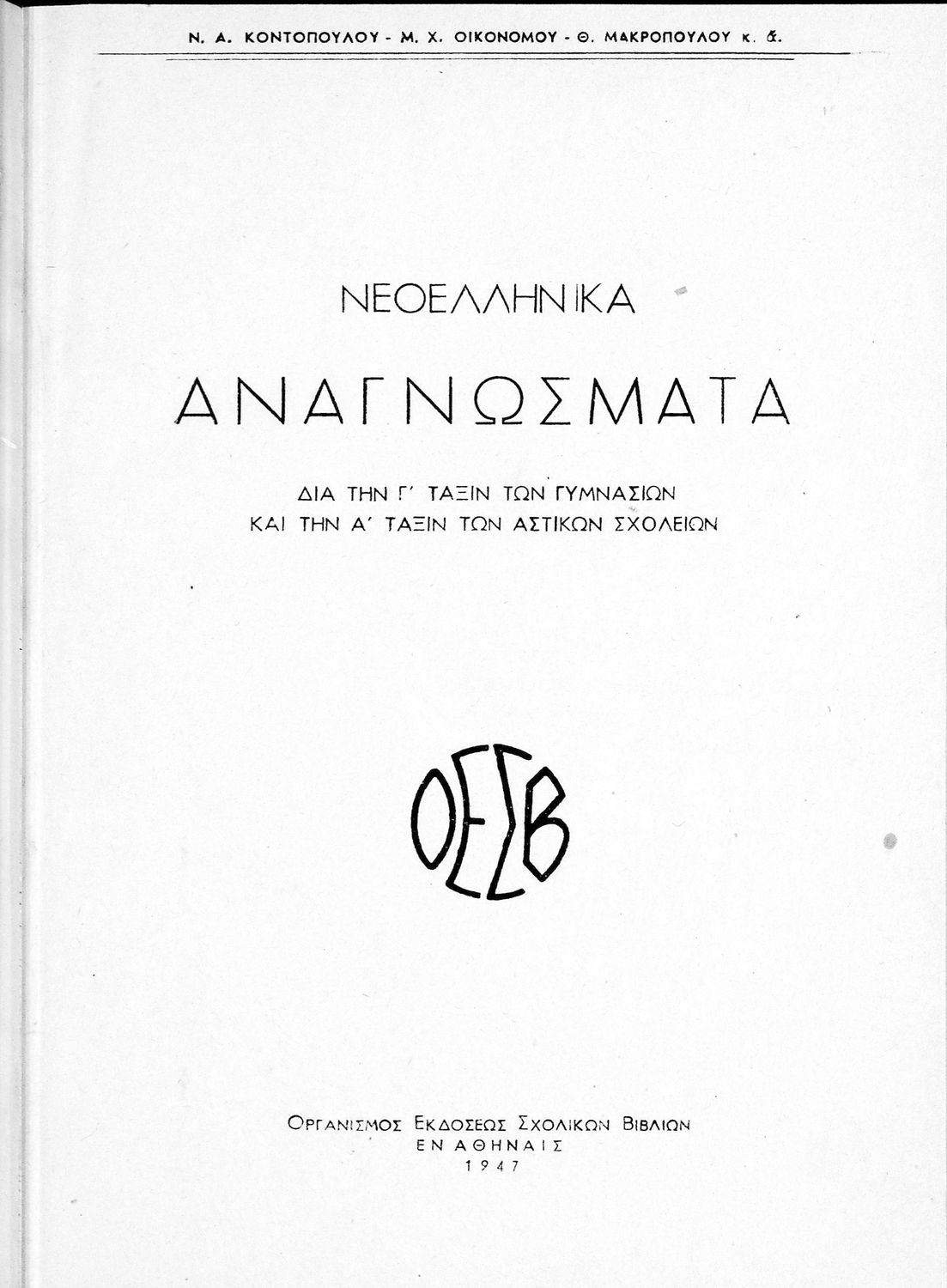 Συγγραφέας: Ν. Κοντόπουλος, Μ. Οικονόμου, Θ. Μακρόπουλος