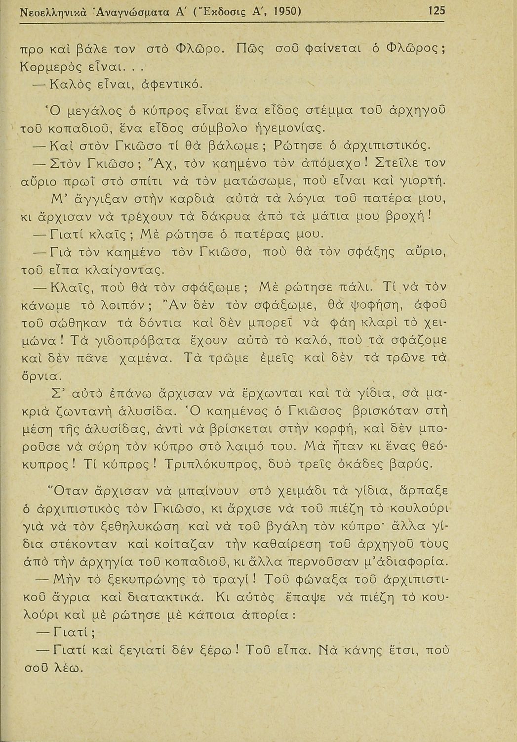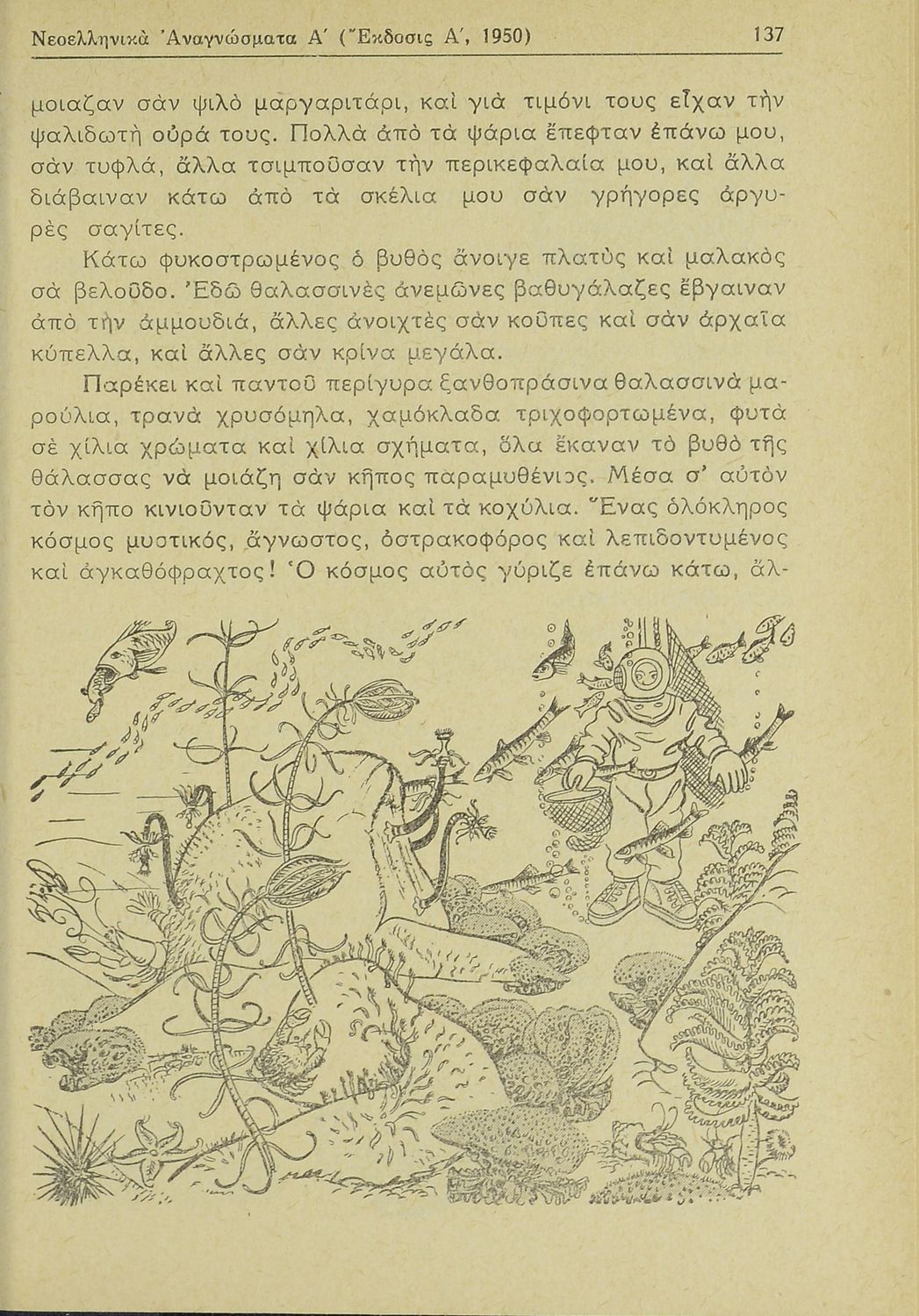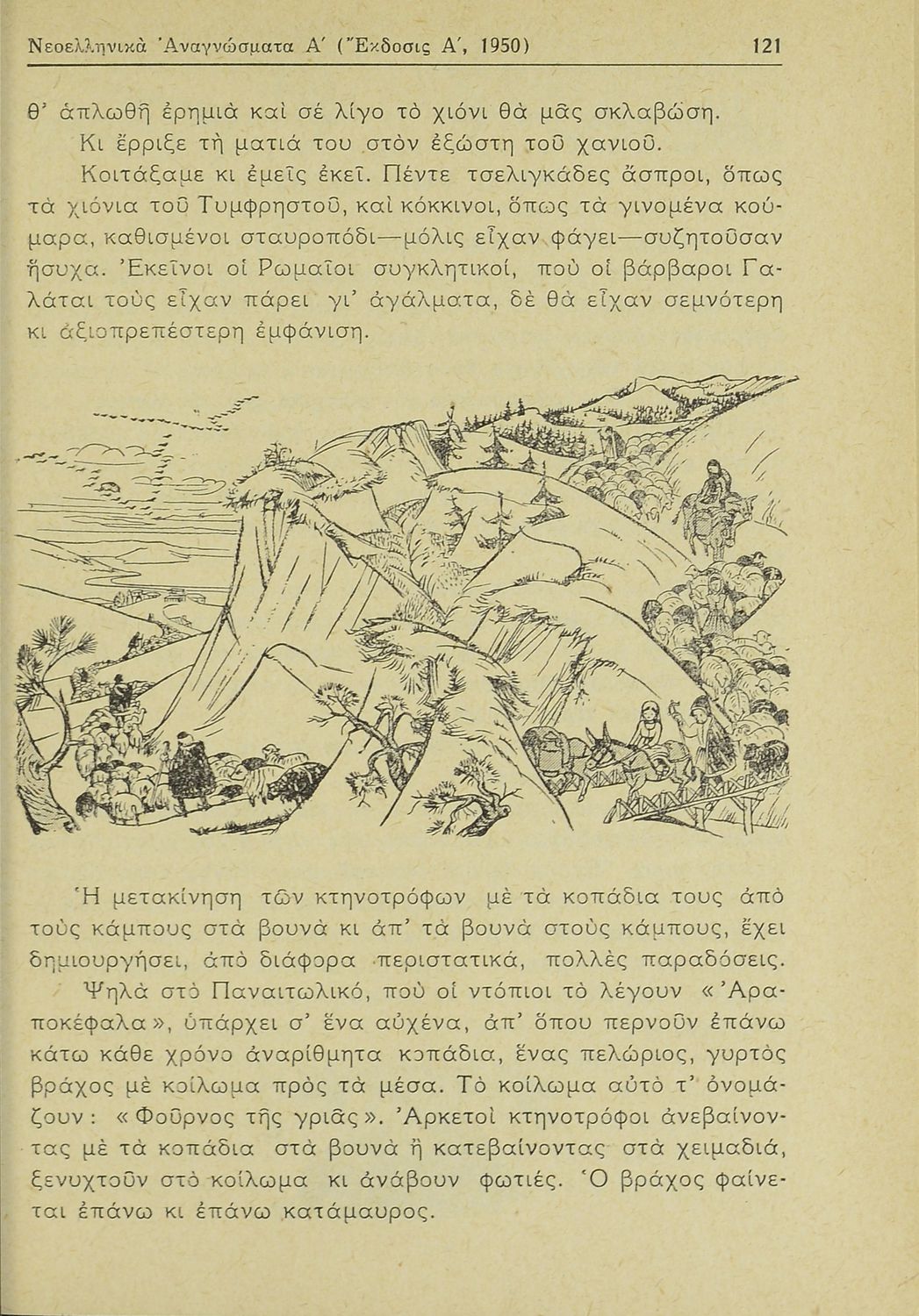 Σχολικό εγχειρίδιο Νέων Ελληνικών Γ΄ Γυμνασίου και Α' Αστικού Σχολείου που περιέχει πεζά και ποιήματα Ελλήνων συγγραφέων εμπνευσμένα από τη θρησκευτική και κοινωνική ζωή, την ελληνική μυθολογία, την αρχαία και